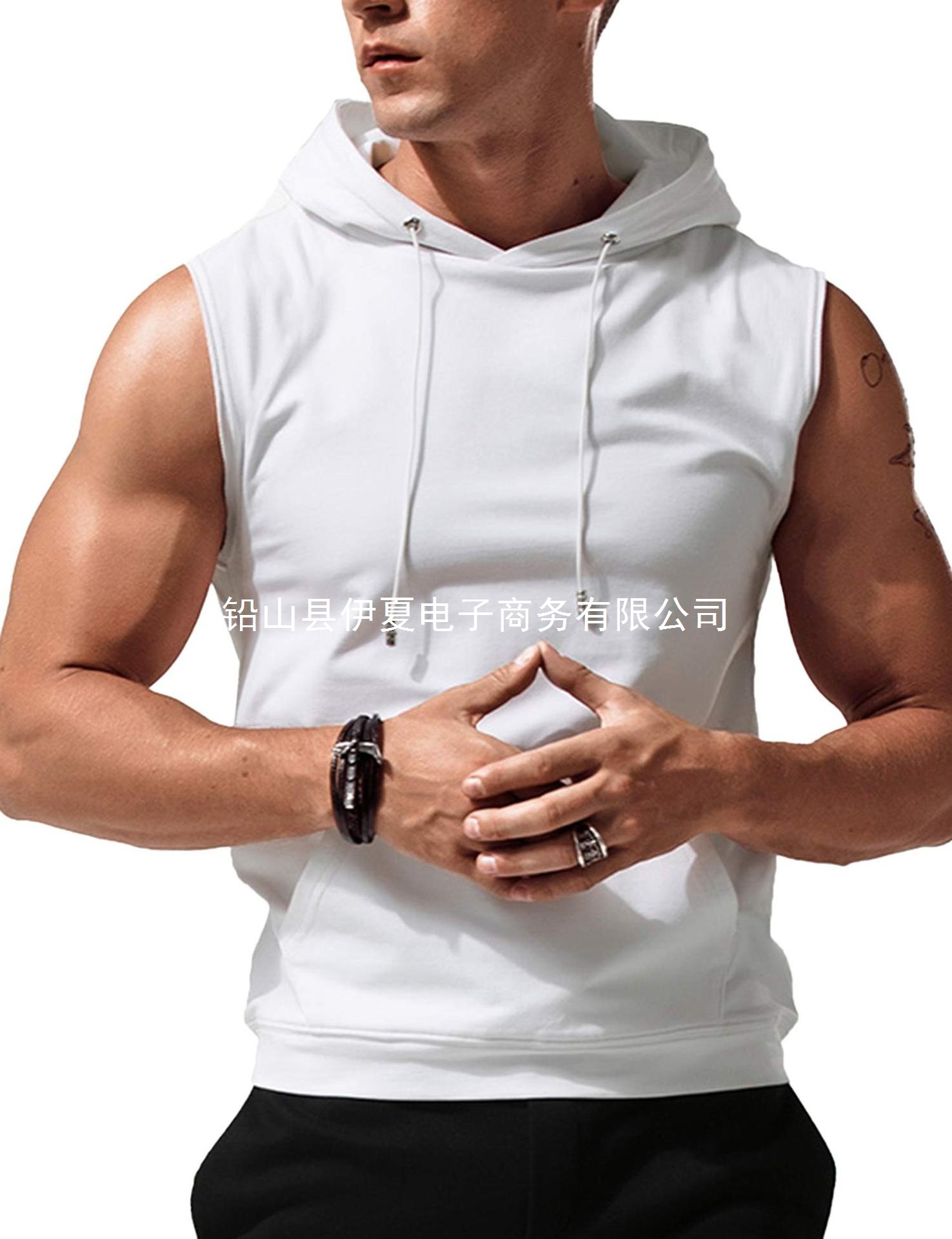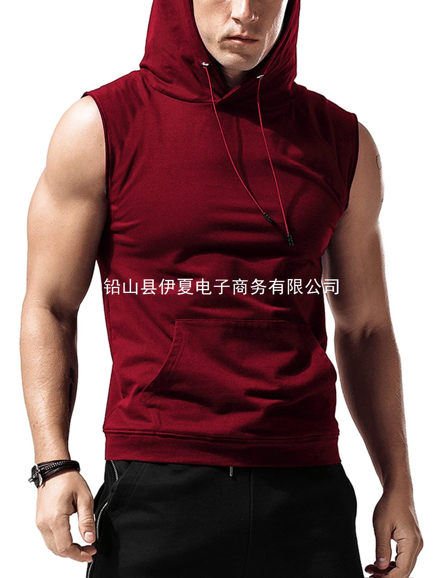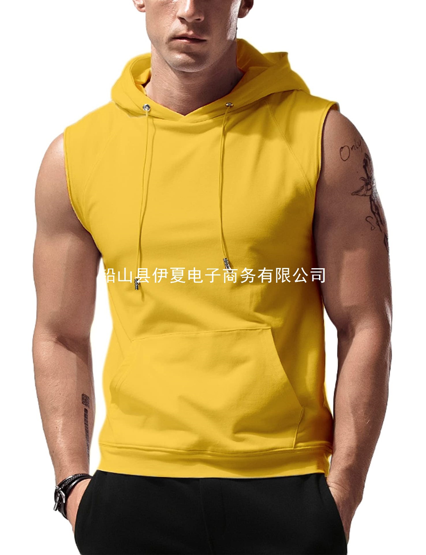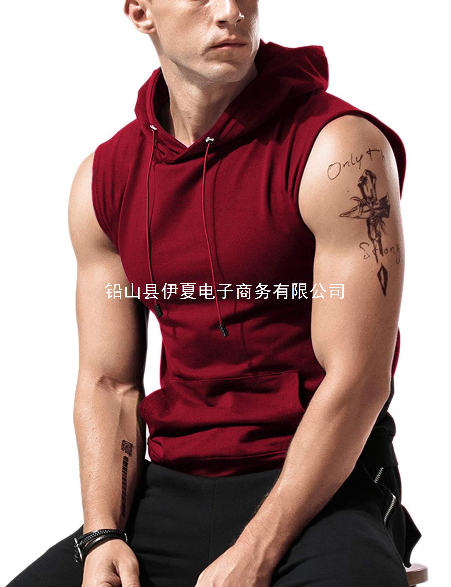 Amazon 남성용 탱크 탑 후드 민소매 루즈 솔리드 컬러 포켓 피트니스 근육 트레이닝 러닝 스포츠 탑