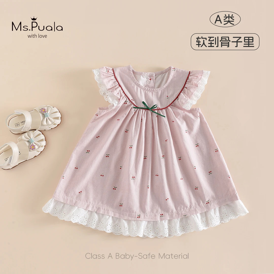 새로운 디저트 치즈 체리 아기 소녀 귀여운 플라잉 슬리브 달콤한 클래스 A 소재 한 살짜리 스커트 드레스