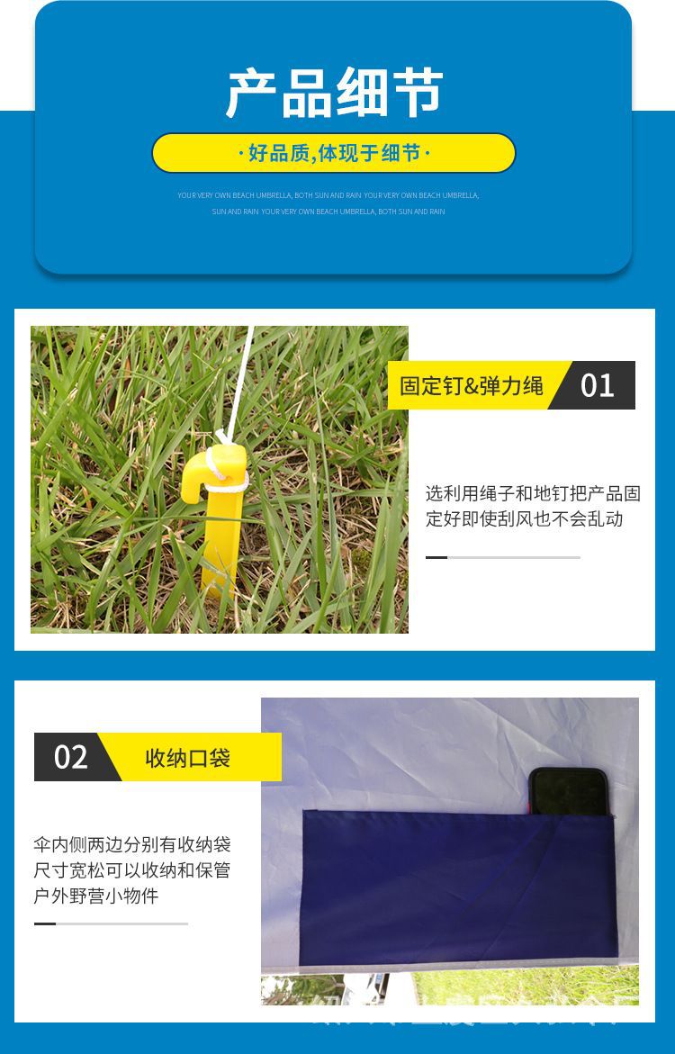 • 2.4m 비치 텐트 우산 블루