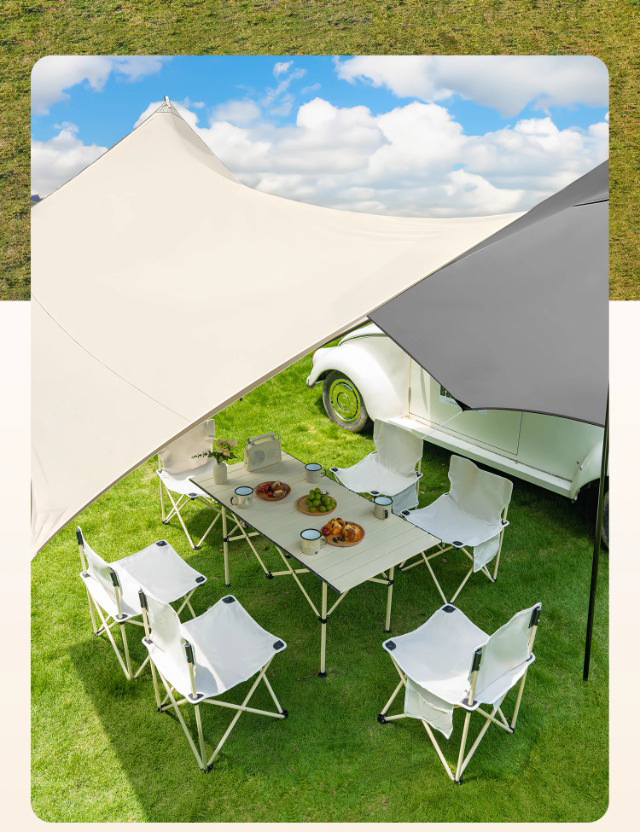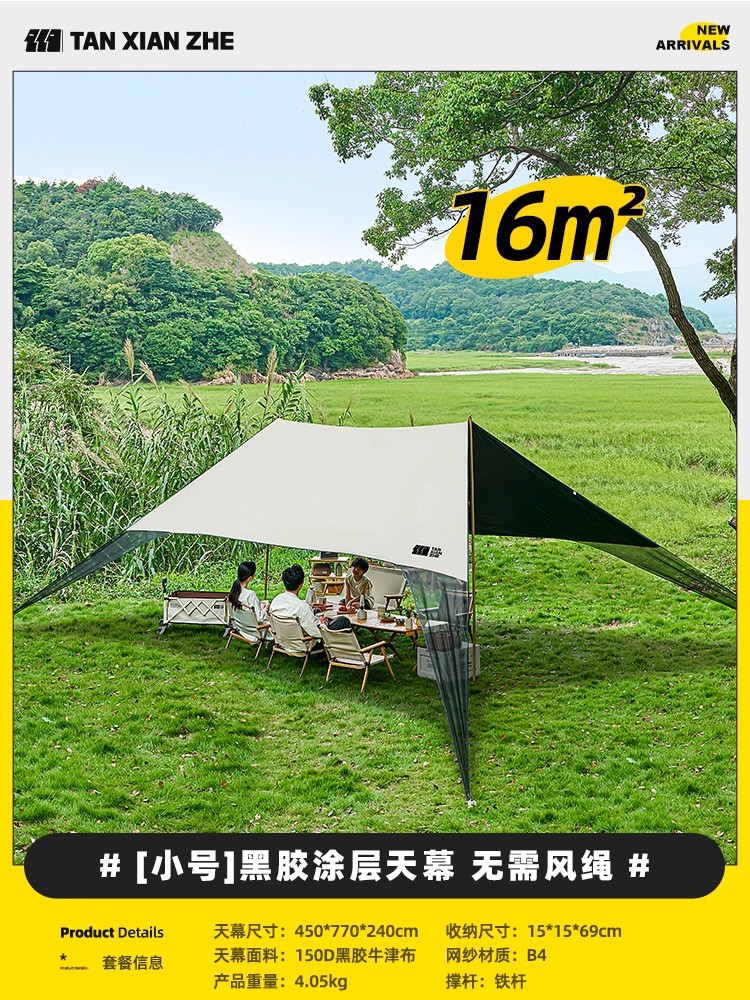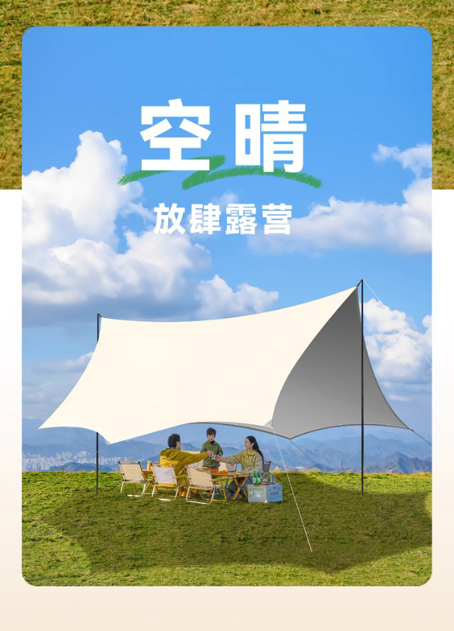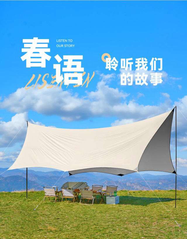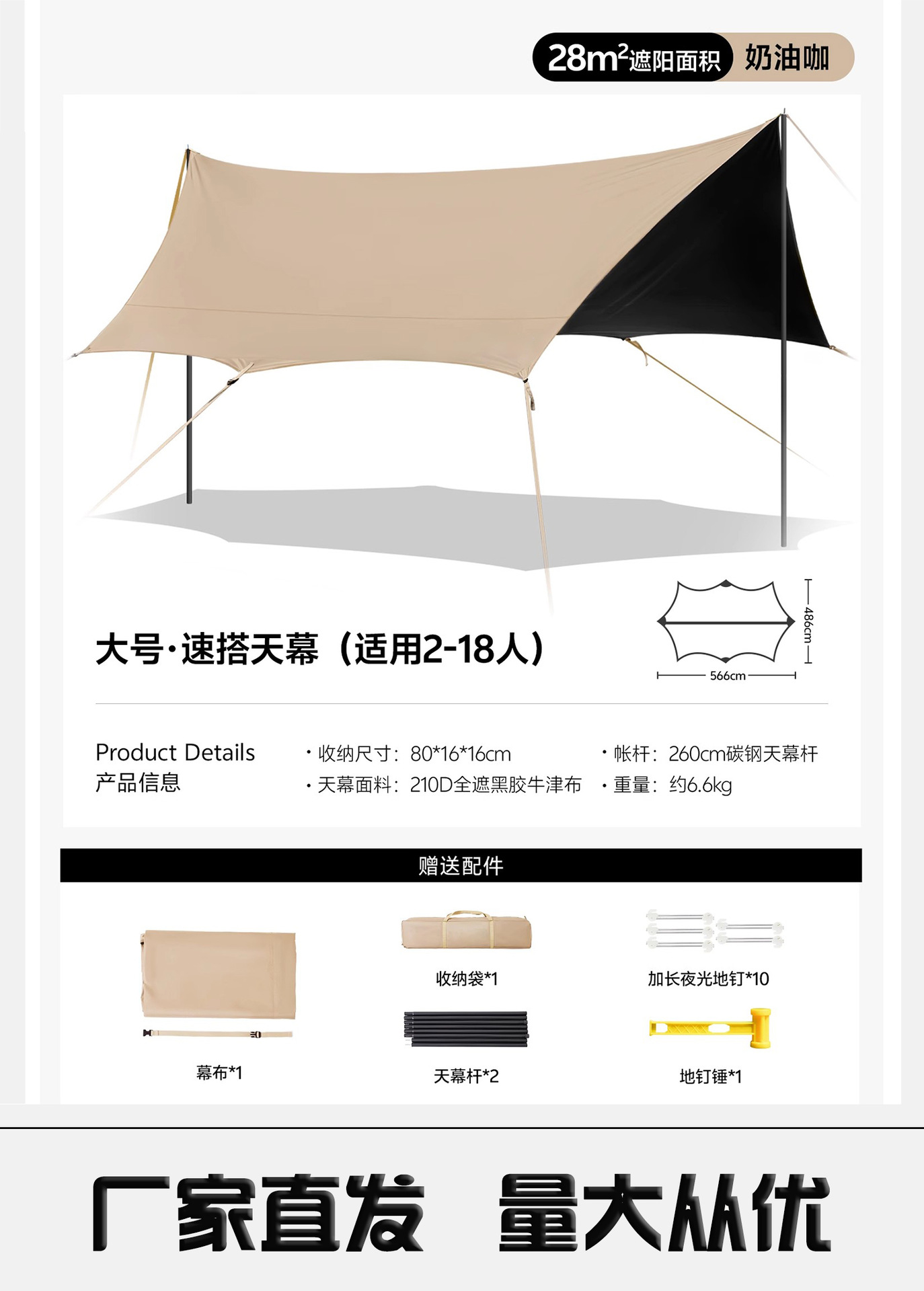 공장 직접 판매 야외 캠핑 캐노피 코팅 방수 및 태양 보호 천막 휴대용 캠핑 장비