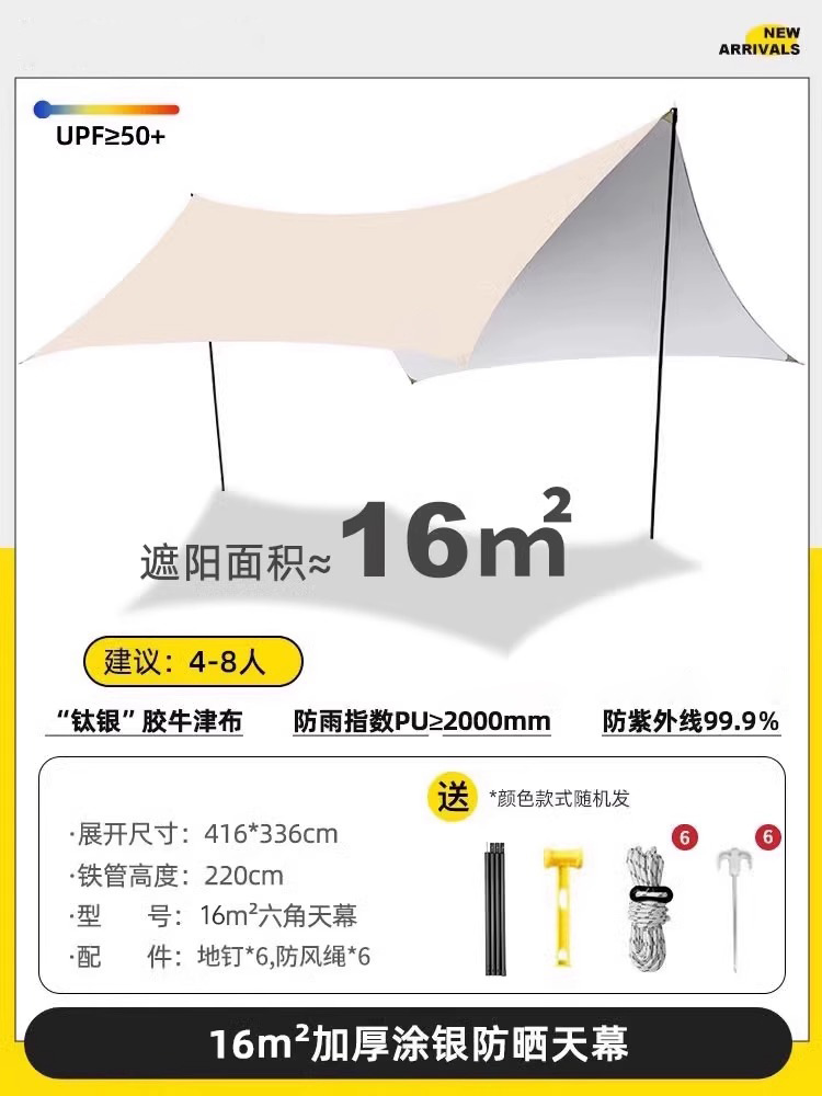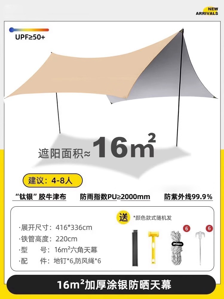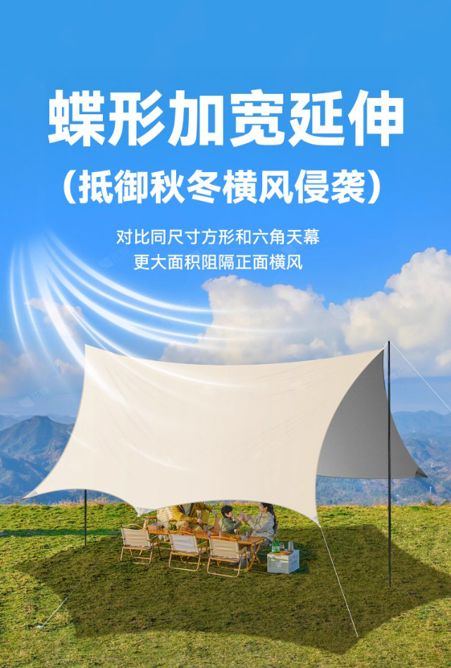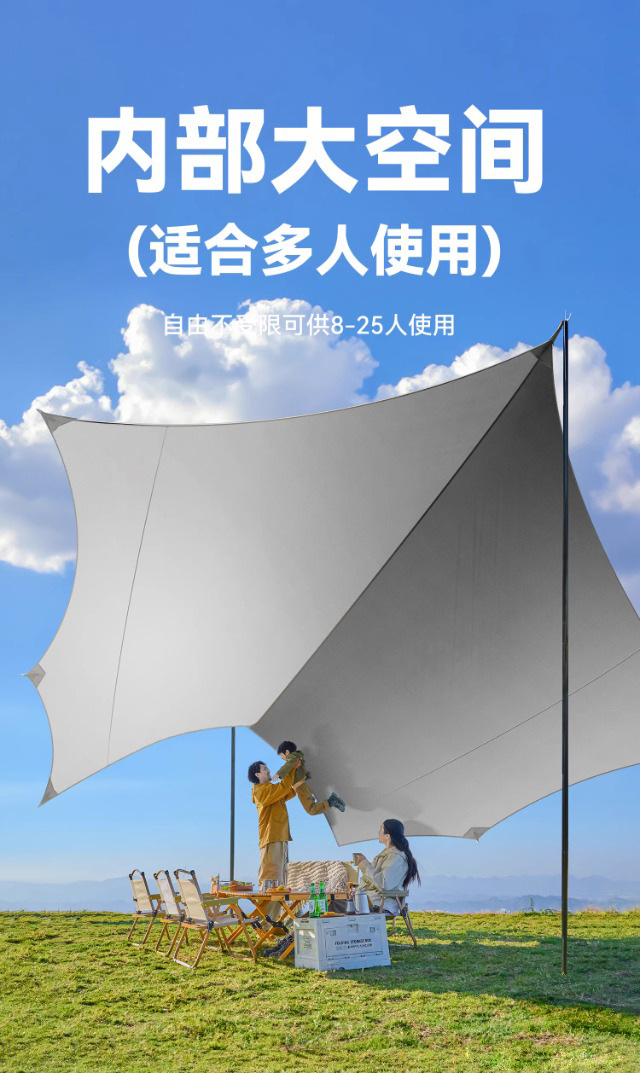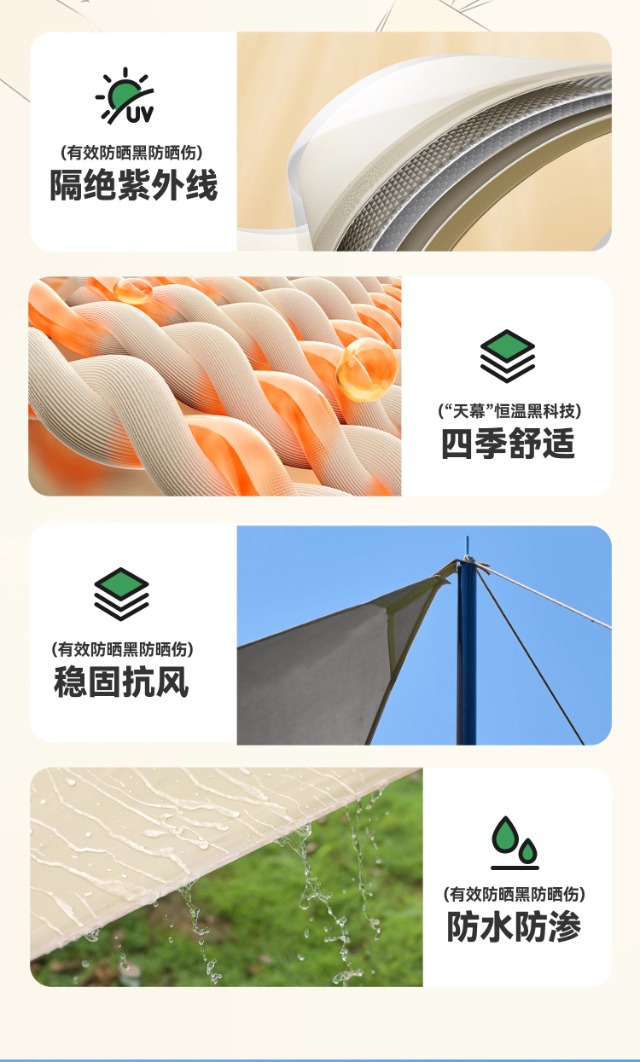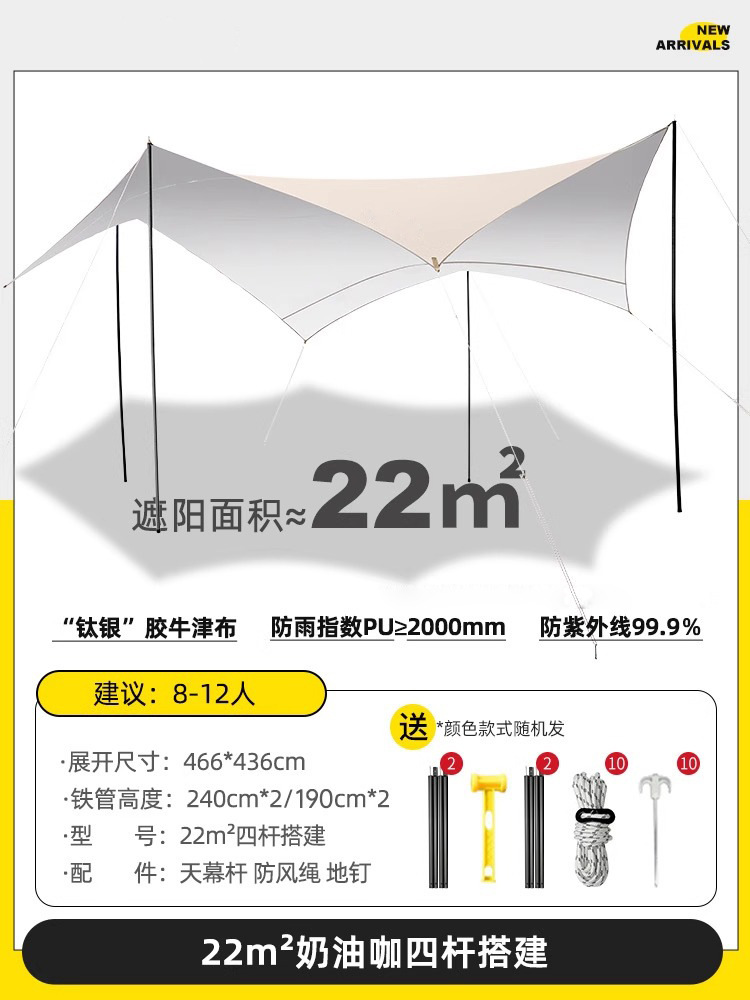 공장 직접 판매 야외 캠핑 캐노피 코팅 방수 및 태양 보호 천막 휴대용 캠핑 장비