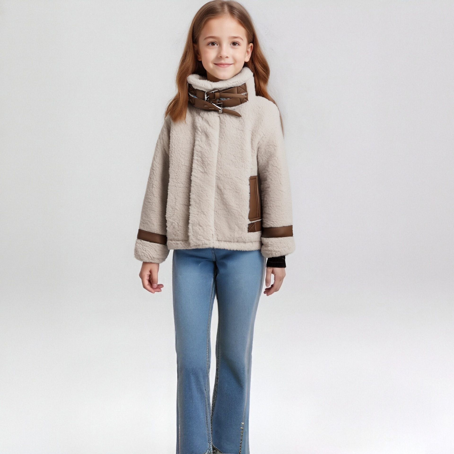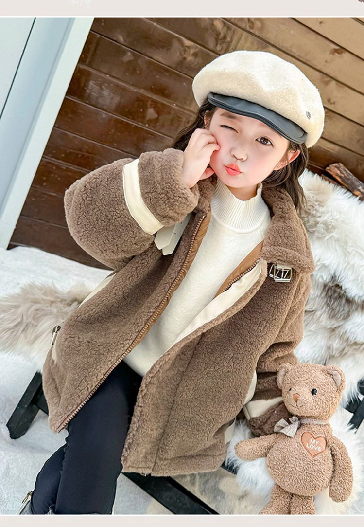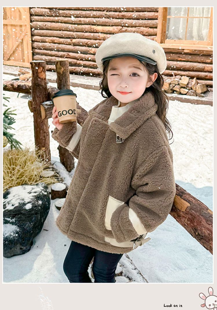 소년과 소녀를위한 대외 무역 모조 양털 벨벳 재킷 겨울 아기 소녀 스탠드 업 칼라 퀼트 두꺼운 모직 스웨터 도매스토어 가기