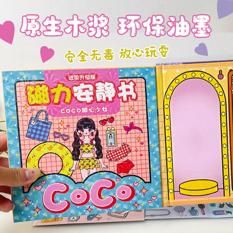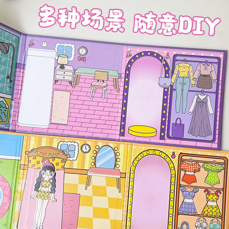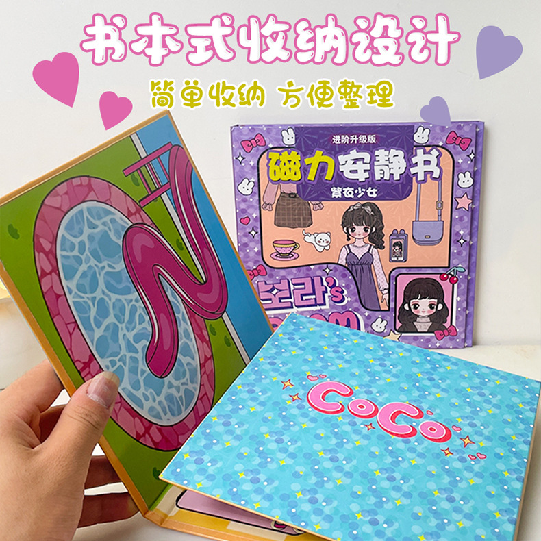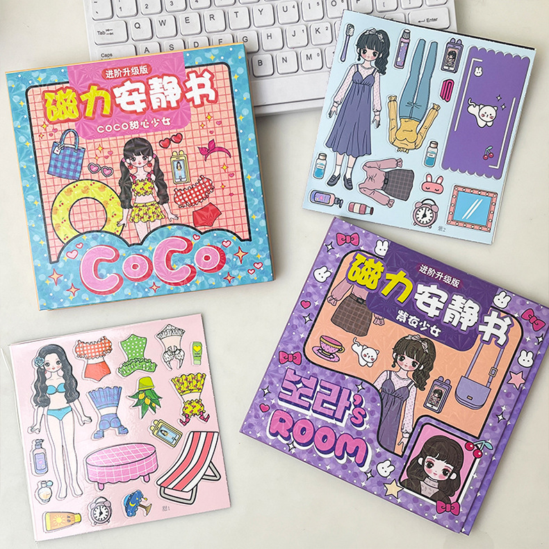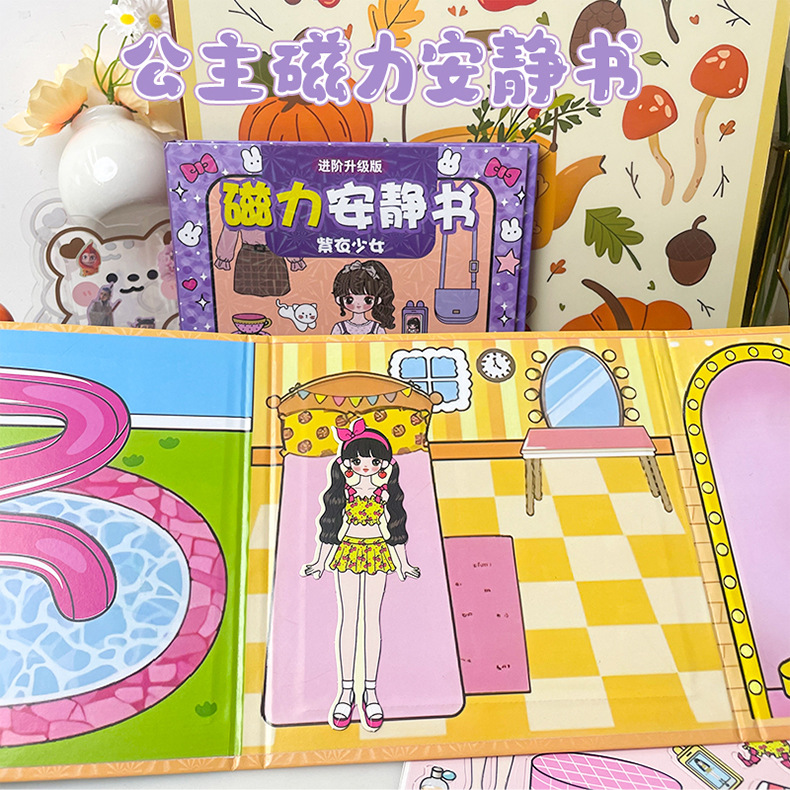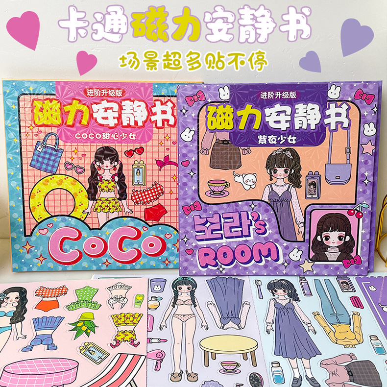 보라색 소녀 자기 조용한 책 소녀 원피스 업 자기 스티커 어린이 창조적 인 장난감 수제 DIY 생일 선물스토어 가기