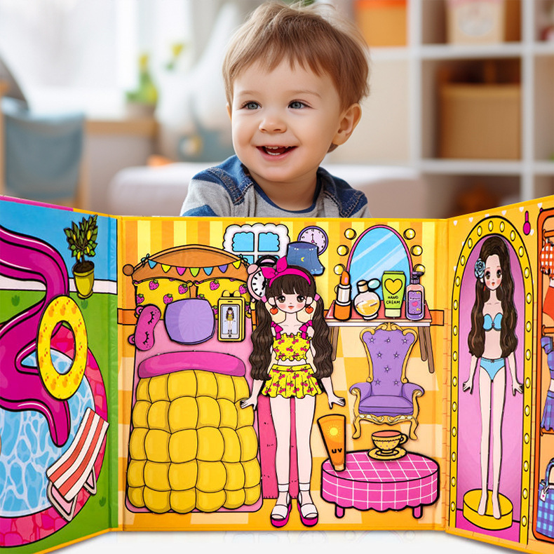 보라색 소녀 자기 조용한 책 소녀 원피스 업 자기 스티커 어린이 창조적 인 장난감 수제 DIY 생일 선물