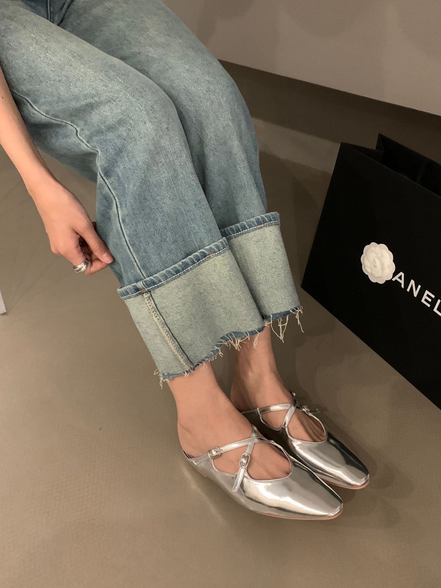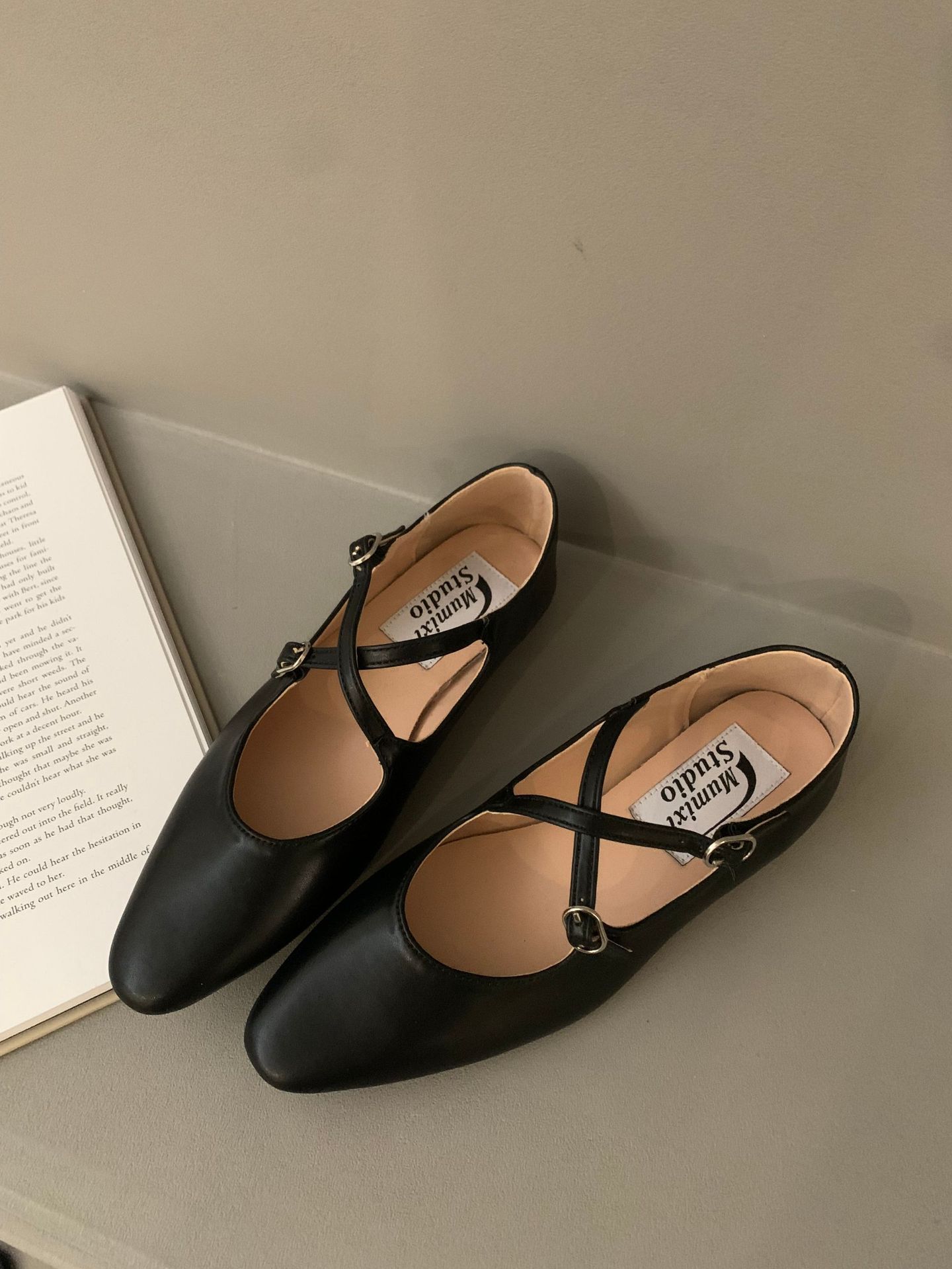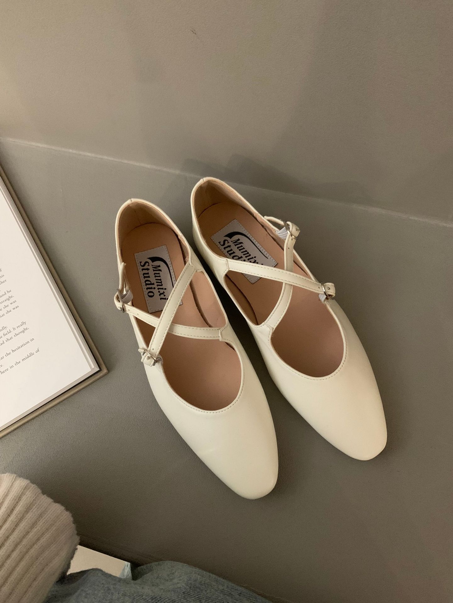2023 봄 여름 프렌치 플랫 하프 드래그 크로스 스트랩 버클 메리 제인 여성용 라운드 투 발레 복고풍 신발스토어 가기