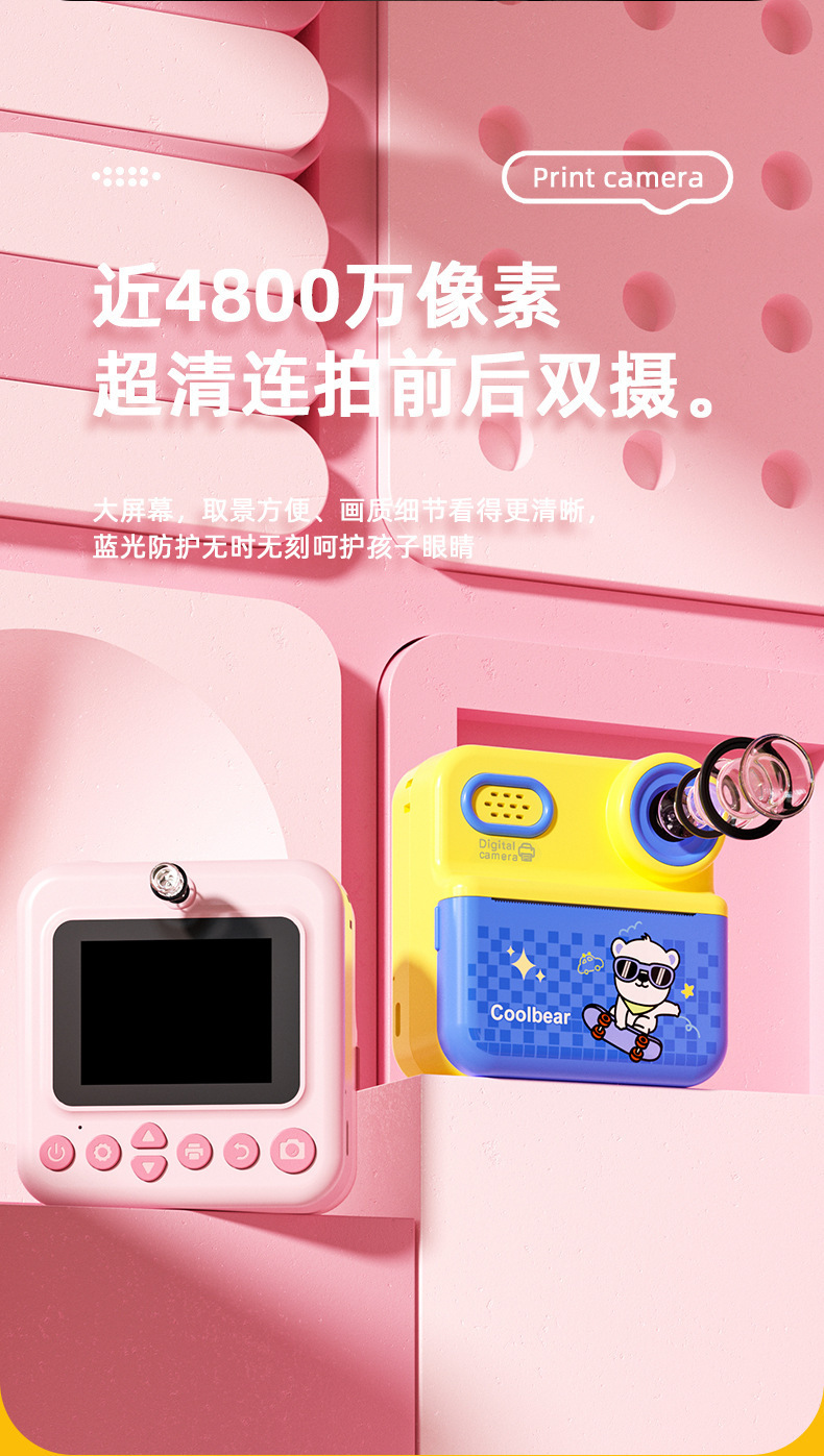 새로운 P03 어린이 인쇄 카메라, 즉석 만화 폴라로이드 장난감, 렌즈 플립, 셀카 도매스토어 가기