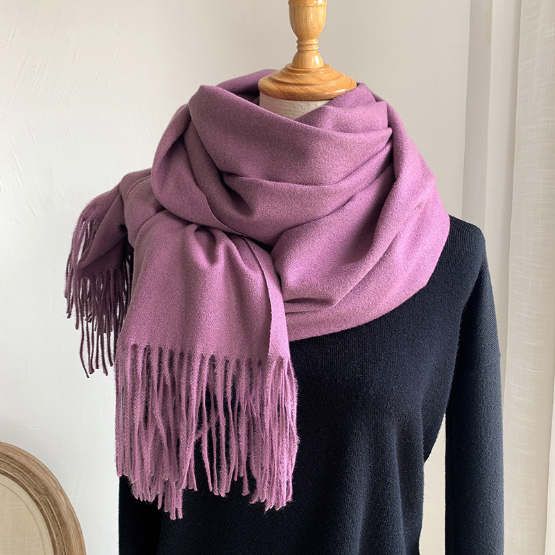 D 단색 술 스카프 여성 가을, 겨울 새로운 방한 남성 스카프 한국어 두꺼운 따뜻한 모조 캐시미어 목도리