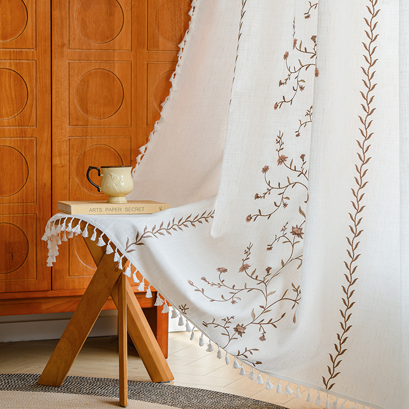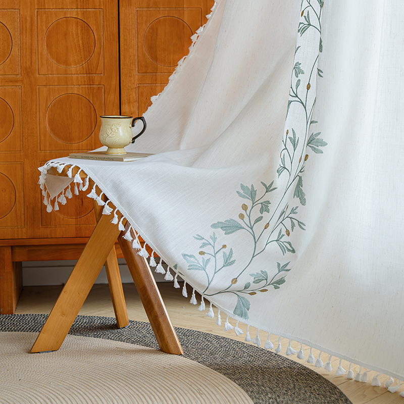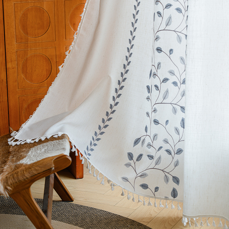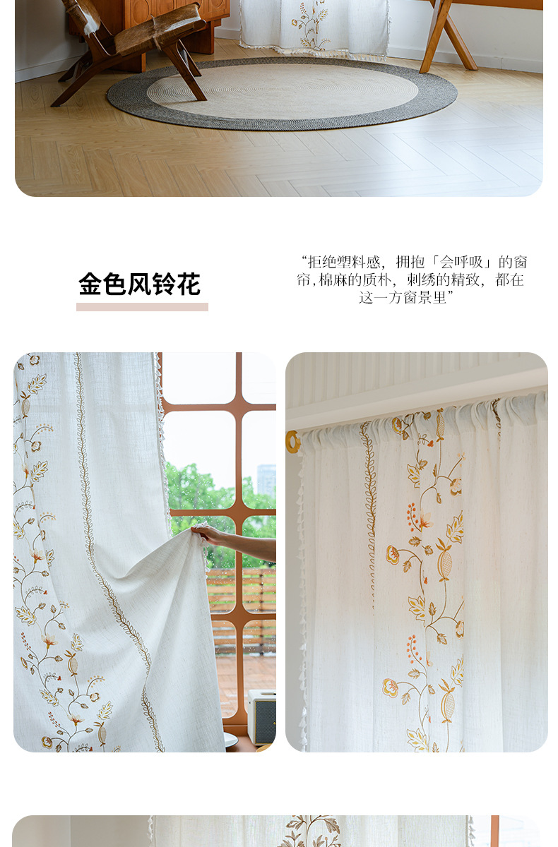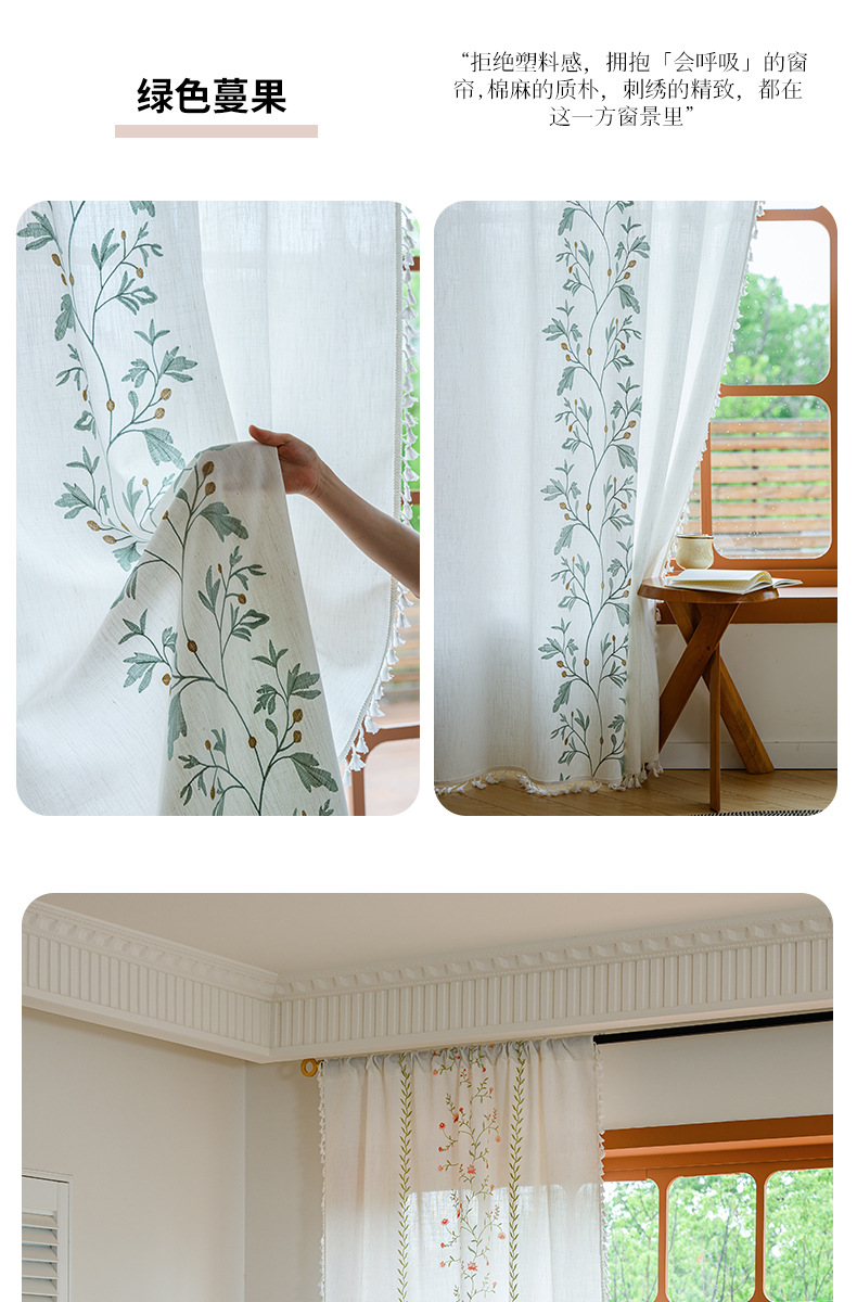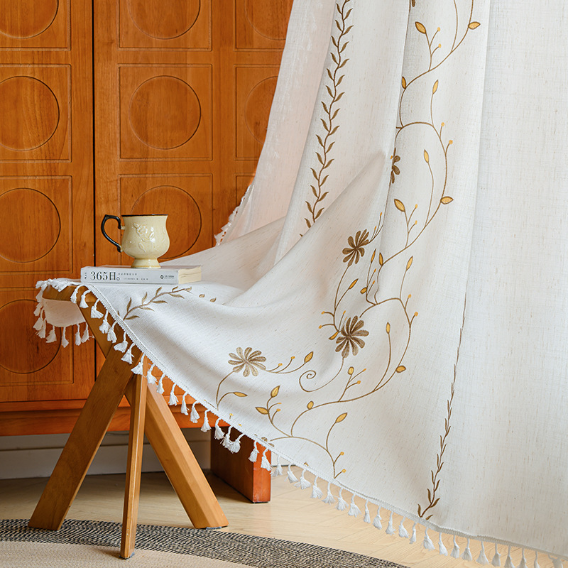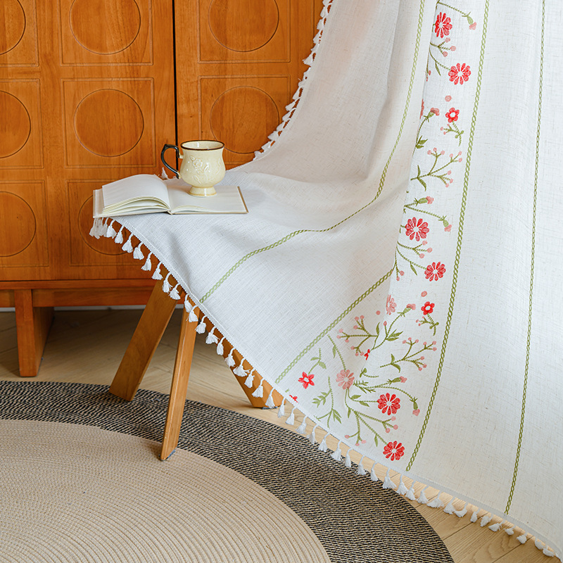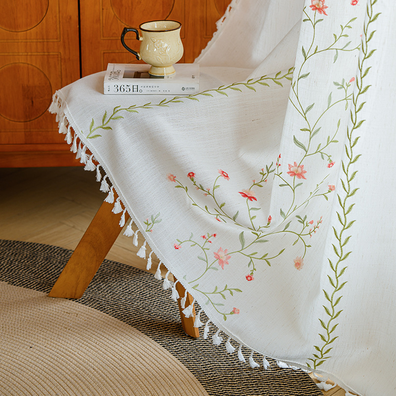 Youzhuo의 새로운 면 및 린넨 자수 완성 커튼, 작은 신선한 꽃무늬 반 차광 커튼, 주방 침실 칸막이 커튼