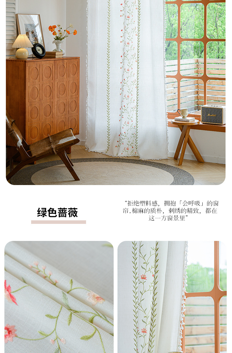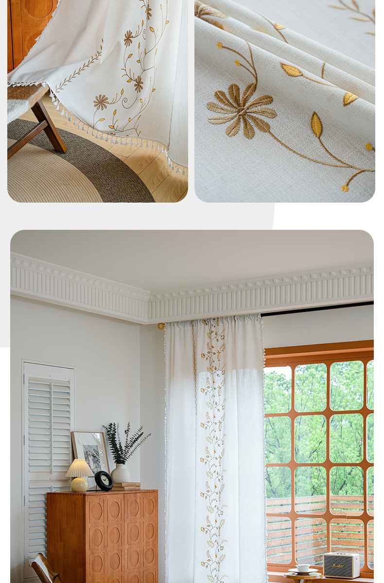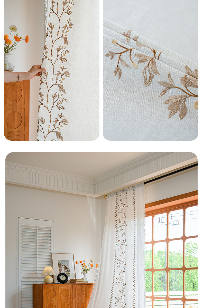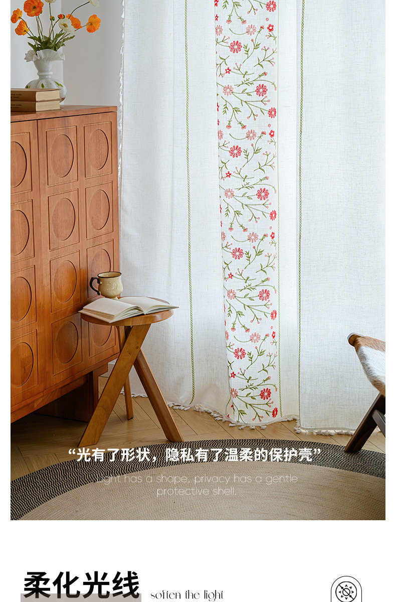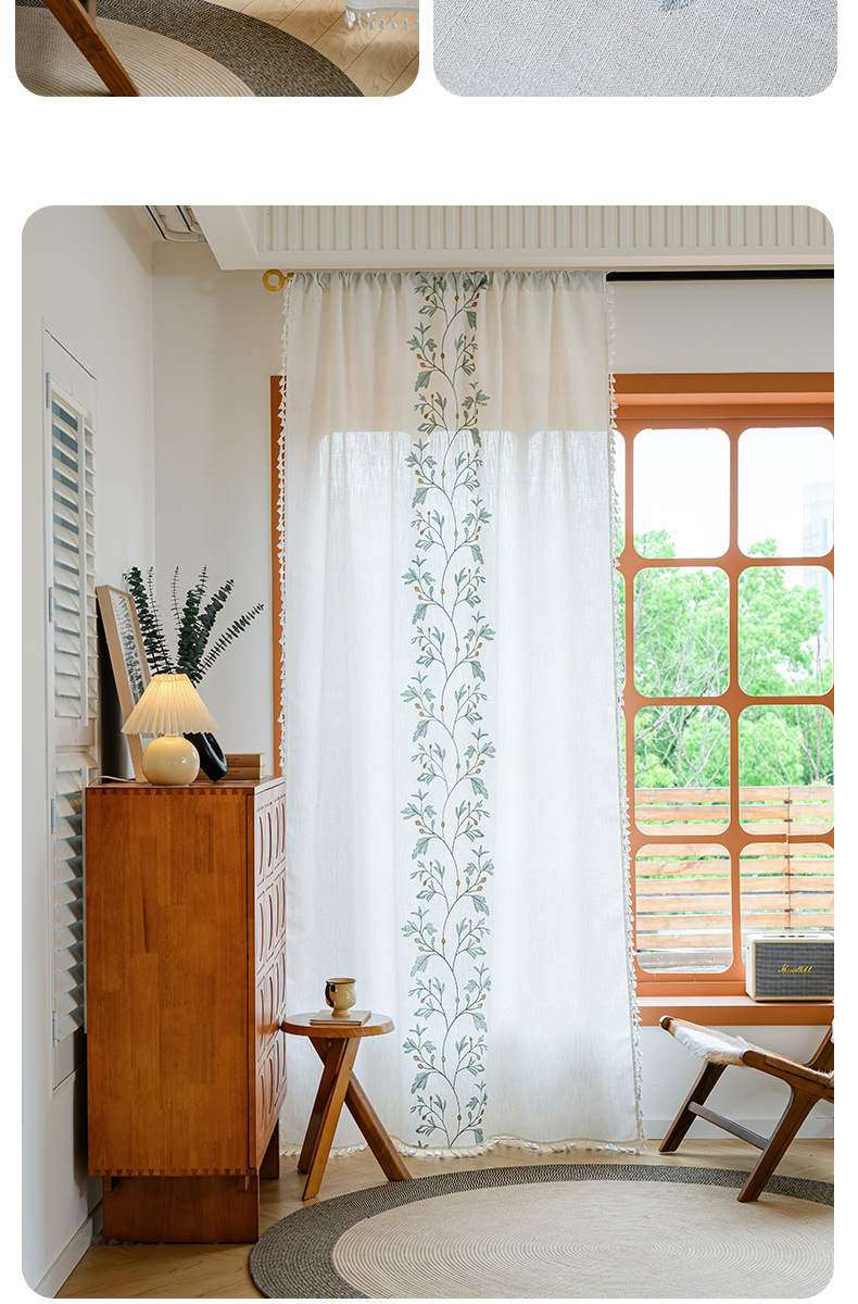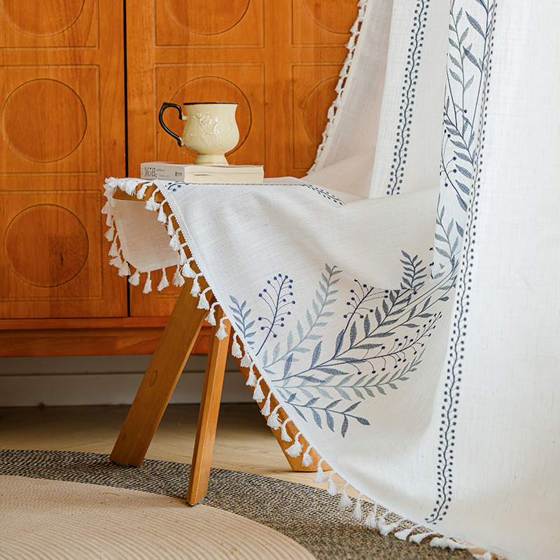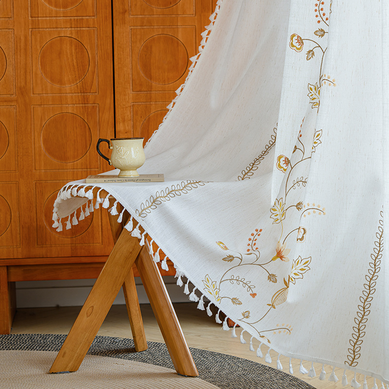 Youzhuo의 새로운 면 및 린넨 자수 완성 커튼, 작은 신선한 꽃무늬 반 차광 커튼, 주방 침실 칸막이 커튼