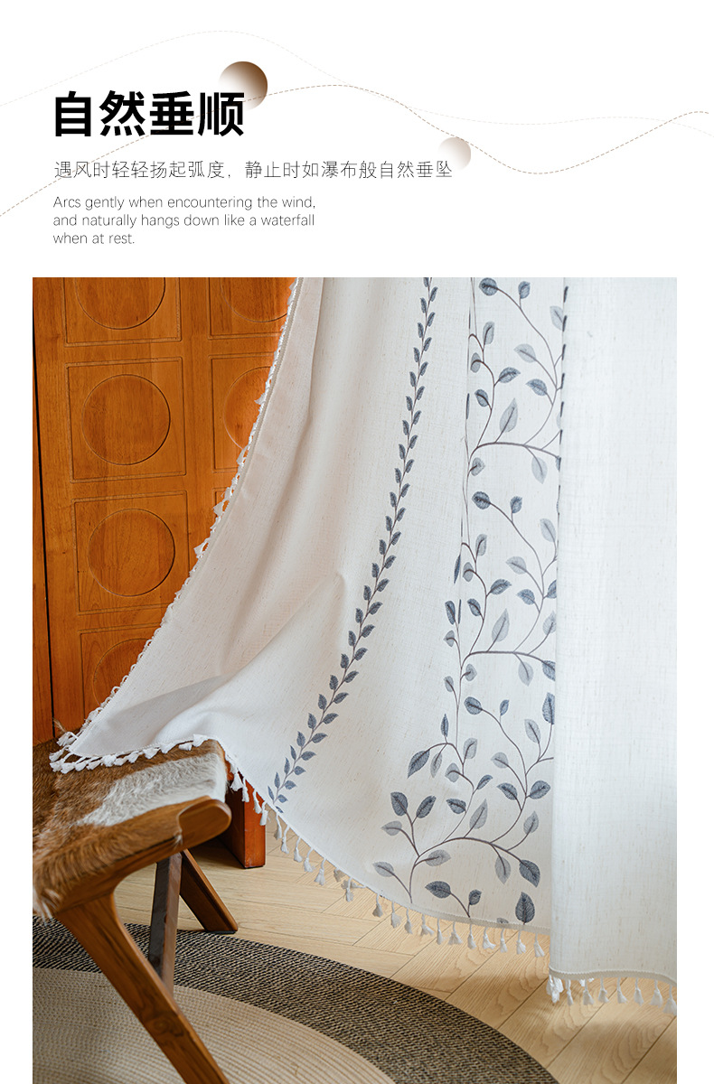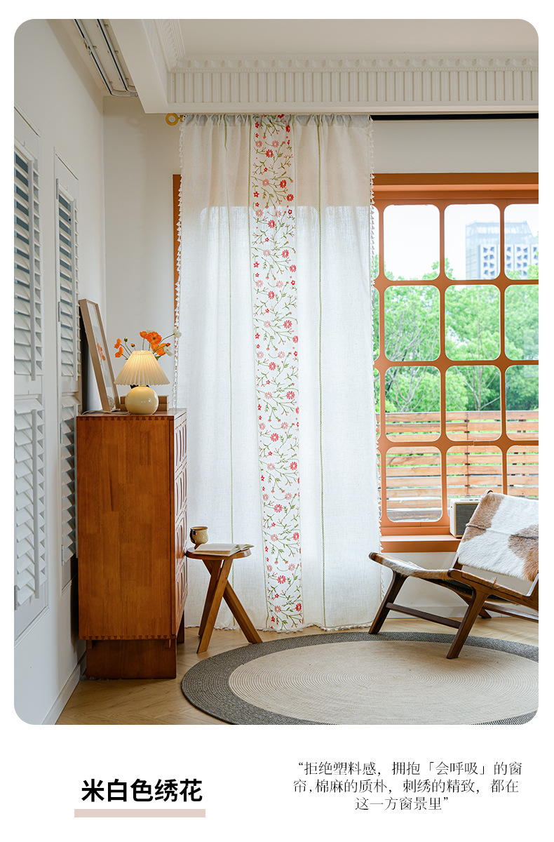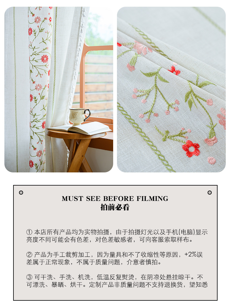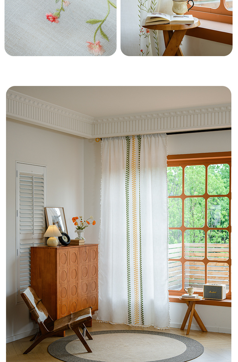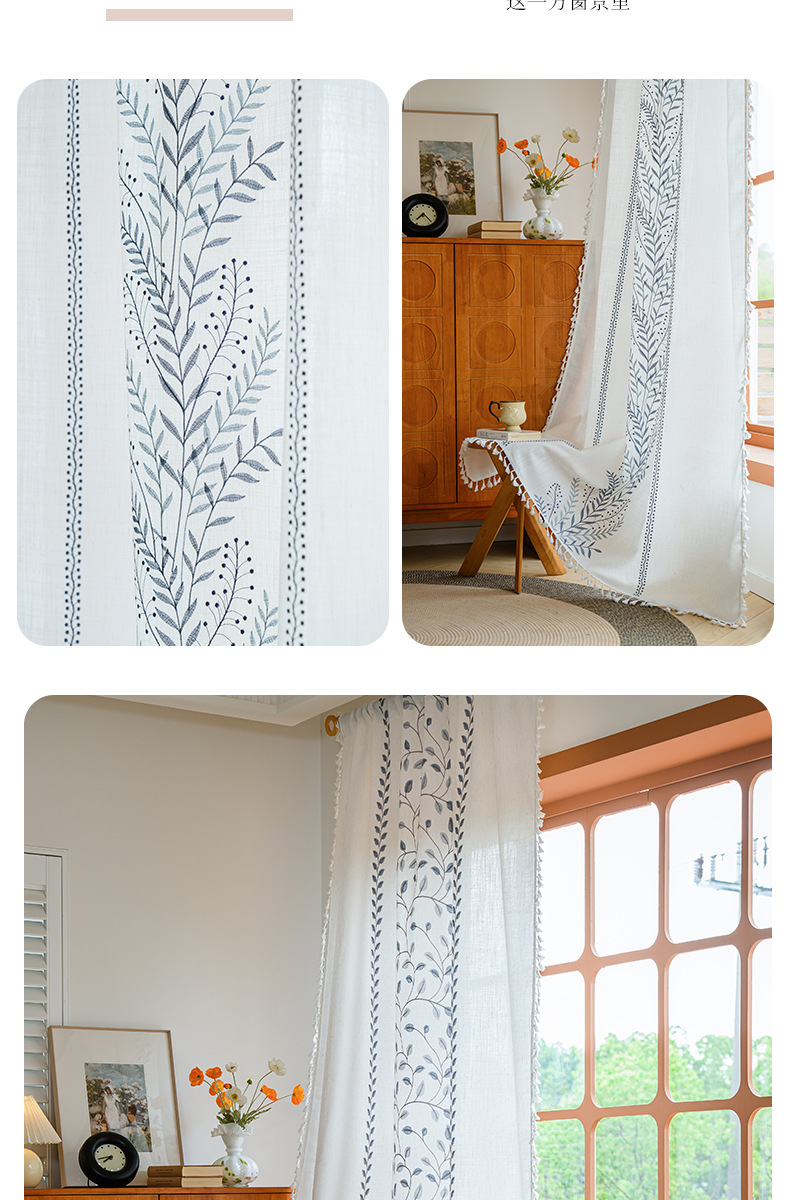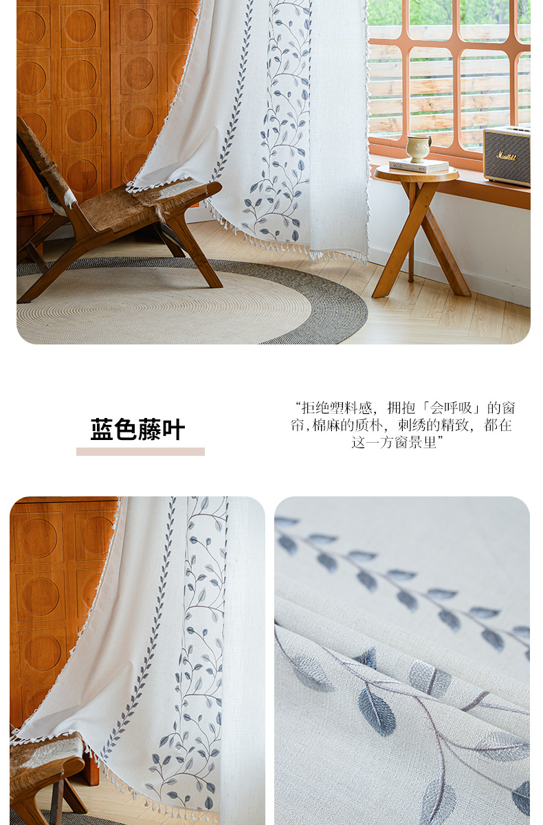 Youzhuo의 새로운 면 및 린넨 자수 완성 커튼, 작은 신선한 꽃무늬 반 차광 커튼, 주방 침실 칸막이 커튼