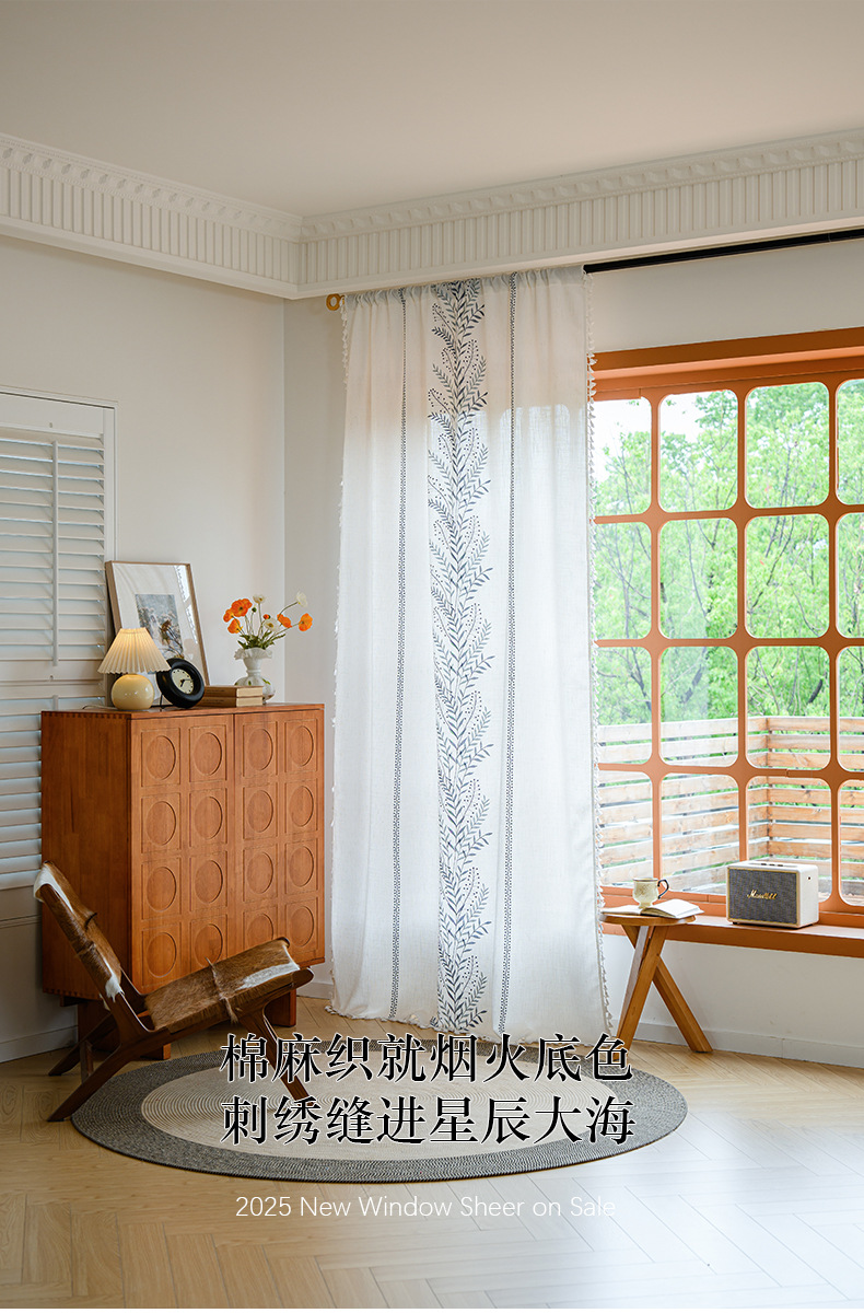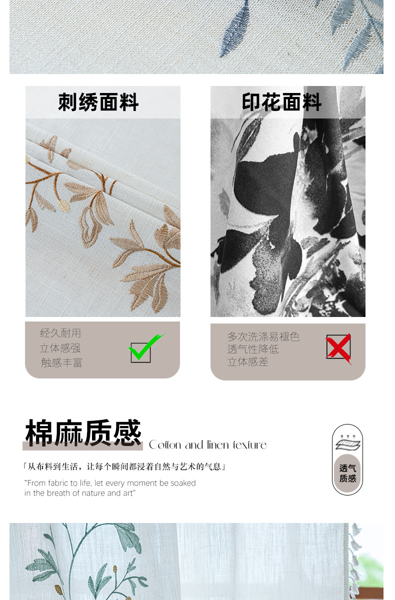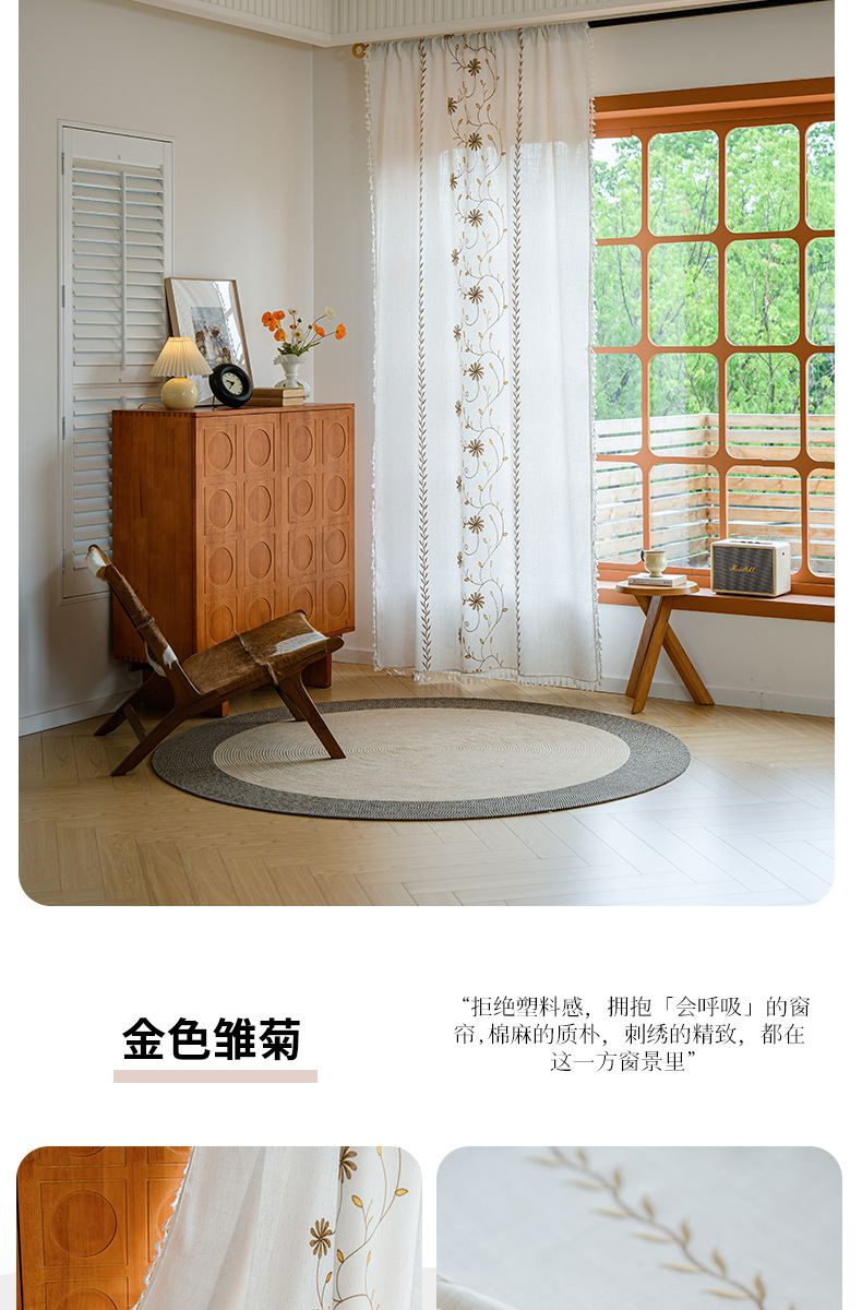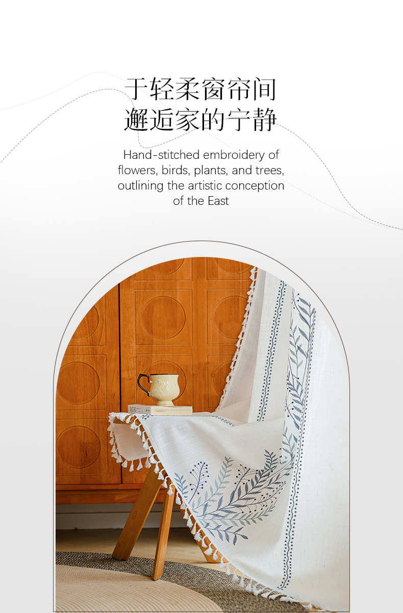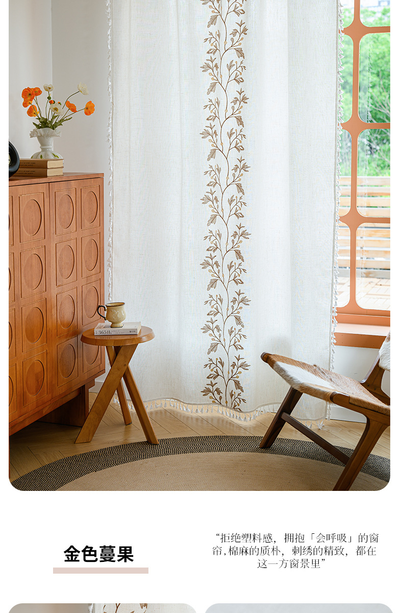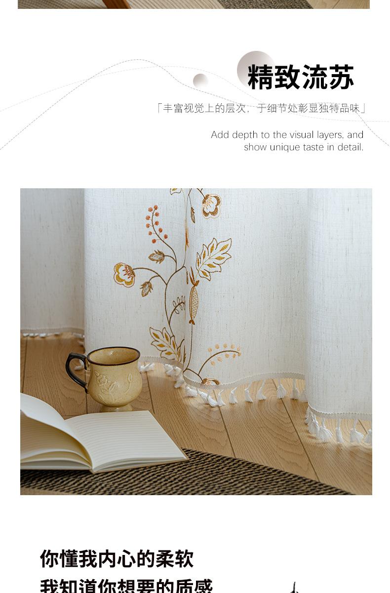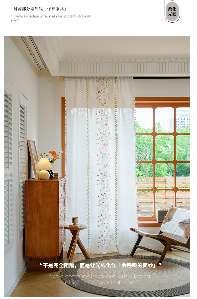 Youzhuo의 새로운 면 및 린넨 자수 완성 커튼, 작은 신선한 꽃무늬 반 차광 커튼, 주방 침실 칸막이 커튼