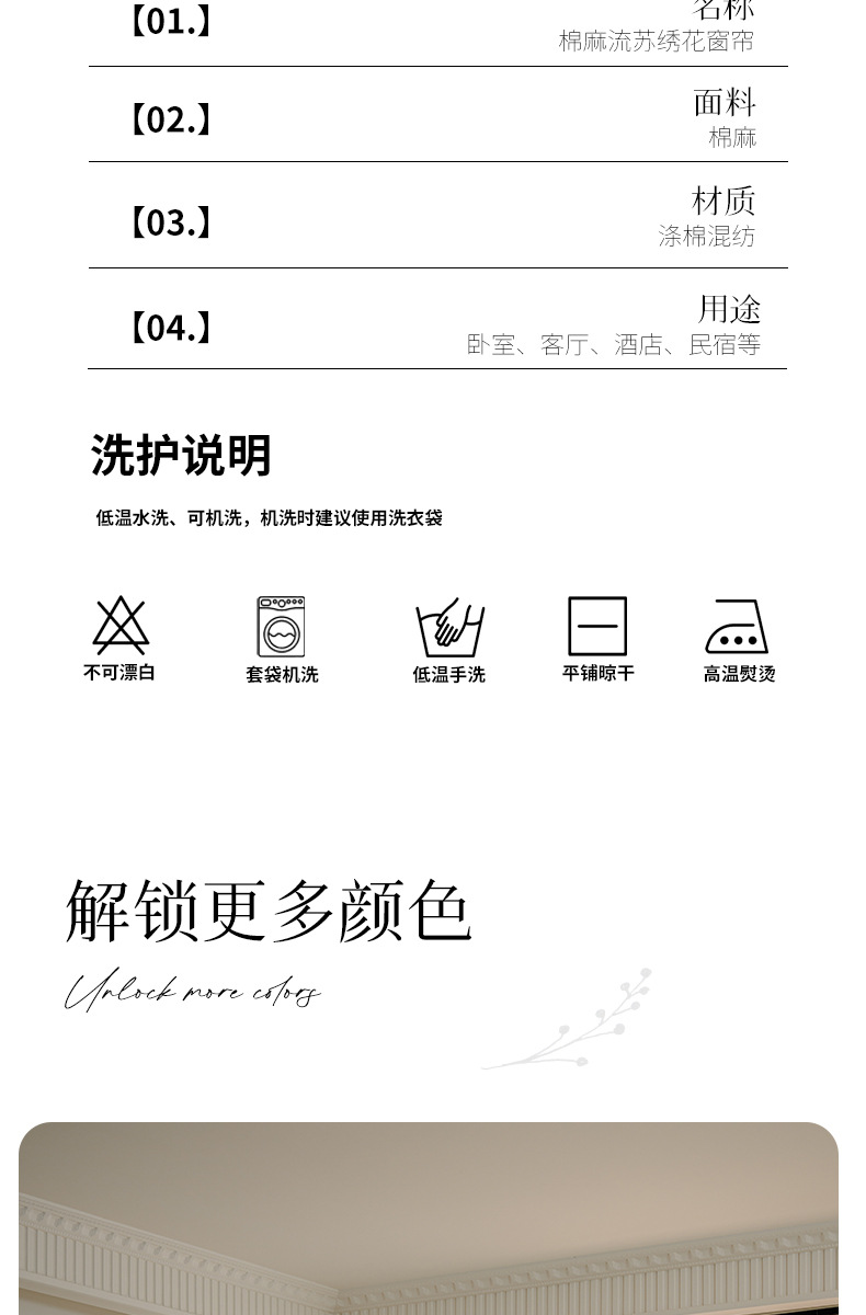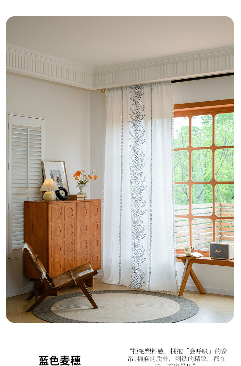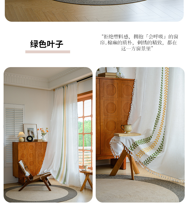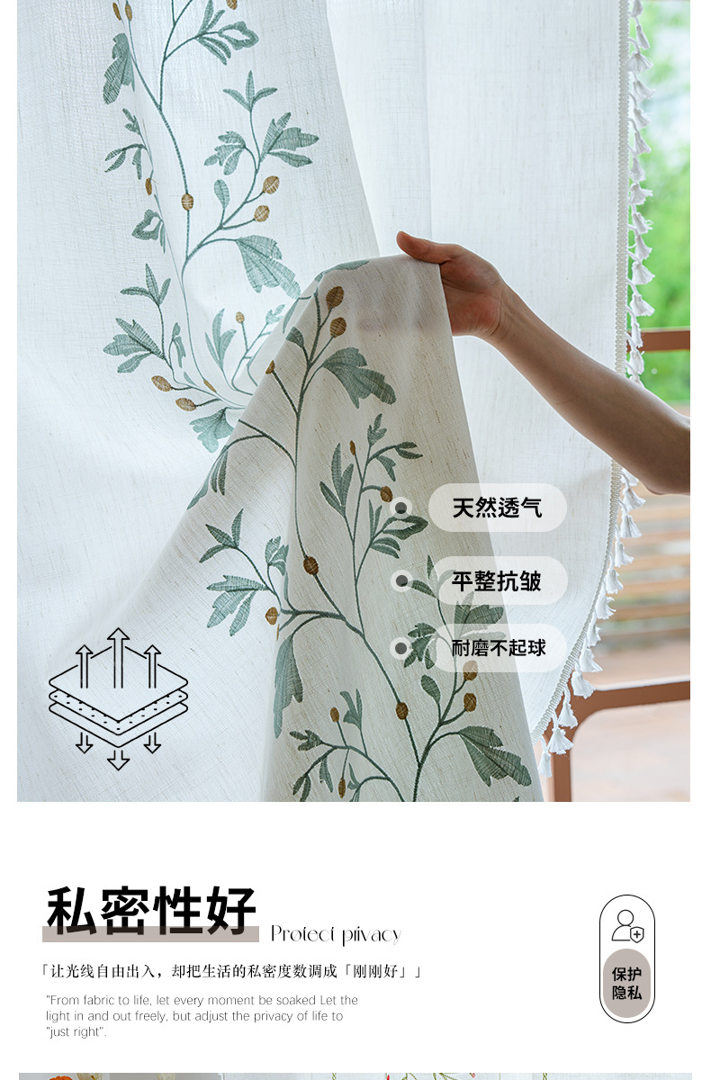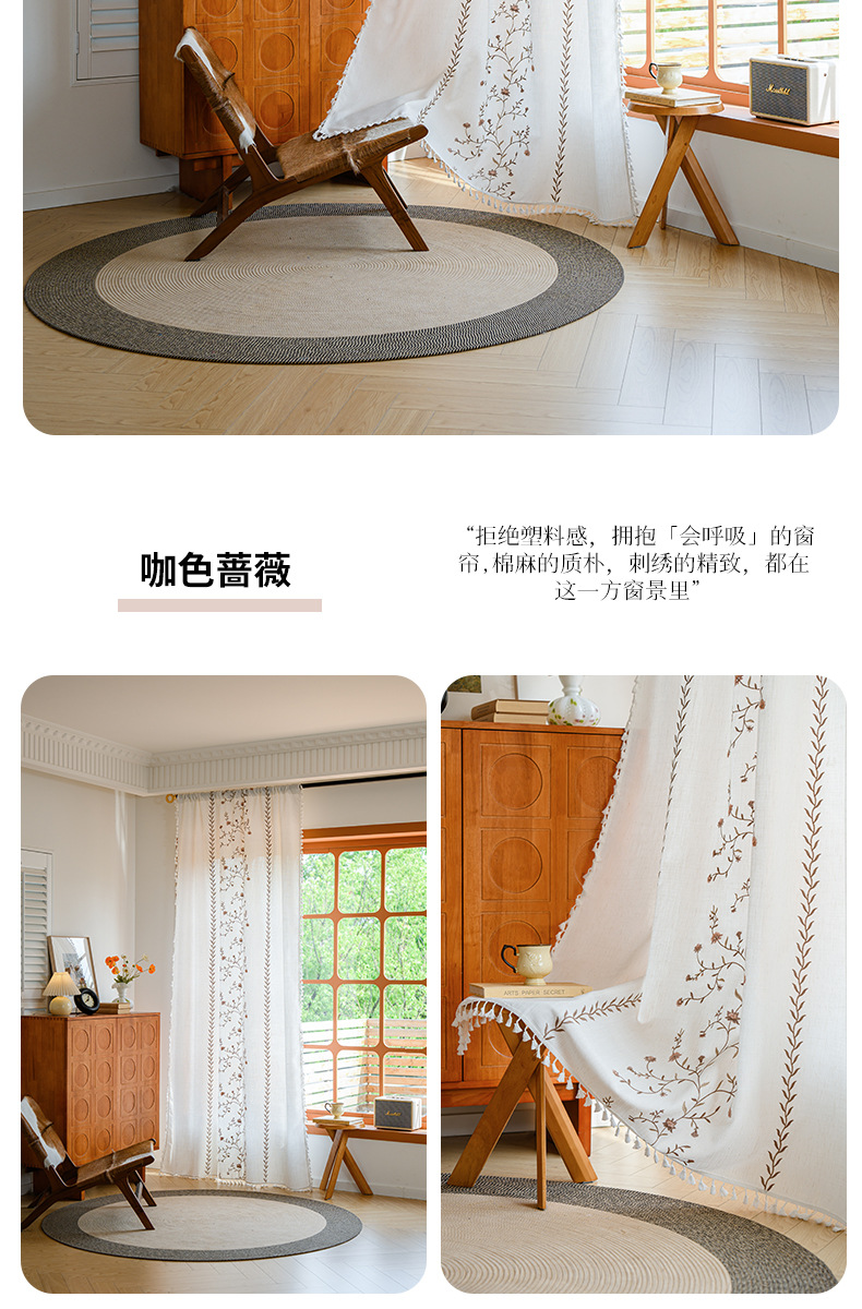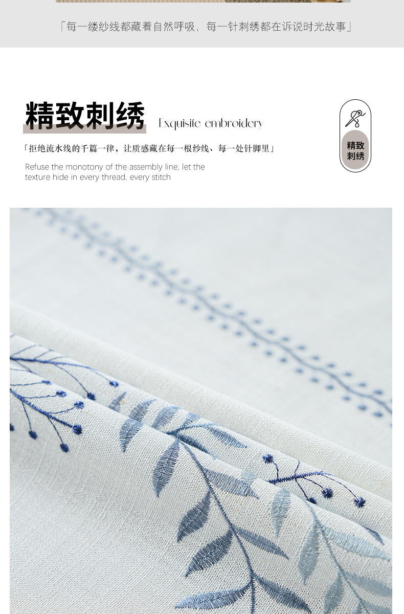 Youzhuo의 새로운 면 및 린넨 자수 완성 커튼, 작은 신선한 꽃무늬 반 차광 커튼, 주방 침실 칸막이 커튼