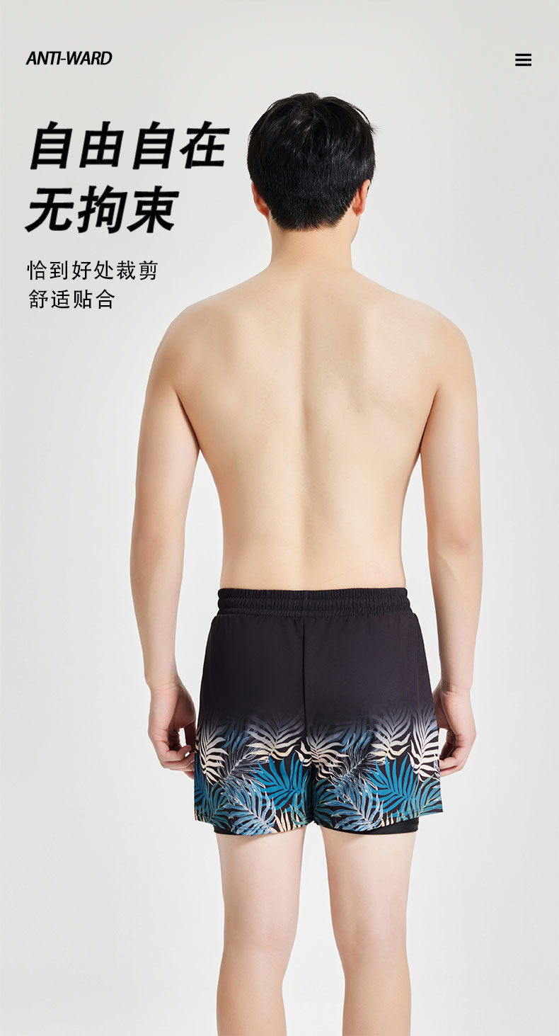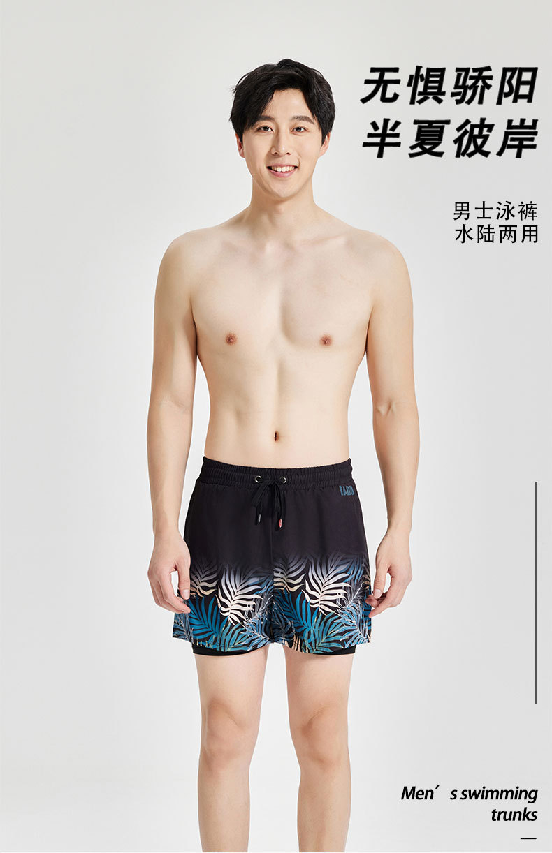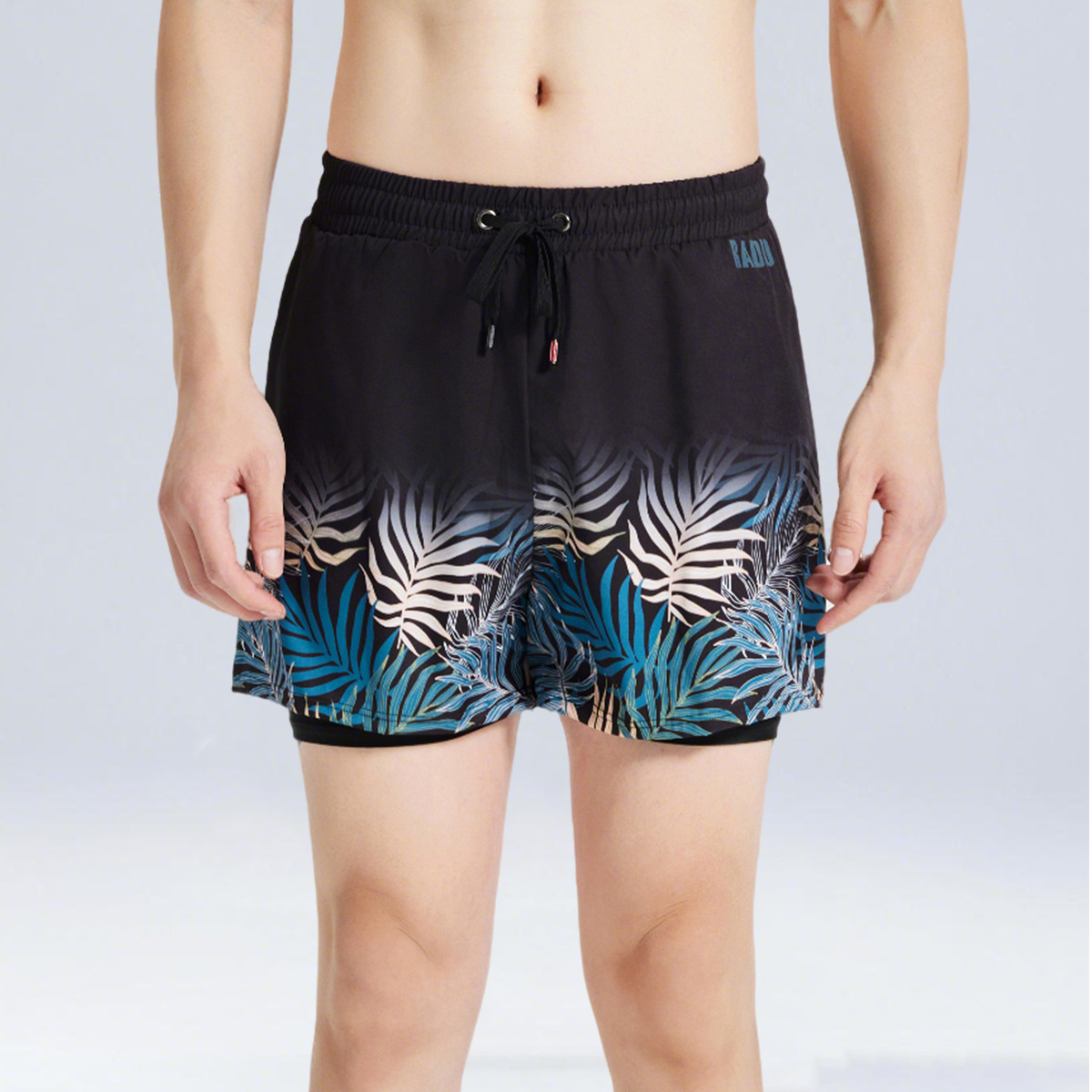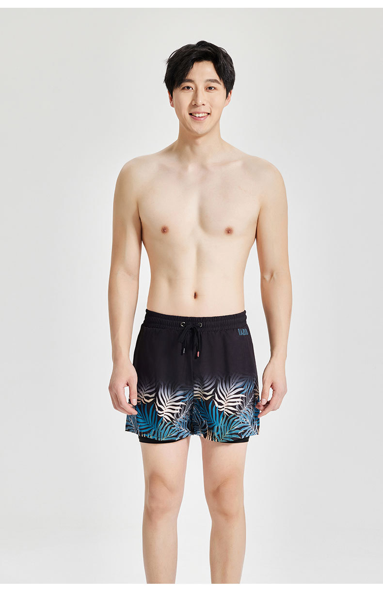 Xianheyuan 세련된 새로운 남성 수영 바지 더블 레이어 안티-불편 인쇄 빠른 건조 편안한 스포츠 남성 짧은 수영 바지