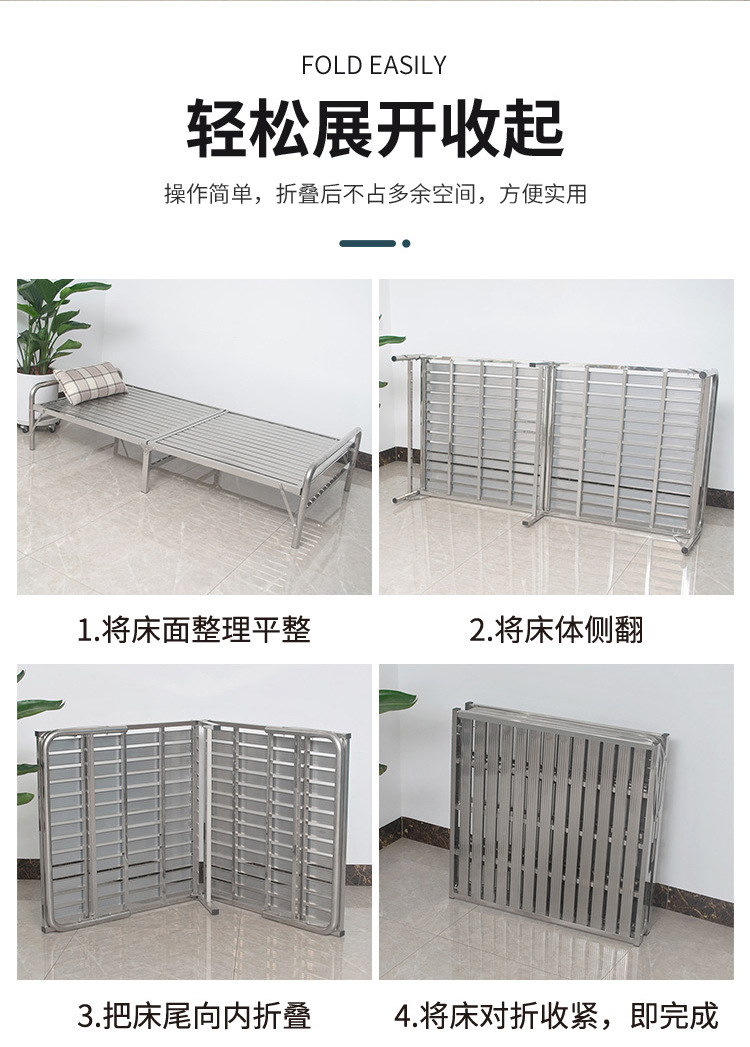 스테인레스 스틸 접이식 침대 가정용 간단한 침대 사무실 점심 시간 낮잠 침대 1.12m 싱글 더블 침대 IronT&