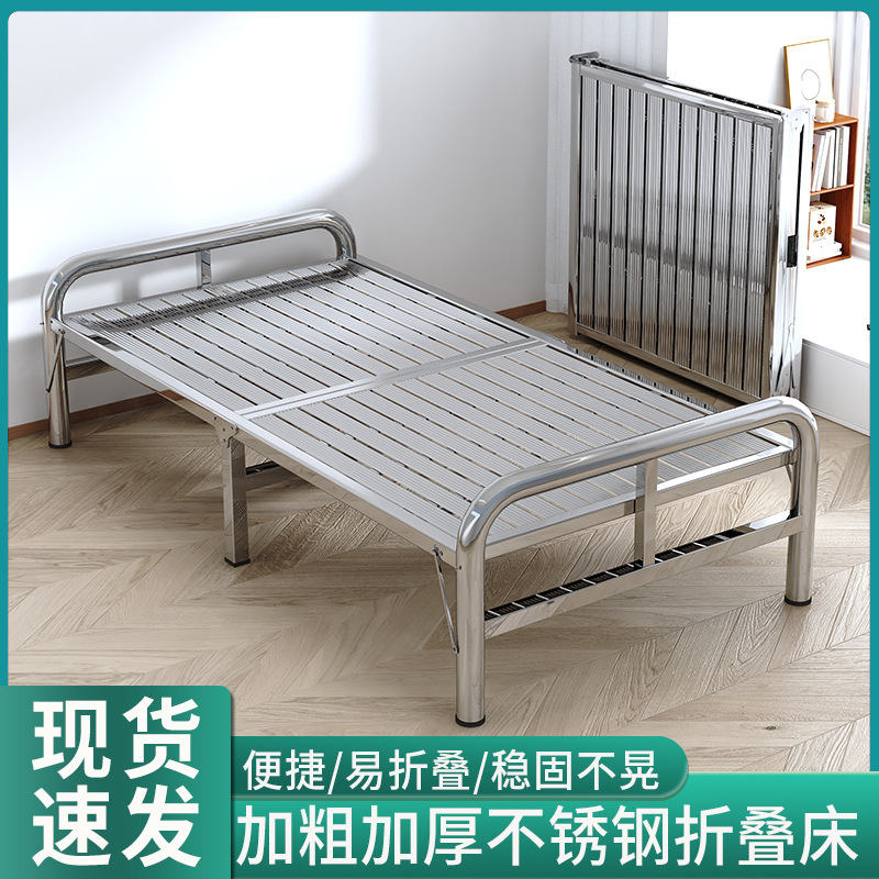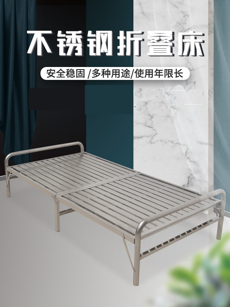 스테인레스 스틸 접이식 침대 가정용 간단한 침대 사무실 점심 시간 낮잠 침대 1.12m 싱글 더블 침대 IronT&스토어 가기