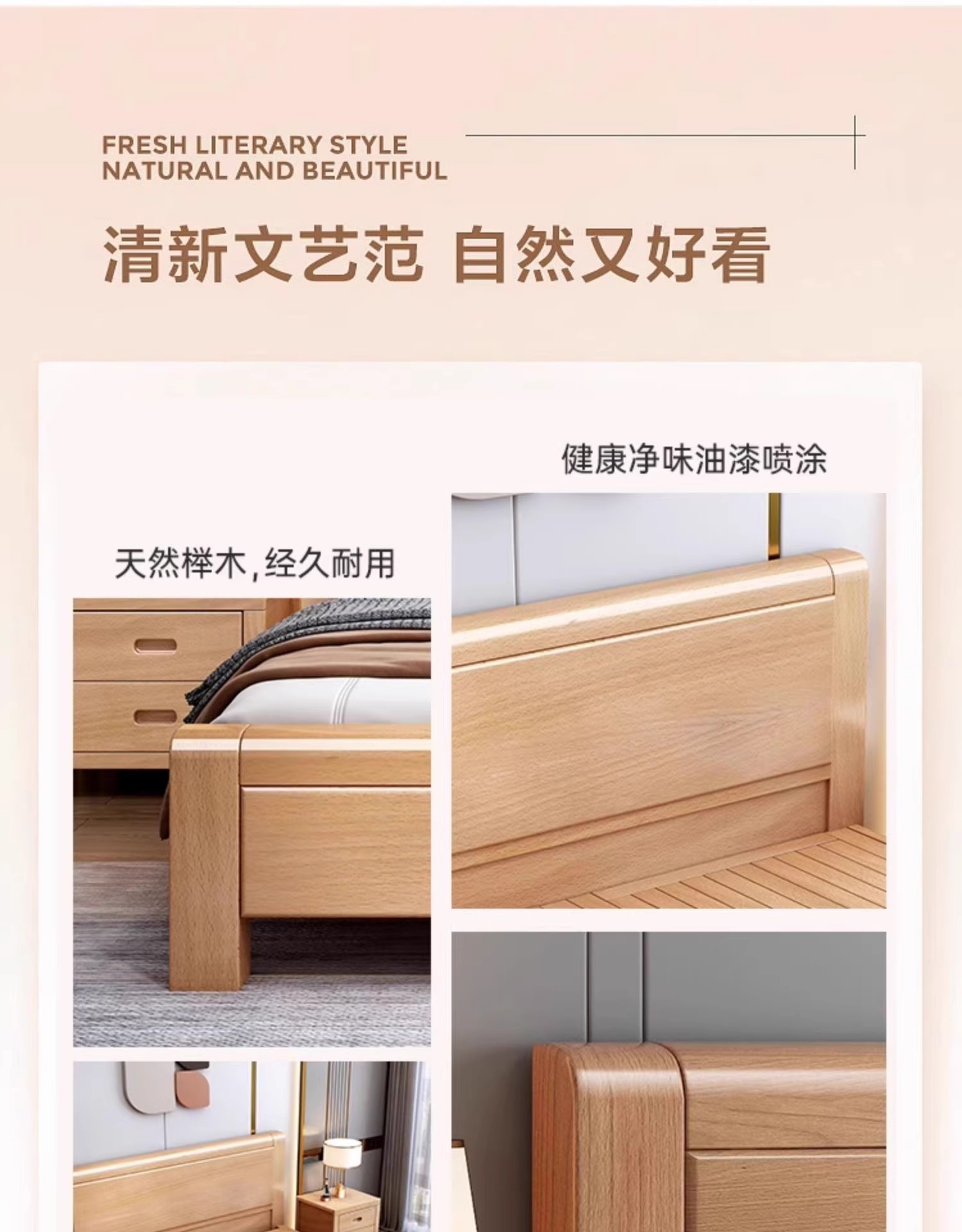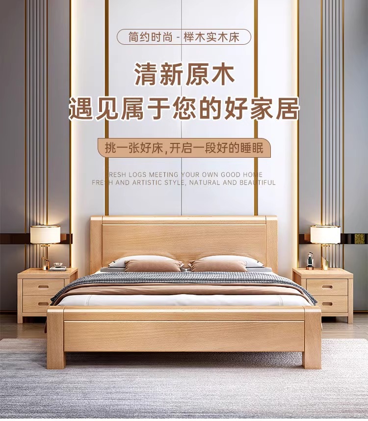 북유럽 단단한 나무 침대 너도밤 나무 침대 라이트 럭셔리 마스터 침실 1.8m 더블 침대 B&B 1.5m 현대 미니멀리스트 싱글 침대스토어 가기