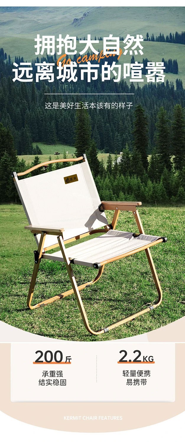 Zhenghuo 야외 접이식 의자 캠핑 의자 휴대용 피크닉 나뭇결 의자 Kermit 의자 자동차 의자 야외 레저스토어 가기