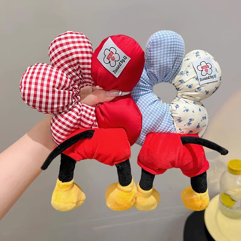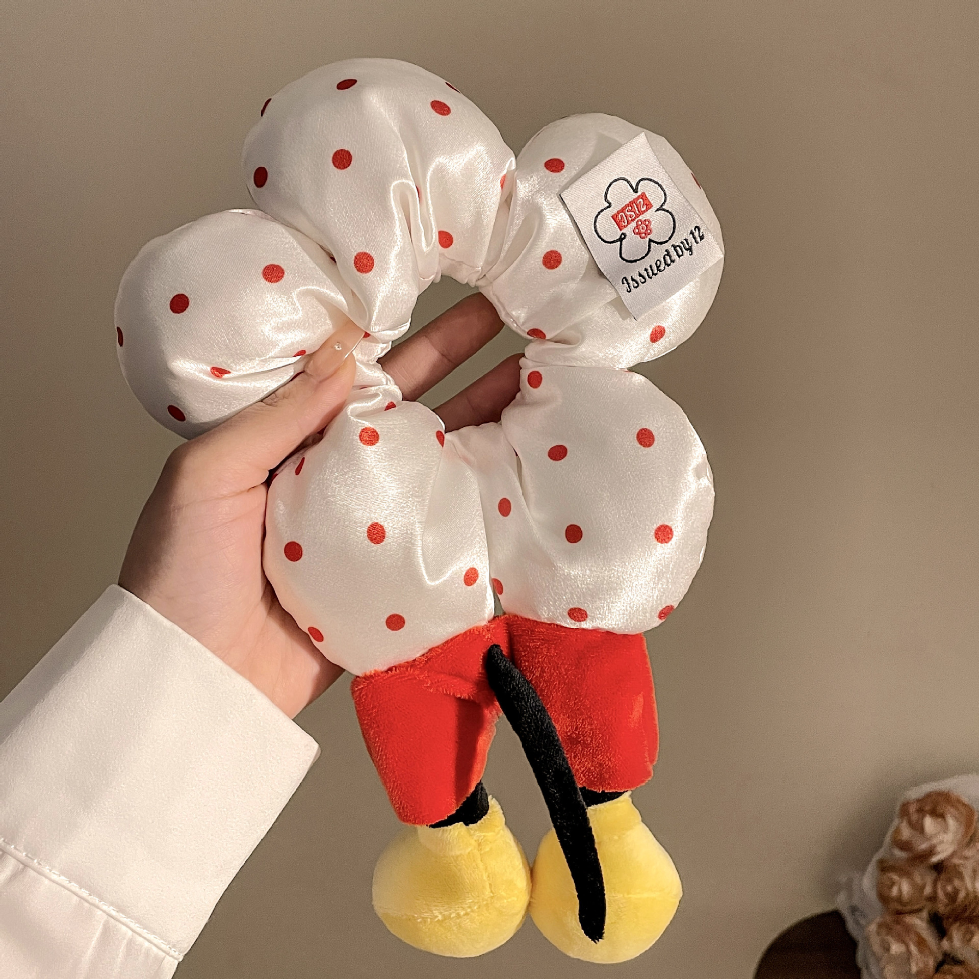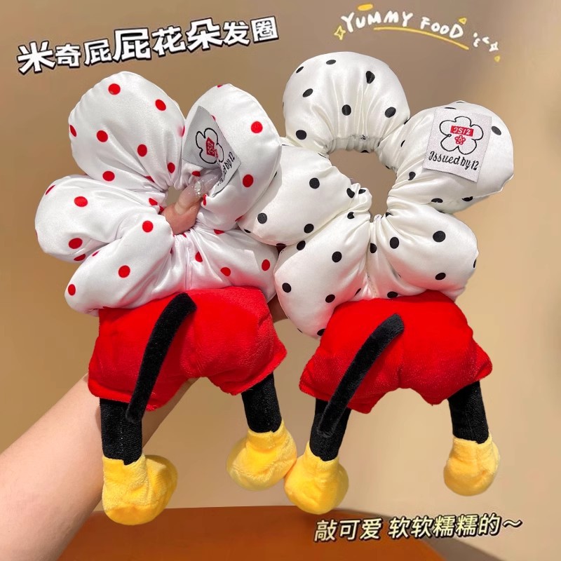 여성용 귀여운 미키 엉덩이 꽃 대장 헤어 밴드, 고급 면화 볼 헤드 로프, 플러시 헤어 타이, 포니테일 헤어 로프