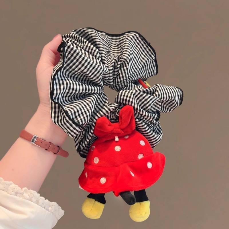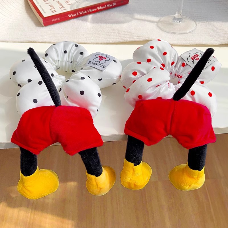 여성용 귀여운 미키 엉덩이 꽃 대장 헤어 밴드, 고급 면화 볼 헤드 로프, 플러시 헤어 타이, 포니테일 헤어 로프스토어 가기