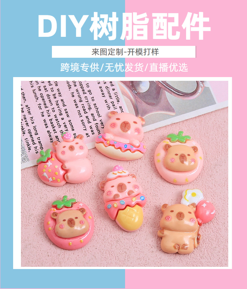 핑크 딸기 카피 만화 수제 diy 크림 접착제 수지 작은 액세서리 구멍 신발 버클 쥬얼리 재료 도매
