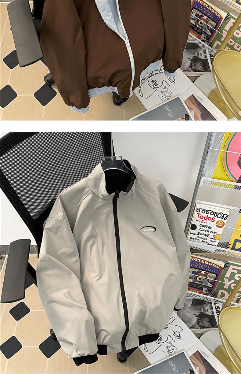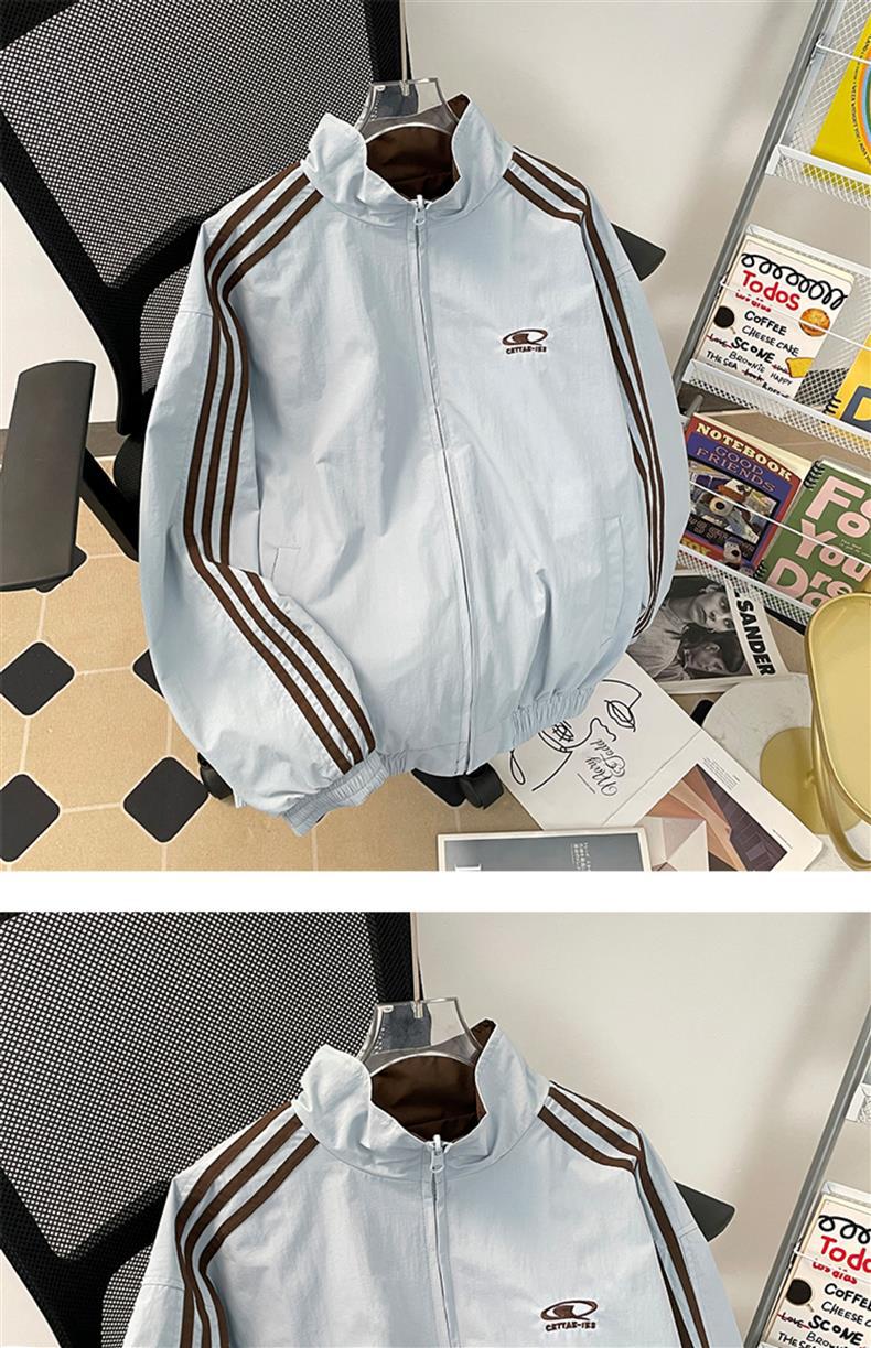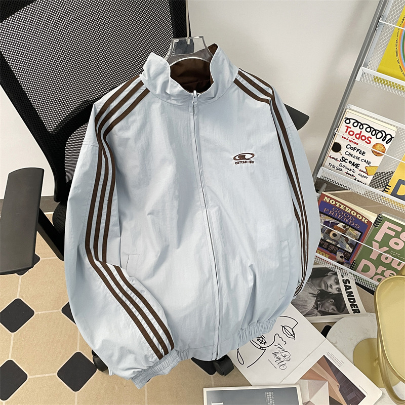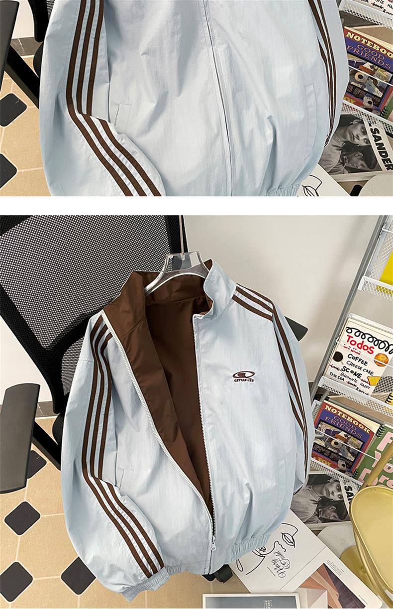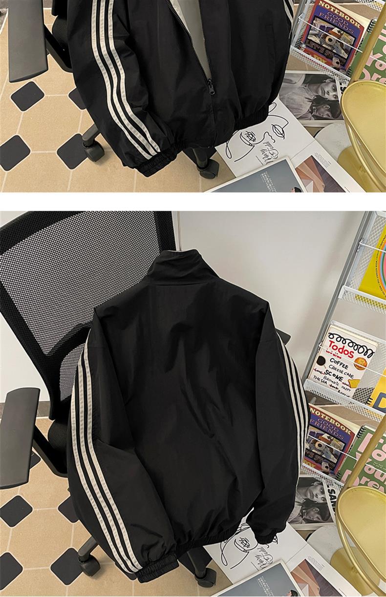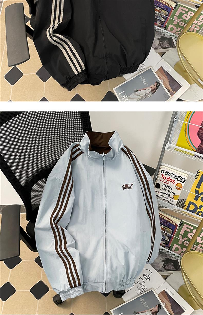 아메리칸 스포츠 세 줄무늬 스탠드 칼라 재킷 남성 봄, 가을 트렌디 브랜드 하이 스트리트 루즈 리버시블 재킷스토어 가기