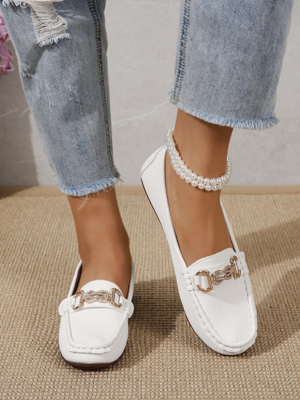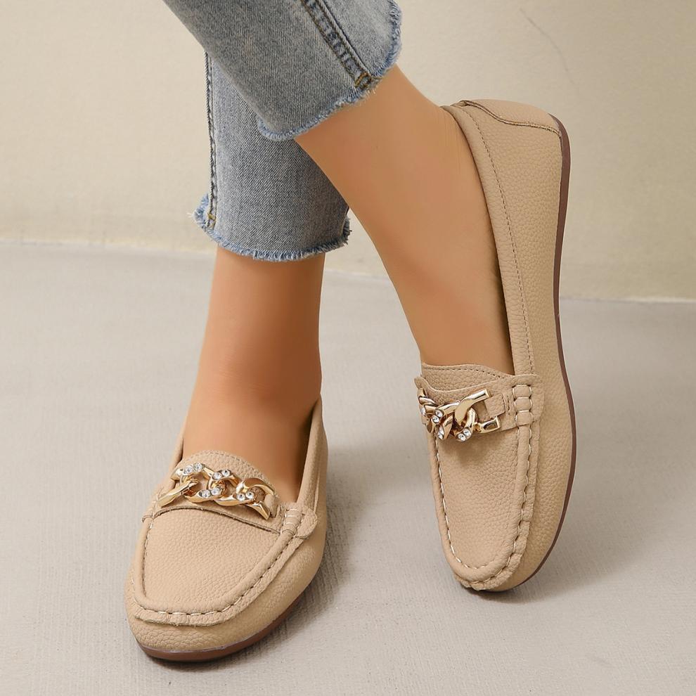 여성을위한 봄과 가을 새로운 스타일의 비니 신발 한국 스타일 라운드 발가락 낮은 굽 금속 체인 캐주얼 엄마 신발 여성을위한 재고 있음
