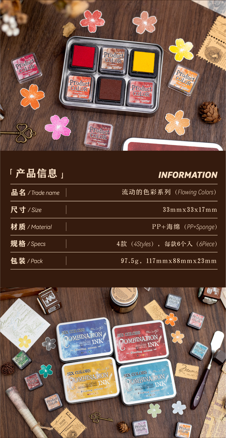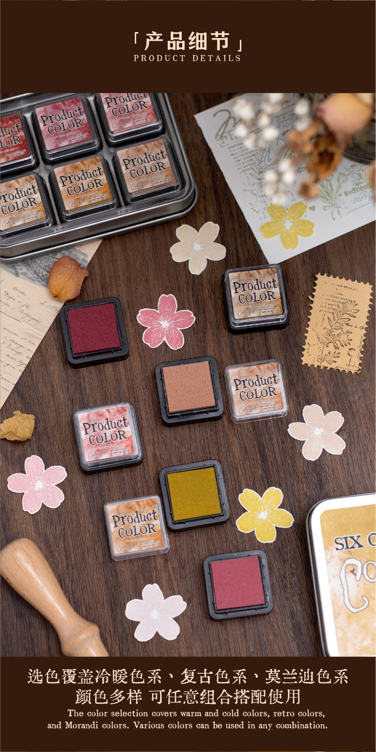 Yan은 레트로 미니 스퀘어 어린이 손 계정 기본 장식 인쇄 테이블에 잉크 패드 흐름의 컬러 시리즈를 결합했습니다.