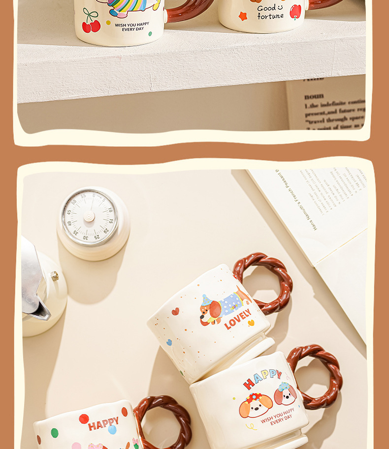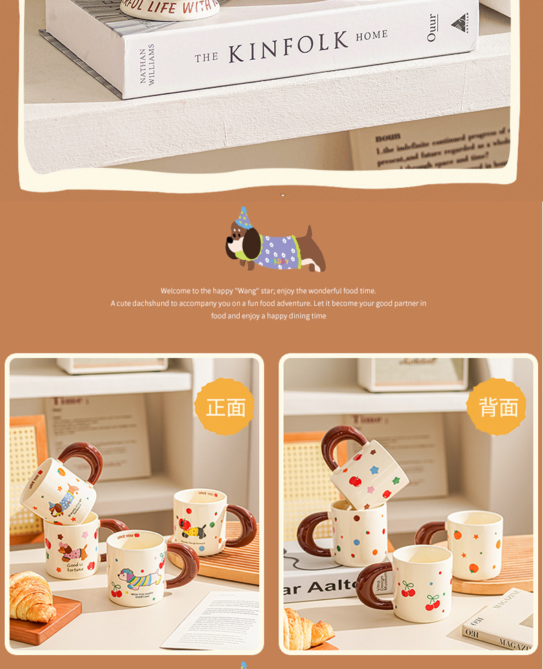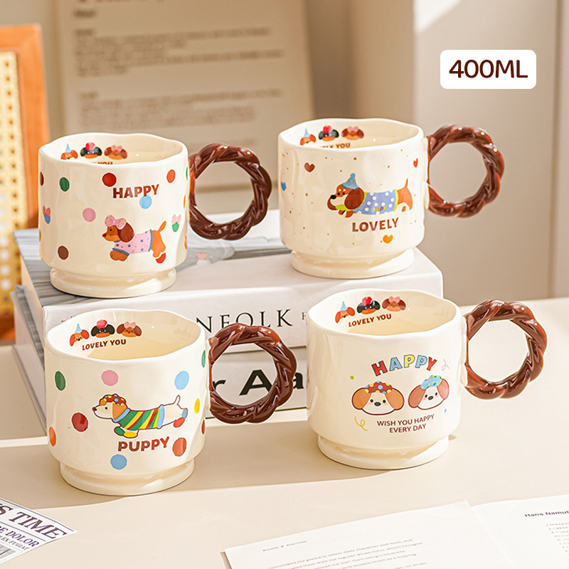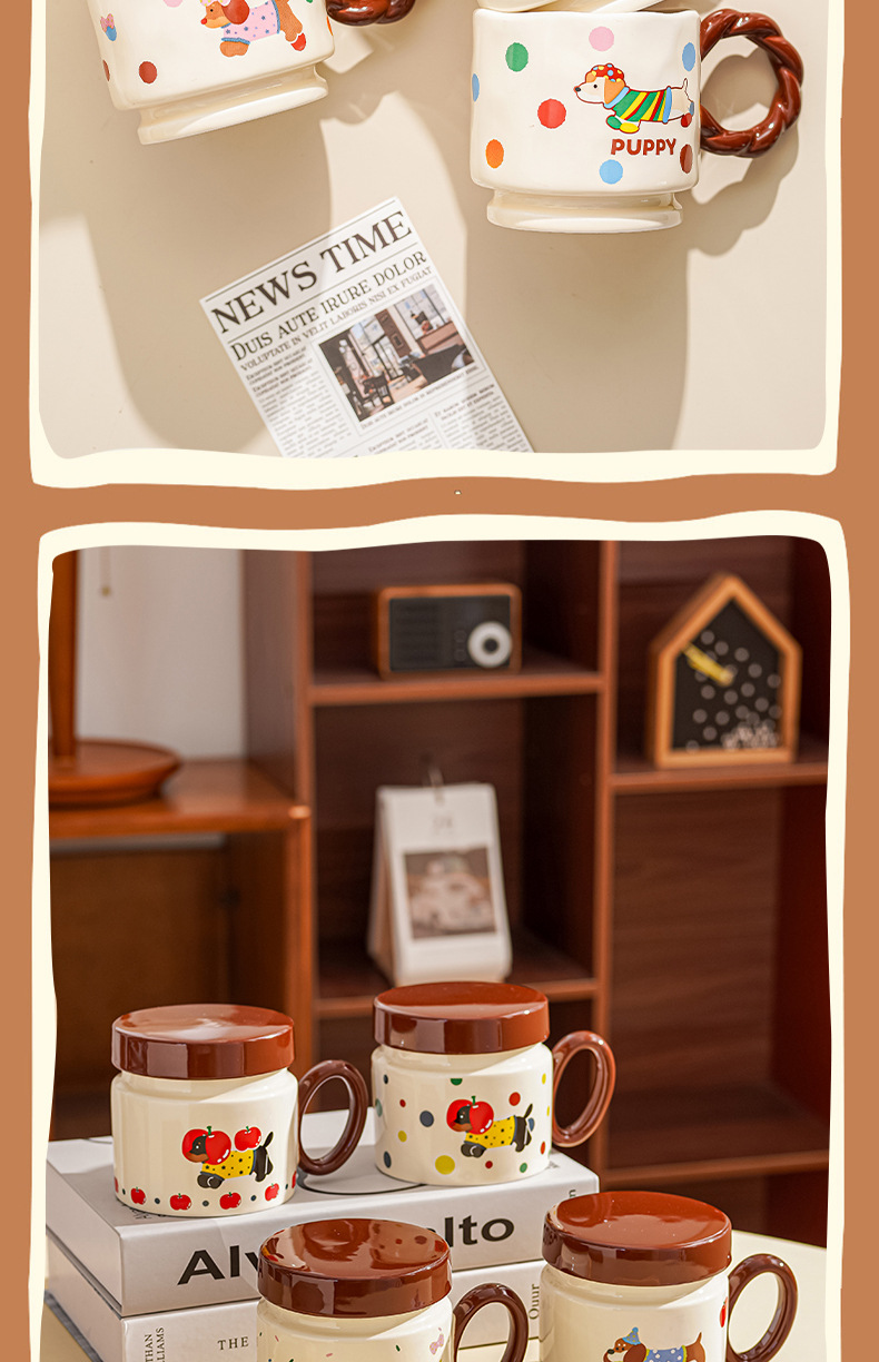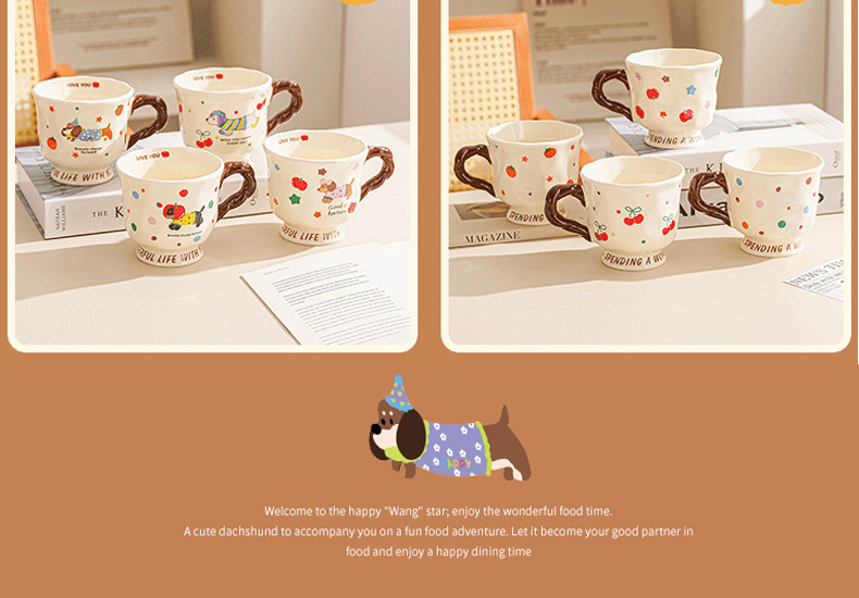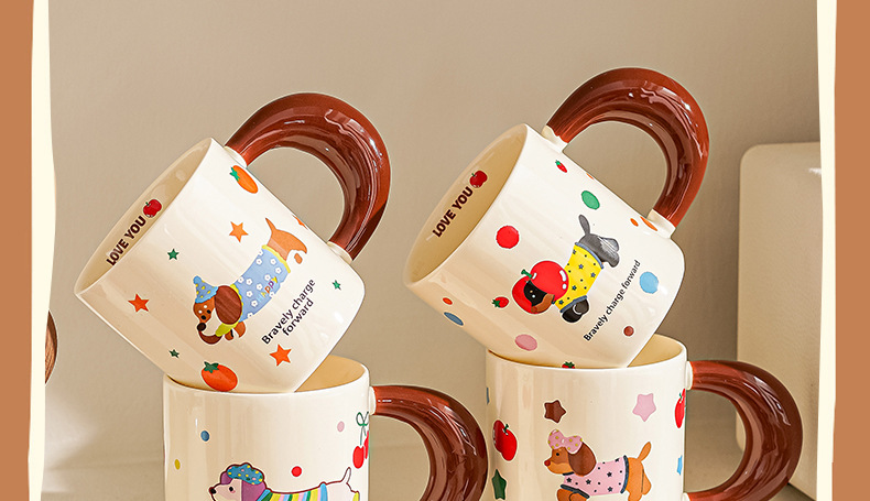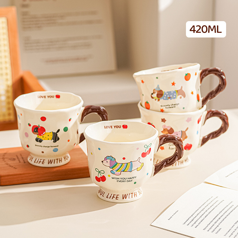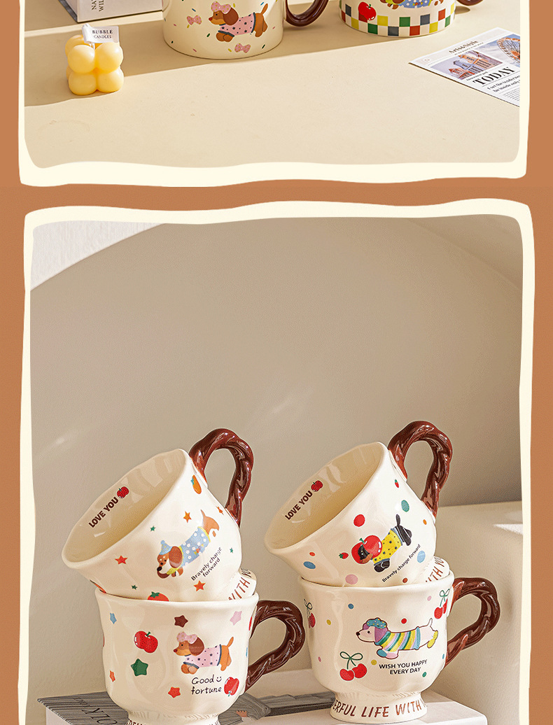 Wachshund Dog 시리즈 찻잔 소녀의 귀여운 가정용 음주 컵 새로운 스타일 2025 커피 아침 식사 컵 세라믹 컵스토어 가기