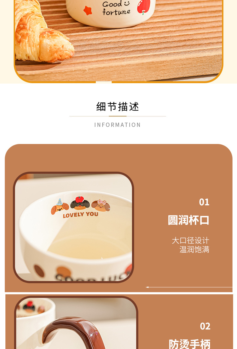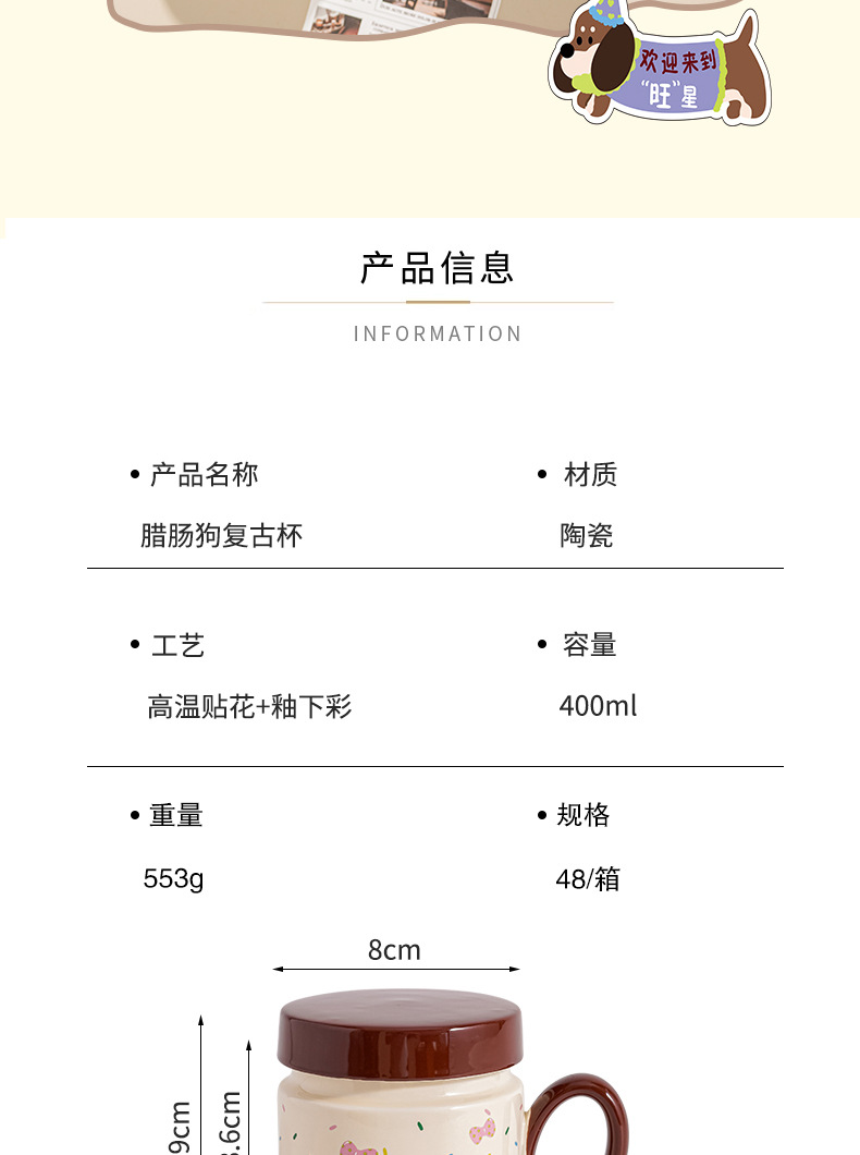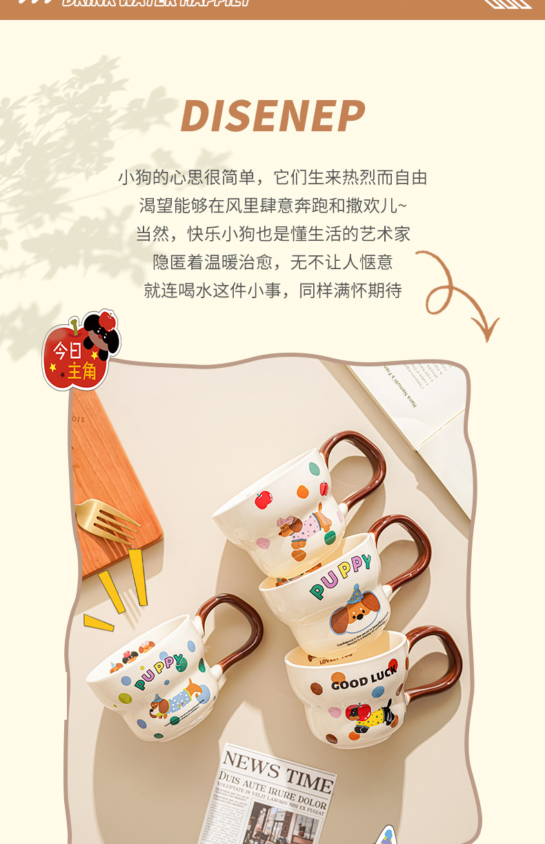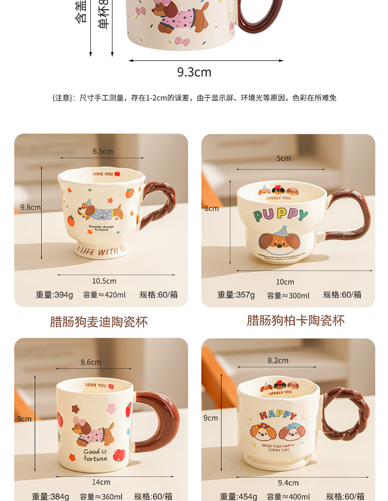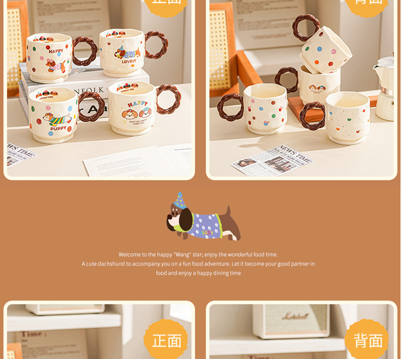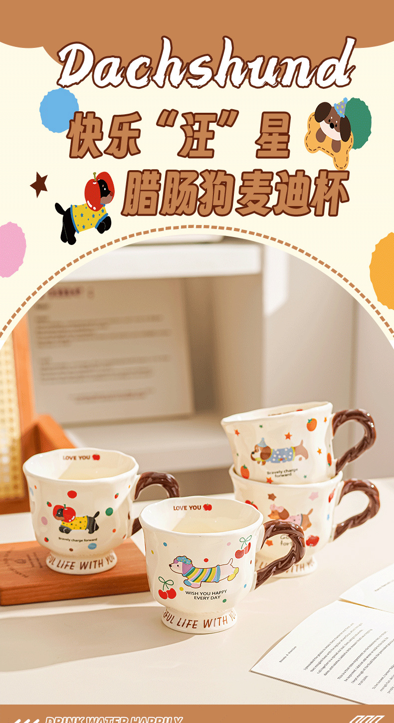 Wachshund Dog 시리즈 찻잔 소녀의 귀여운 가정용 음주 컵 새로운 스타일 2025 커피 아침 식사 컵 세라믹 컵스토어 가기
