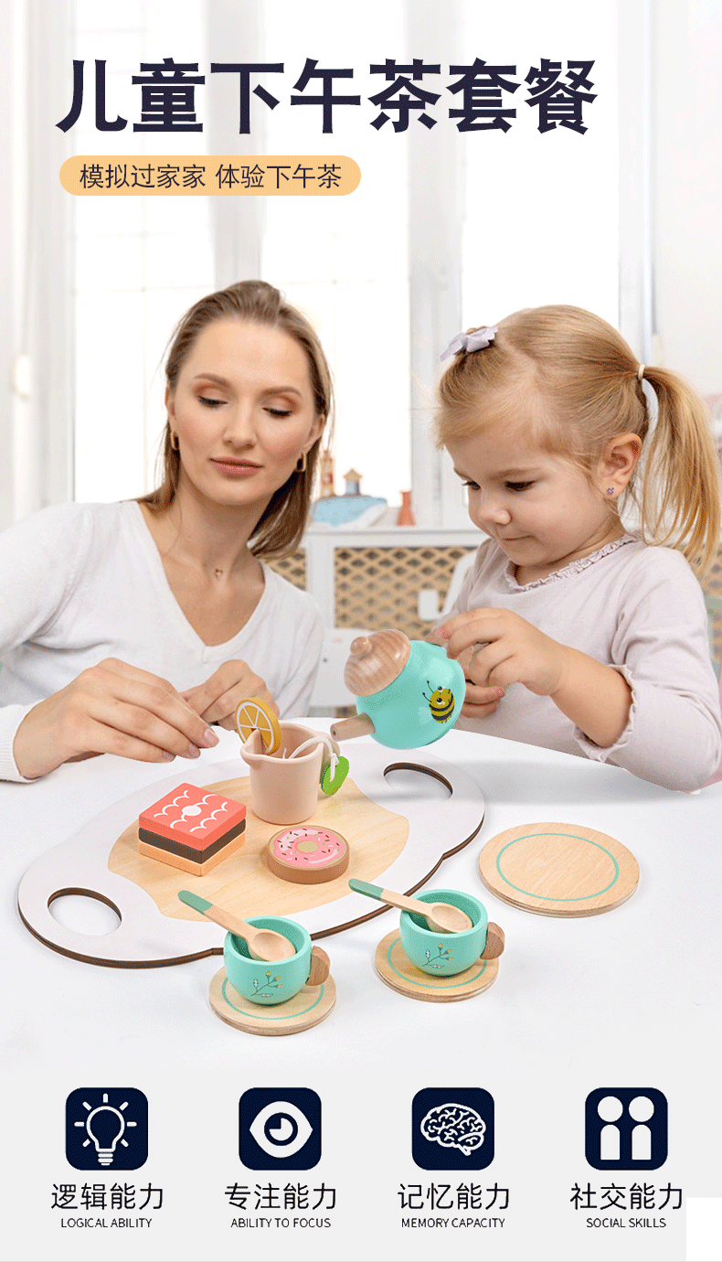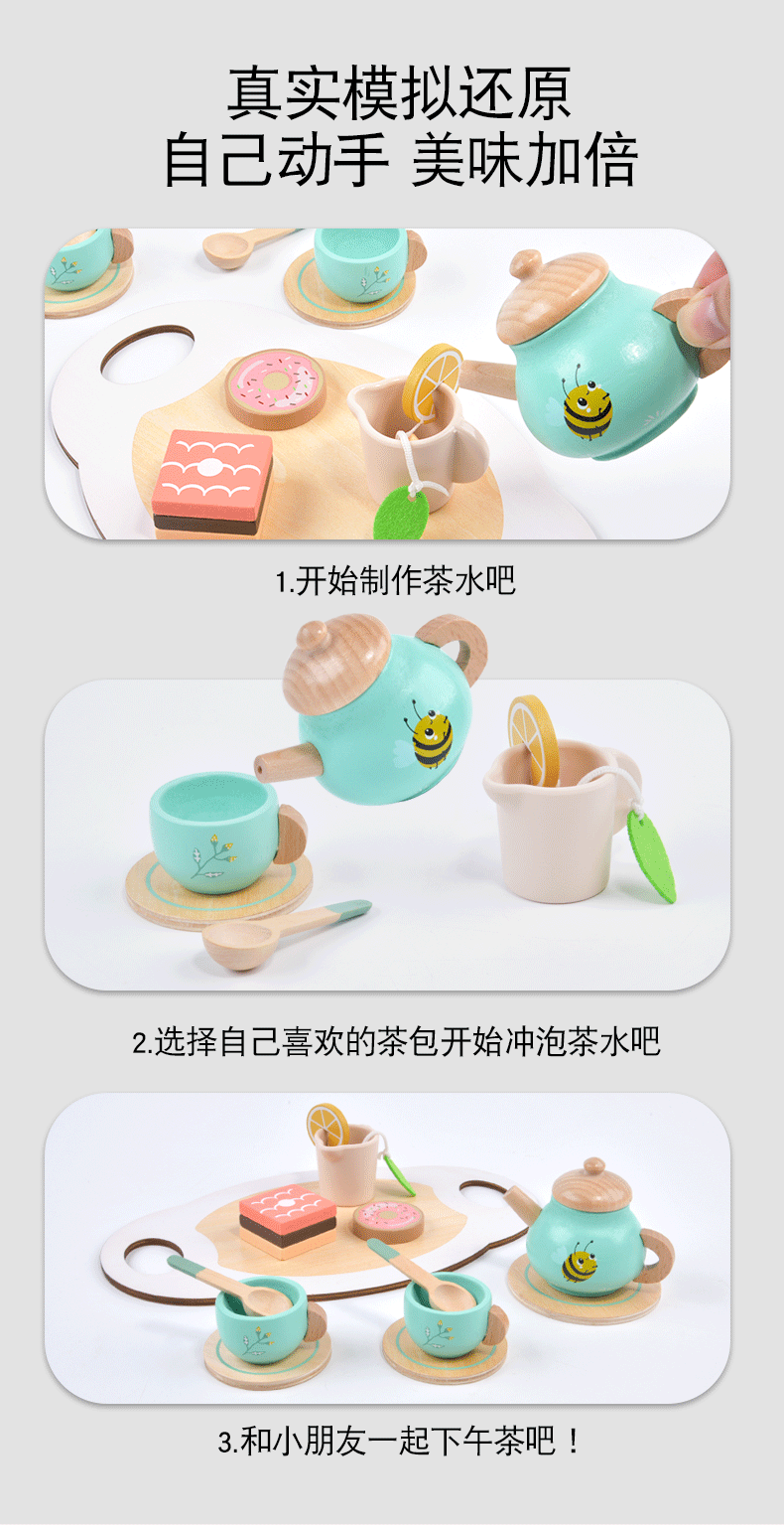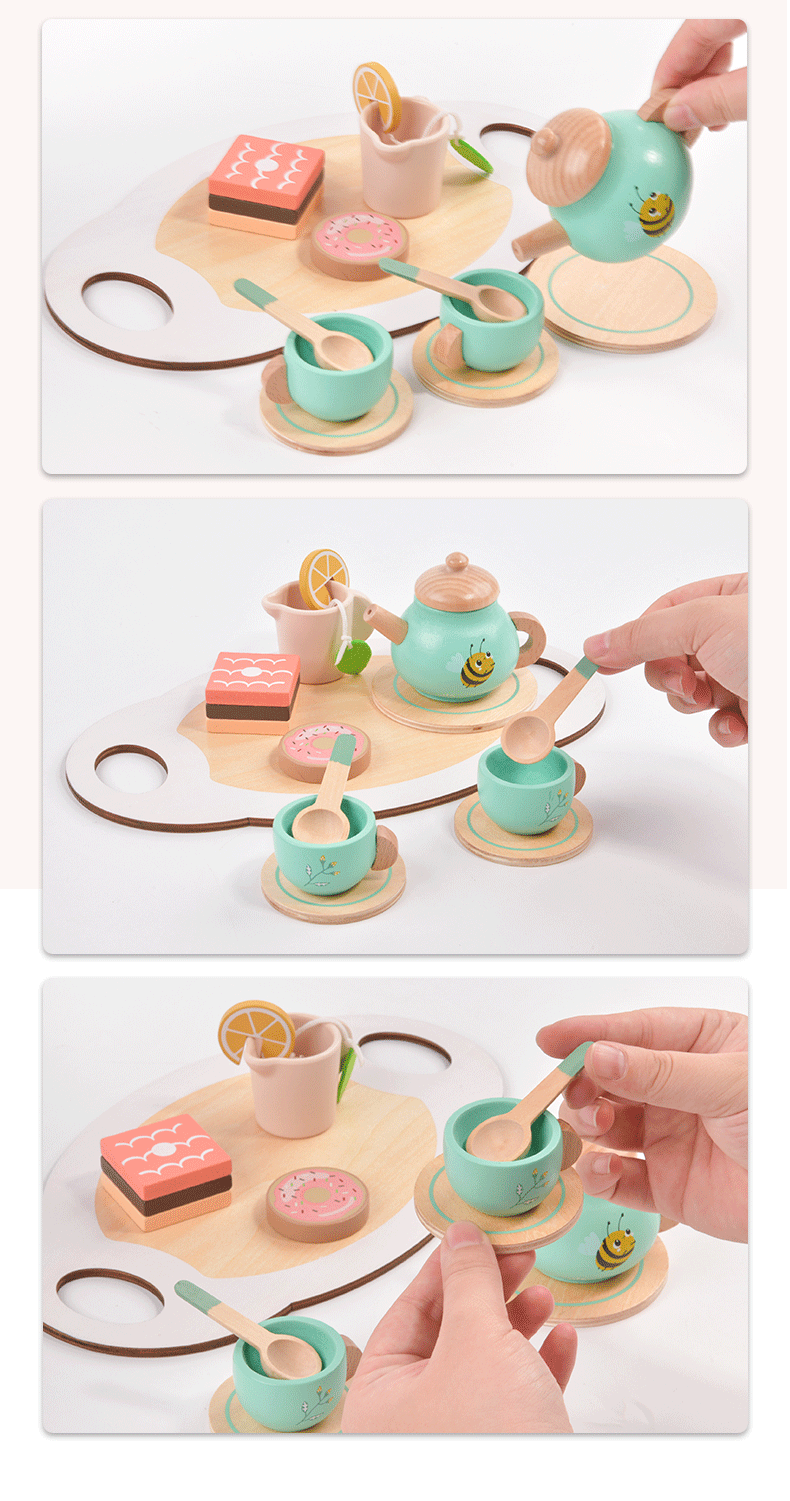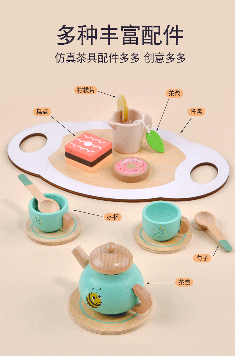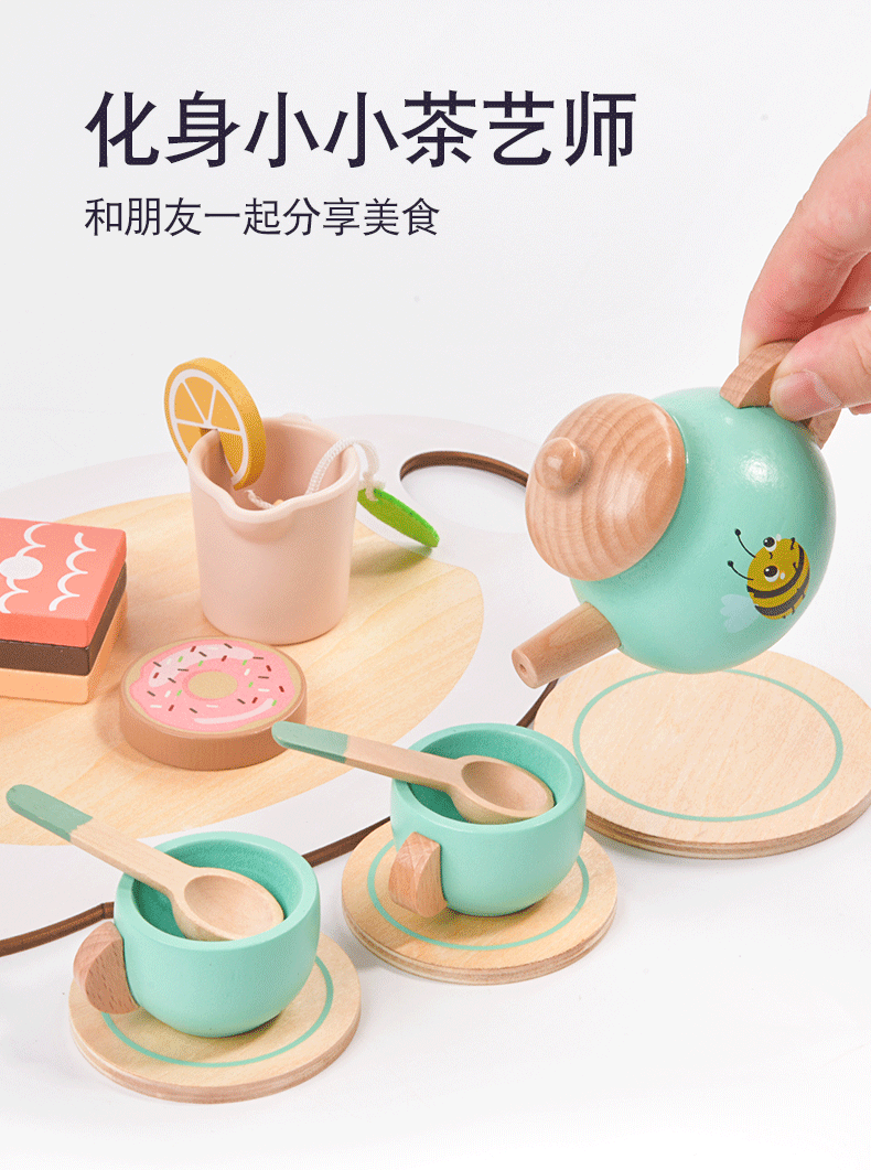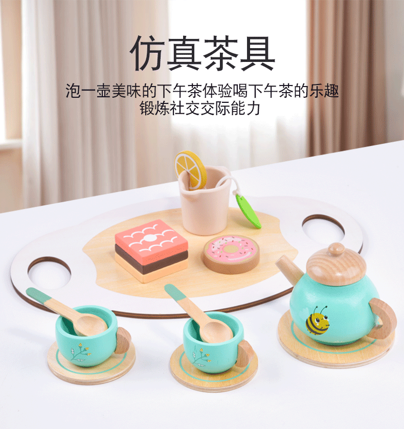 도매 나무 장난감 어린이 놀이 집 시리즈 애프터눈 티 장난감 다양한 풍부한 액세서리 시뮬레이션 차 세트스토어 가기