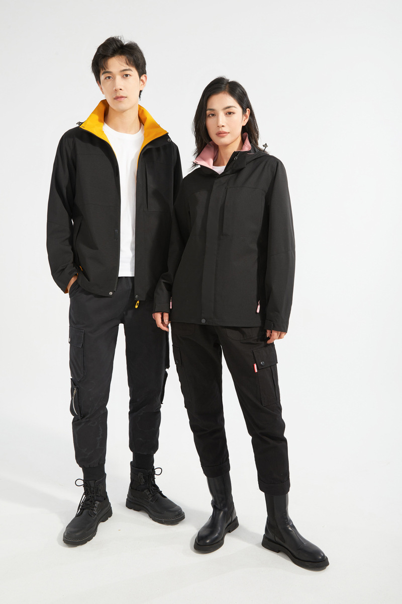 2024 봄과 가을 야외 남성과 여성 방풍 및 방수 등산 탈착식 재킷 후드 커플 재킷