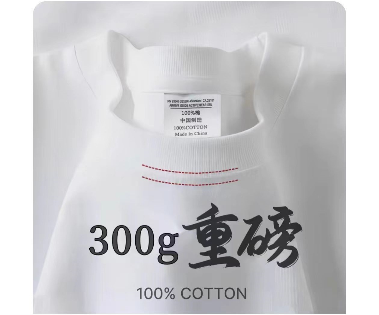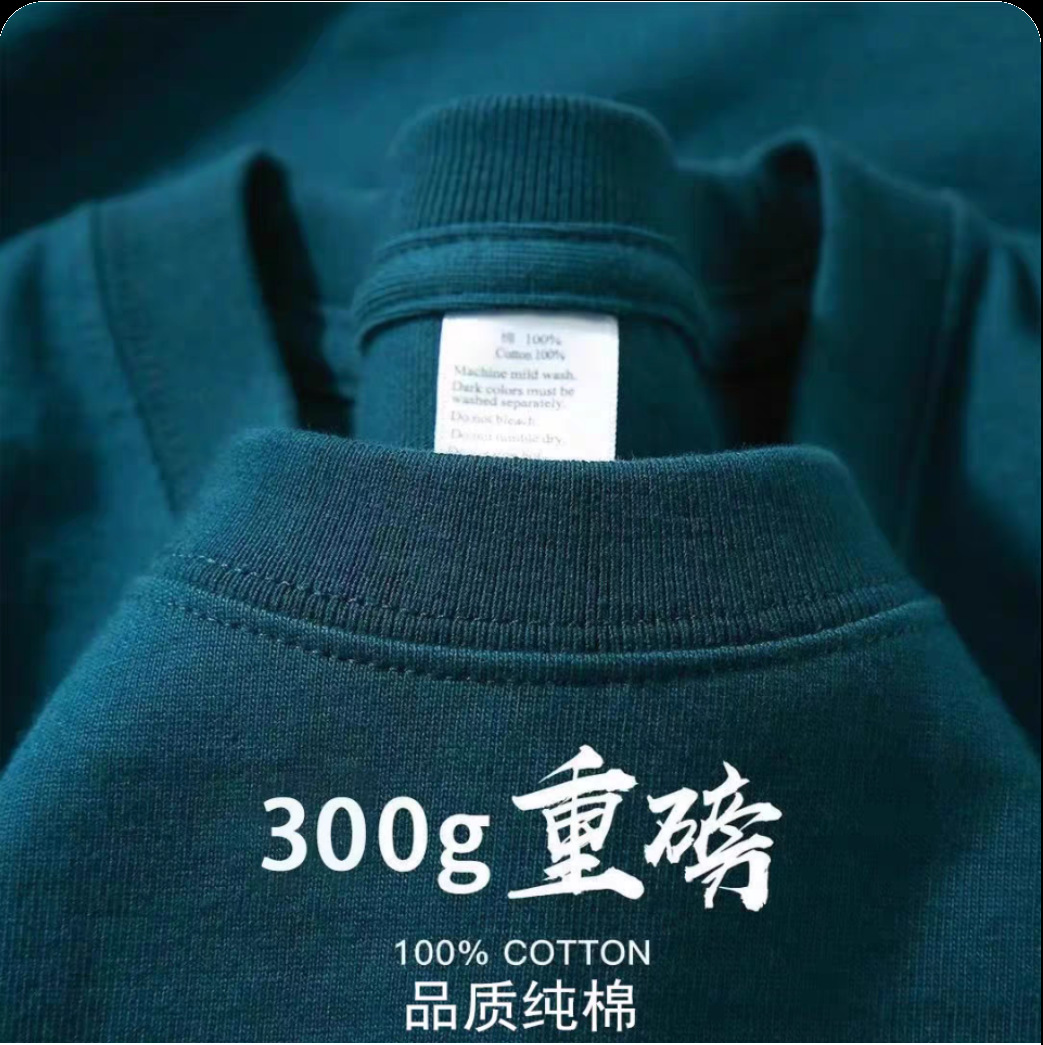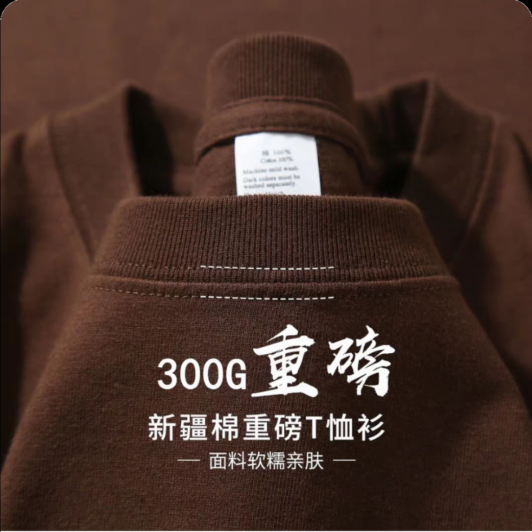 300G 순면 반팔 티셔츠 솔리드 컬러 라운드 넥 화이트 티셔츠 남성 캐주얼 탑 화이트 바닥 셔츠 남성 반팔스토어 가기