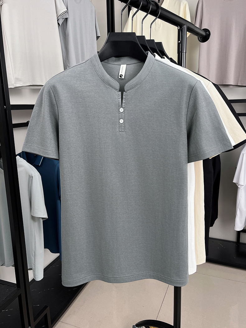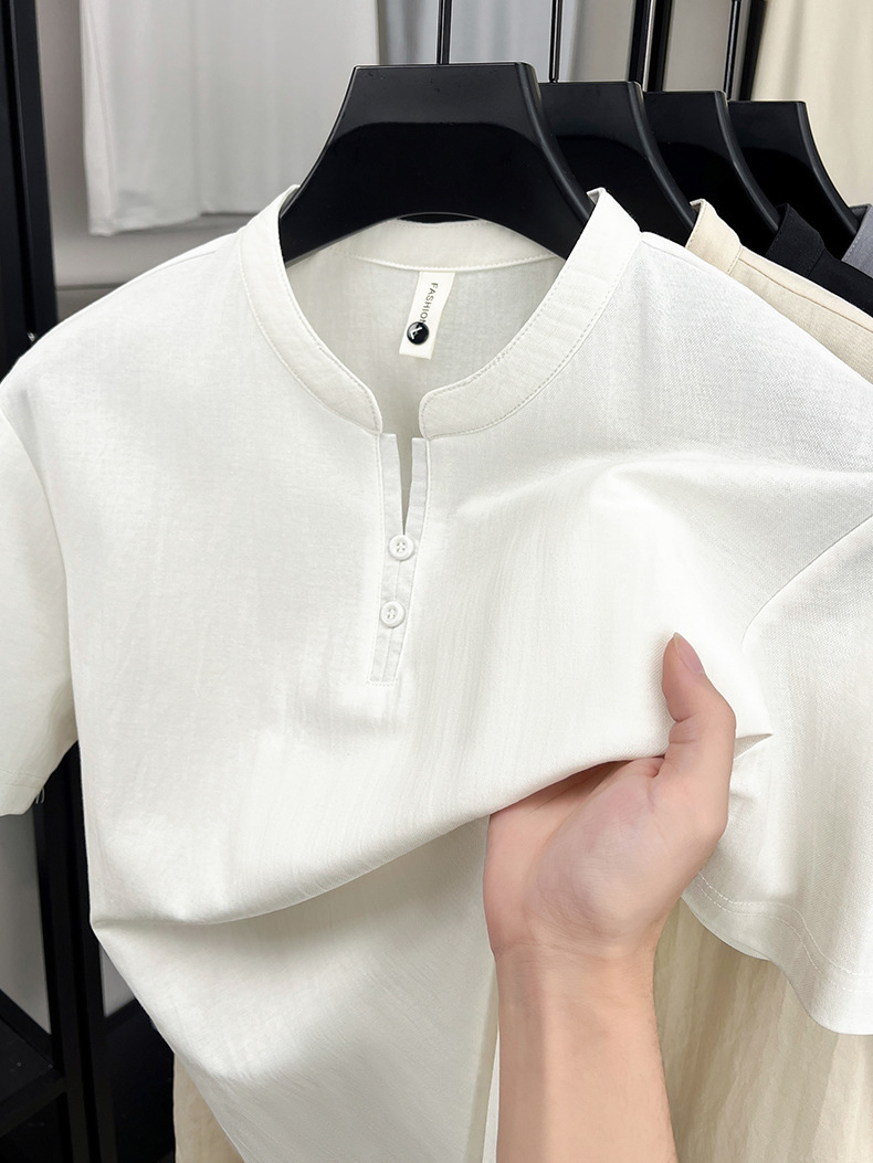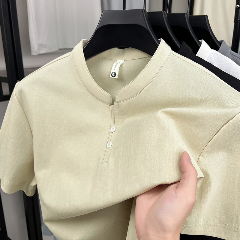 여름 새로운 중국 스타일 면화 땀 흡수 통기성 반팔 남성 티셔츠 고품질 캐주얼 스탠드 칼라 남성 폴로 셔츠스토어 가기