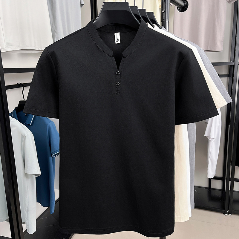 夏季新款中国风棉质吸汗透气短袖男士t恤高品质休闲立领男polo衫