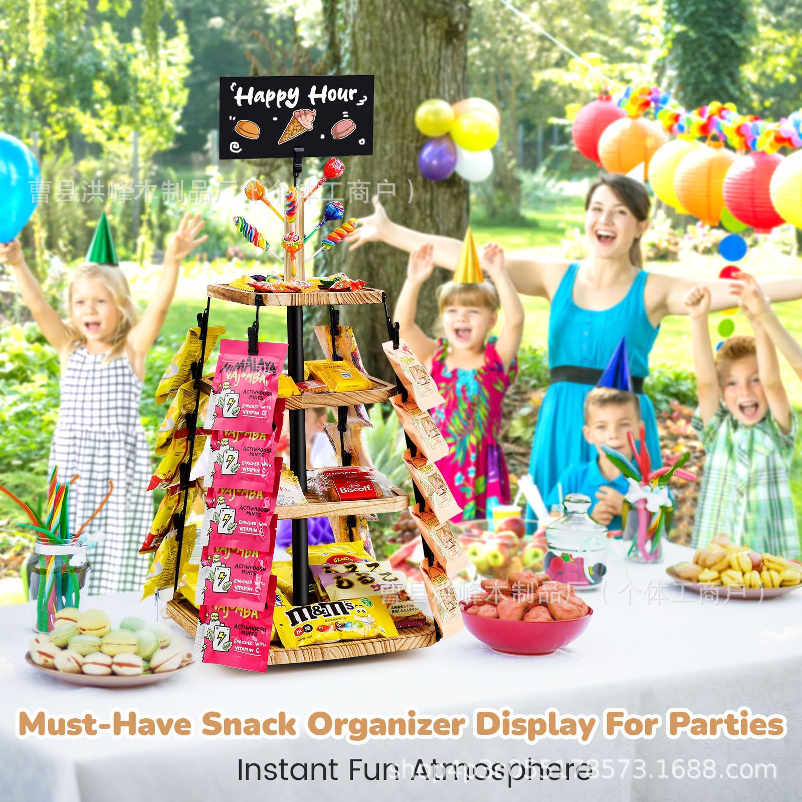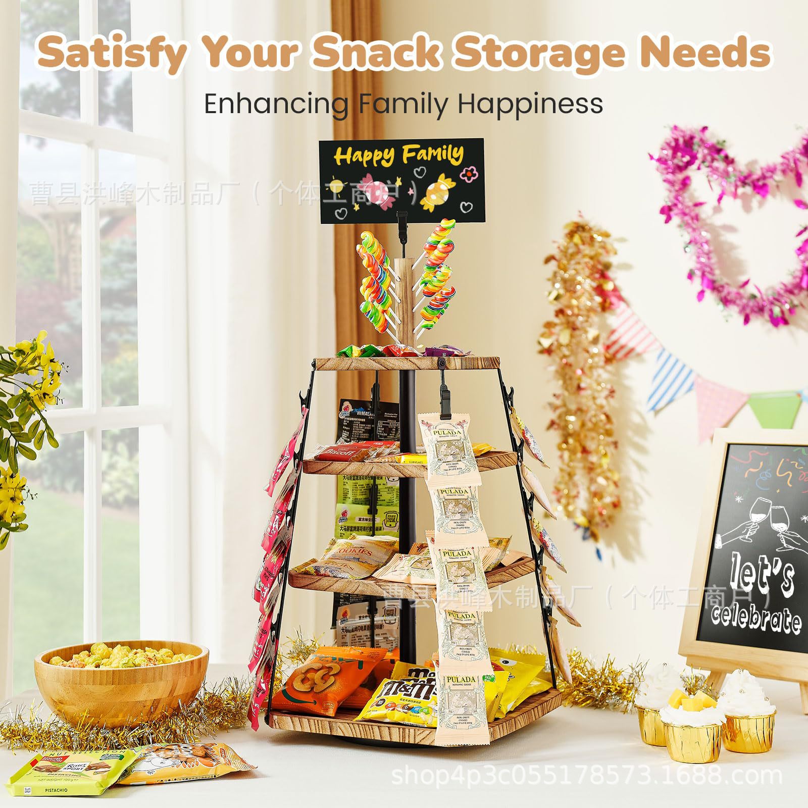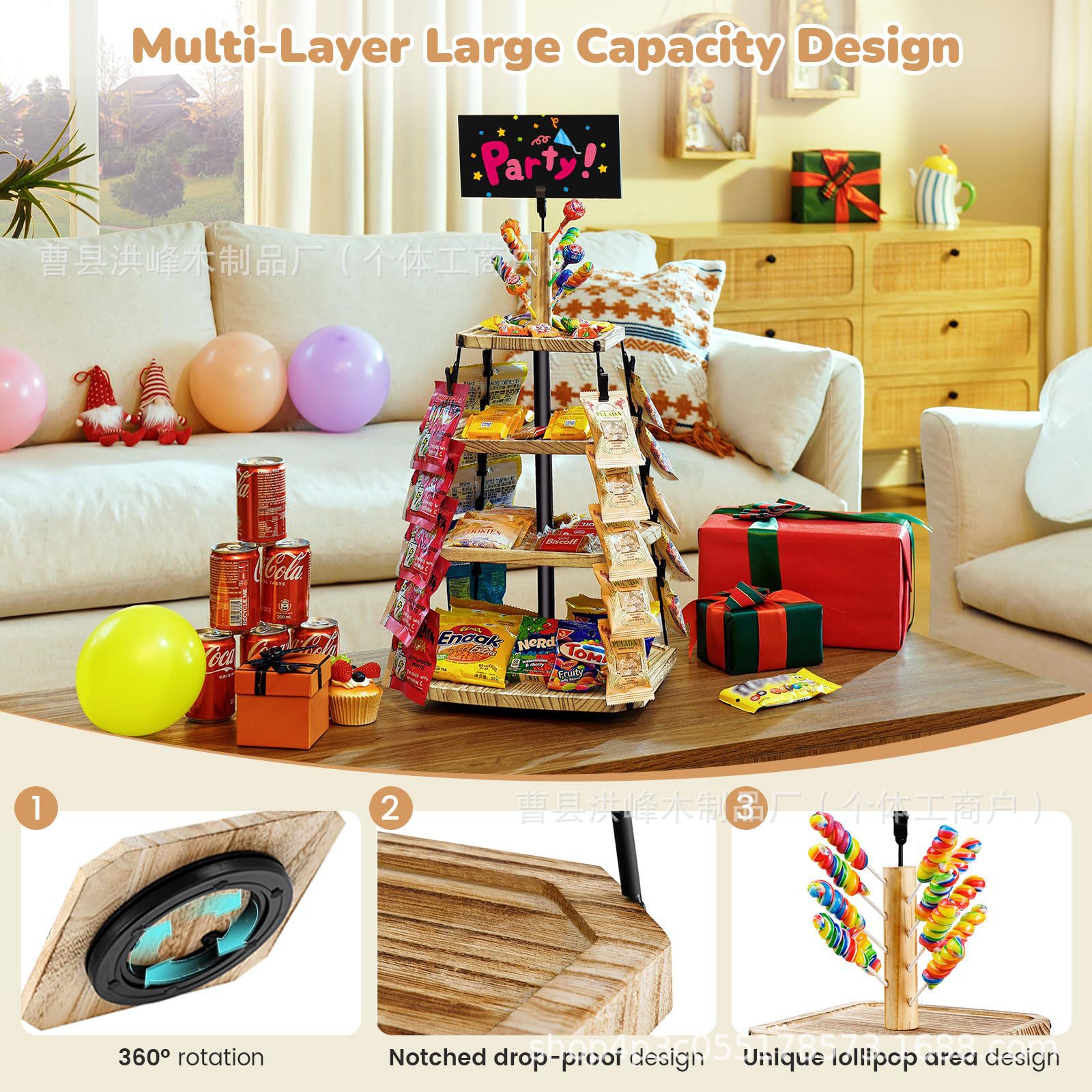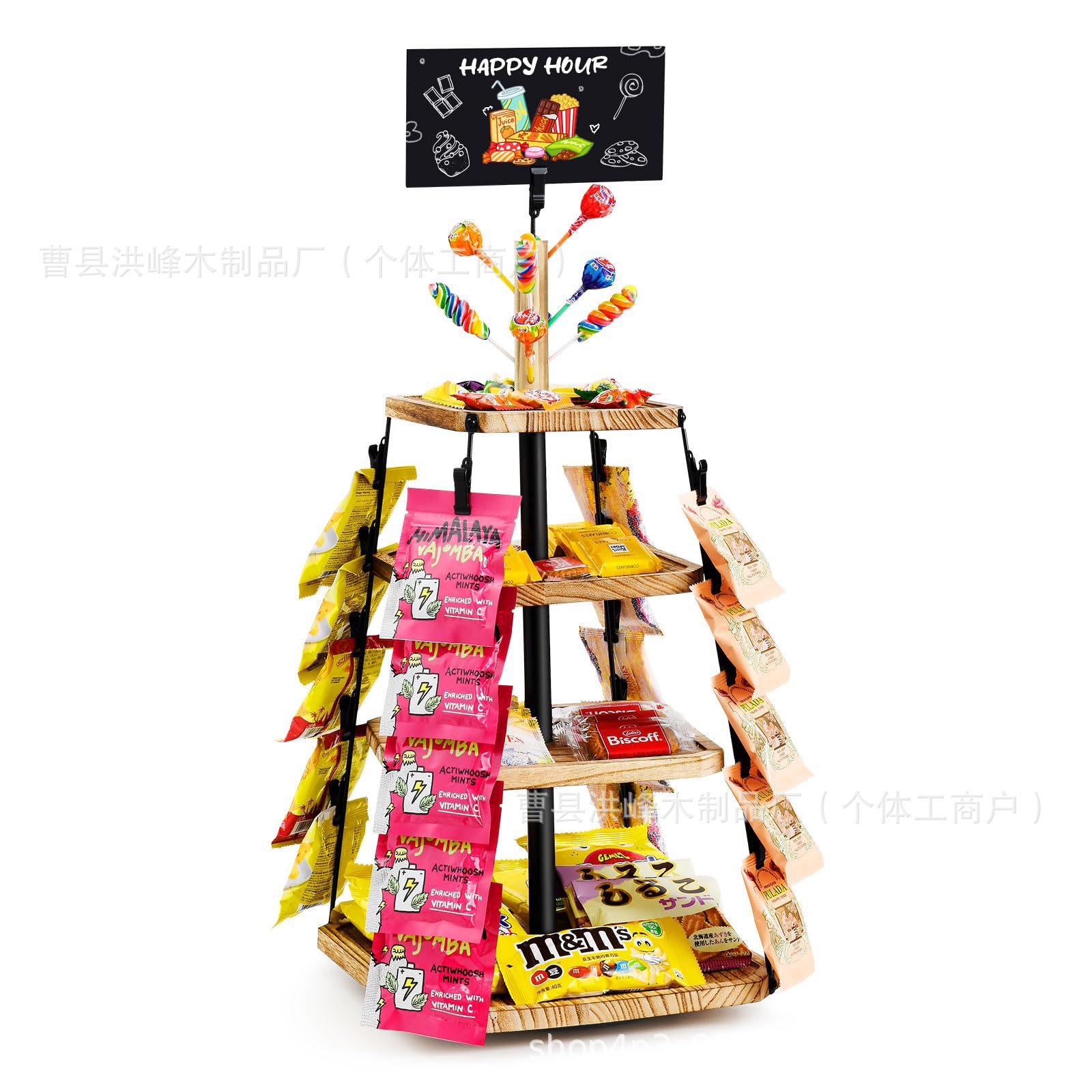회전식 나무 스낵 랙 데스크탑 나무 스낵 디스플레이 랙 3층 나무 스낵 보관 랙