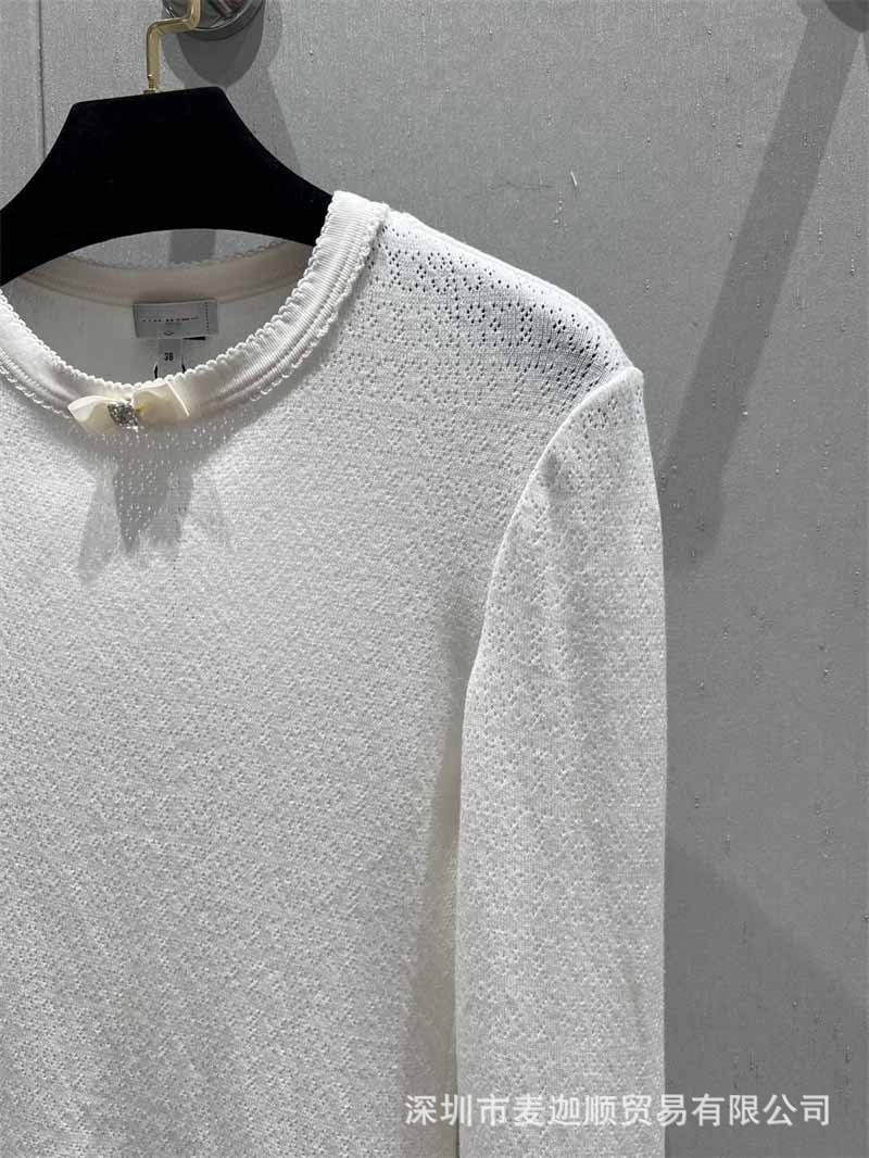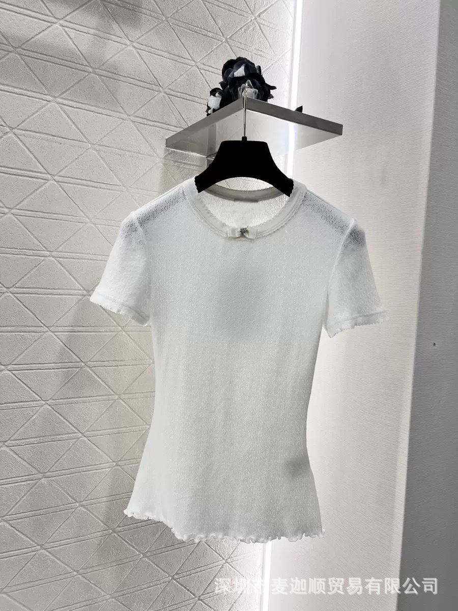 심천 Nanyou 고급 여성 의류 25 여름 새로운 작은 향기로운 활 순수 코튼 바닥 셔츠 여성 슬림 피트를위한 반팔 티셔츠