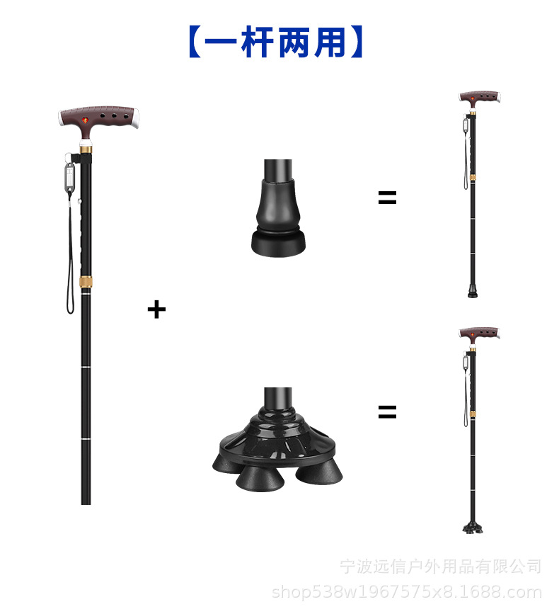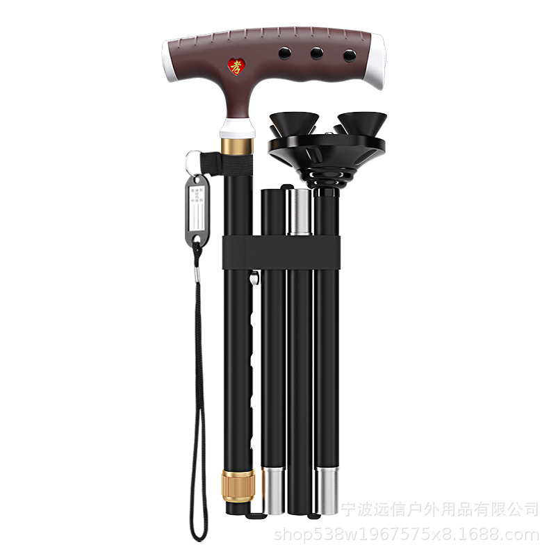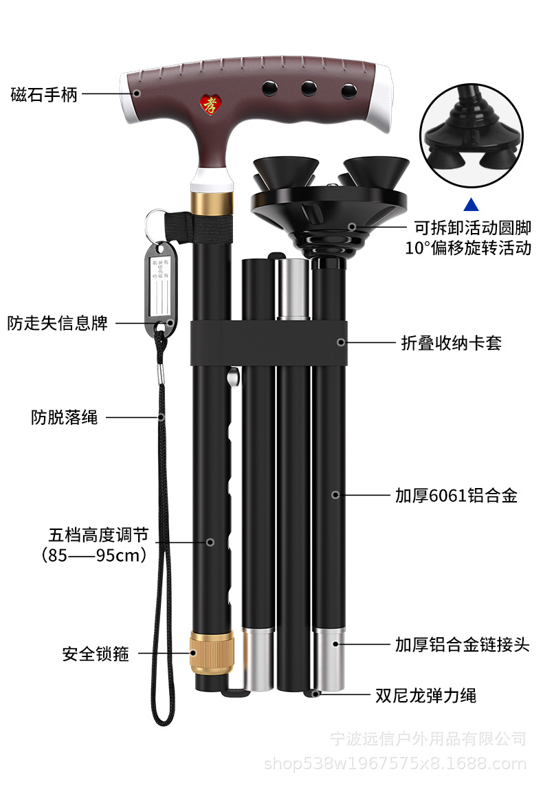 노인을 위한 알루미늄 합금 지팡이, 고무 마그넷, 단일 회전, 4개의 다리, 2개의 다용도 지팡이, 5개의 섹션, 접이식 및 휴대 가능스토어 가기