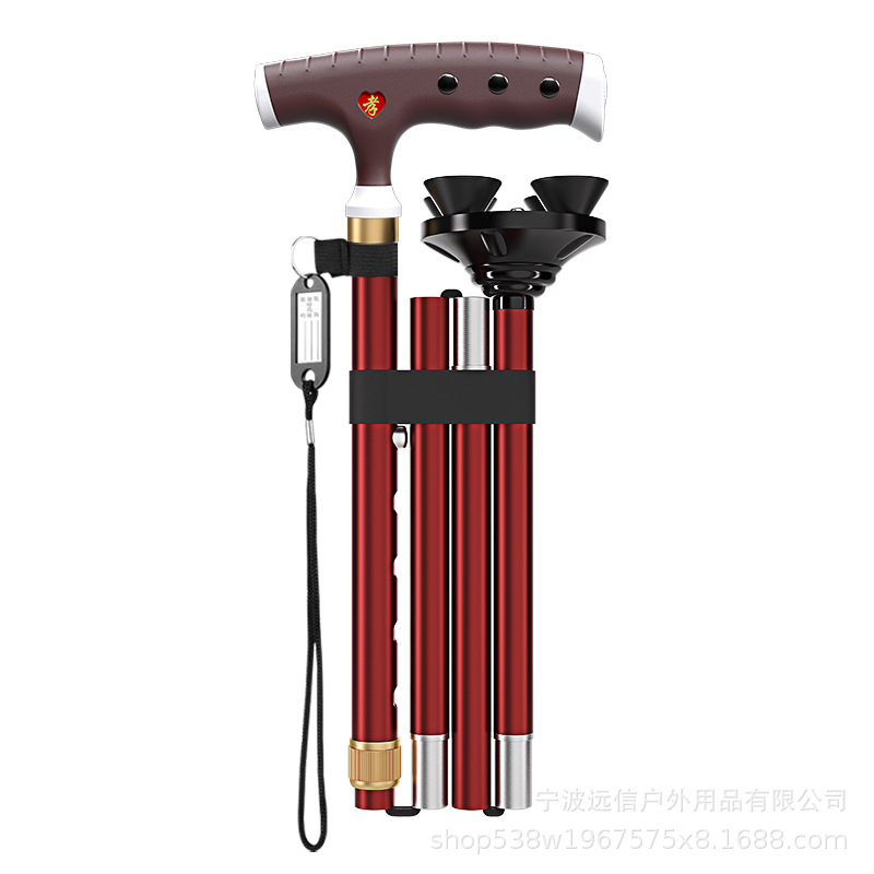 노인을 위한 알루미늄 합금 지팡이, 고무 마그넷, 단일 회전, 4개의 다리, 2개의 다용도 지팡이, 5개의 섹션, 접이식 및 휴대 가능