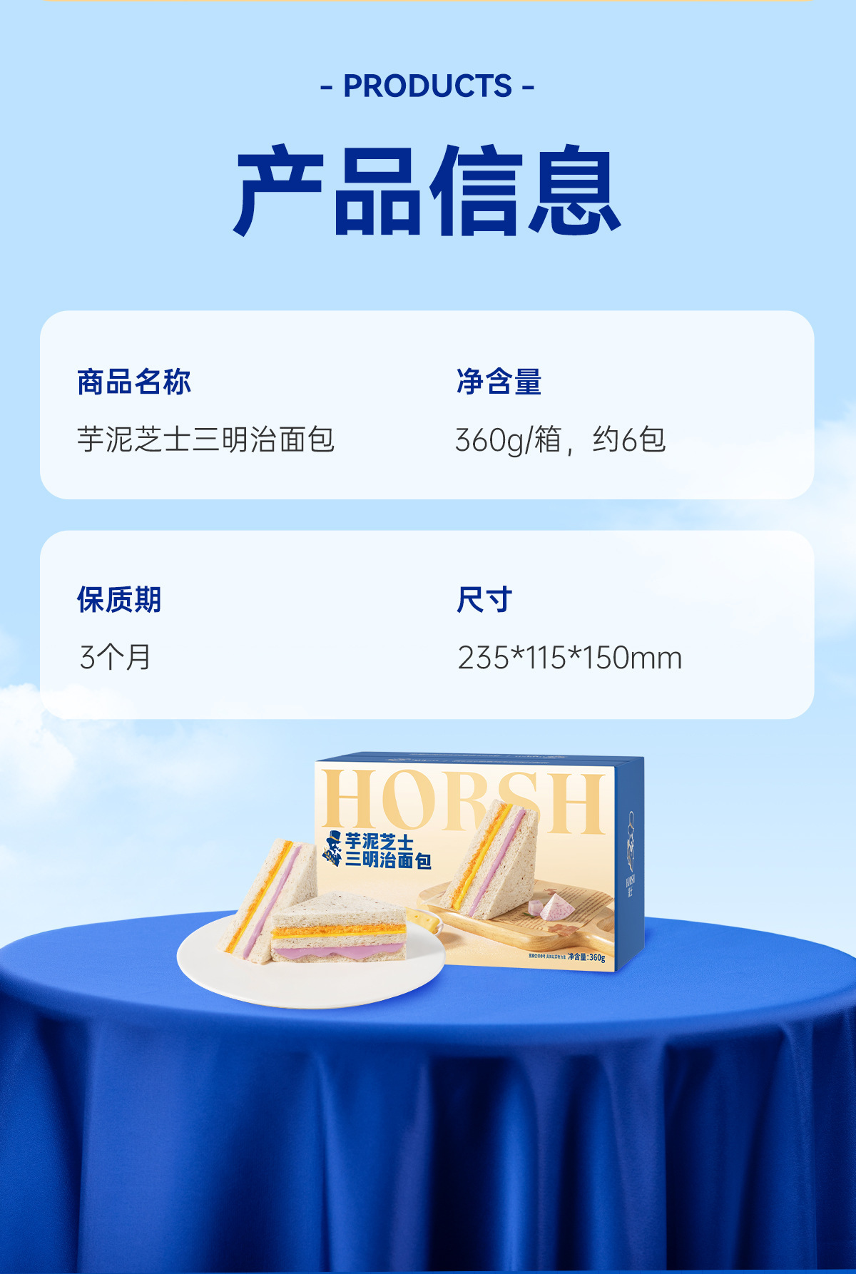 Haoshi 치즈 타로 샌드위치 토스트 빵 360g 건강하고 맛있는 아침 식사 스낵 가방 전체 상자