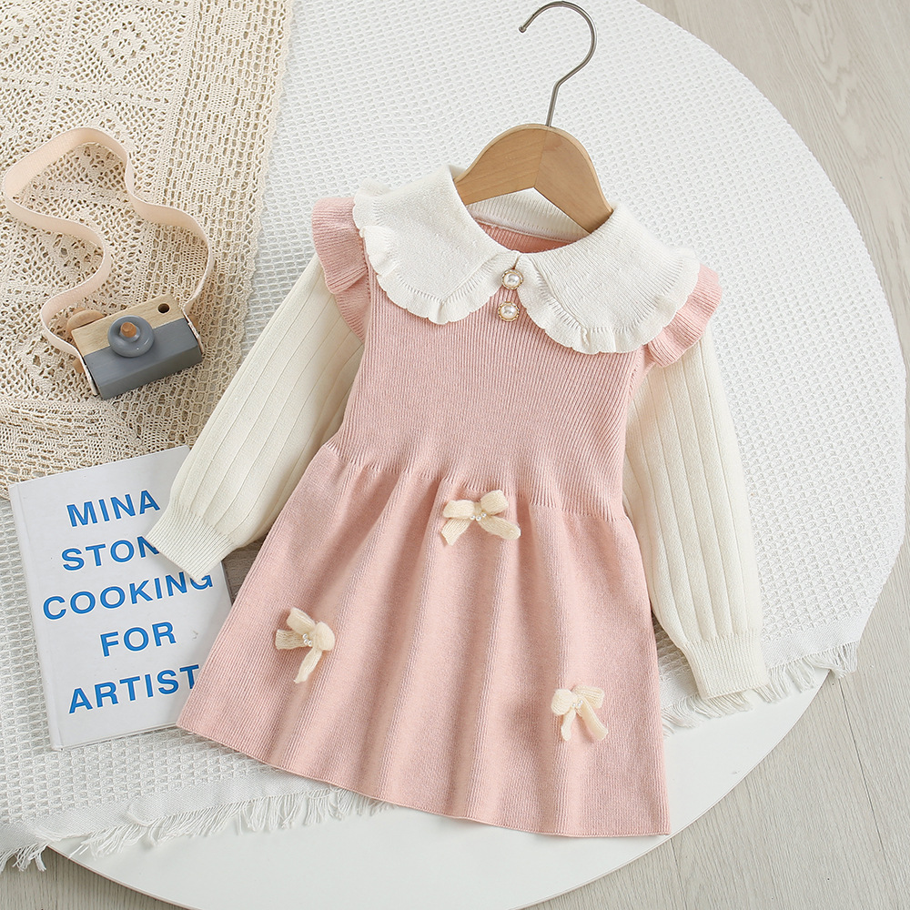 여자의 새로운 봄, 가을 스커트 인형 칼라 귀여운 공주 스커트 긴 소매 활 달콤한 스웨터 드레스