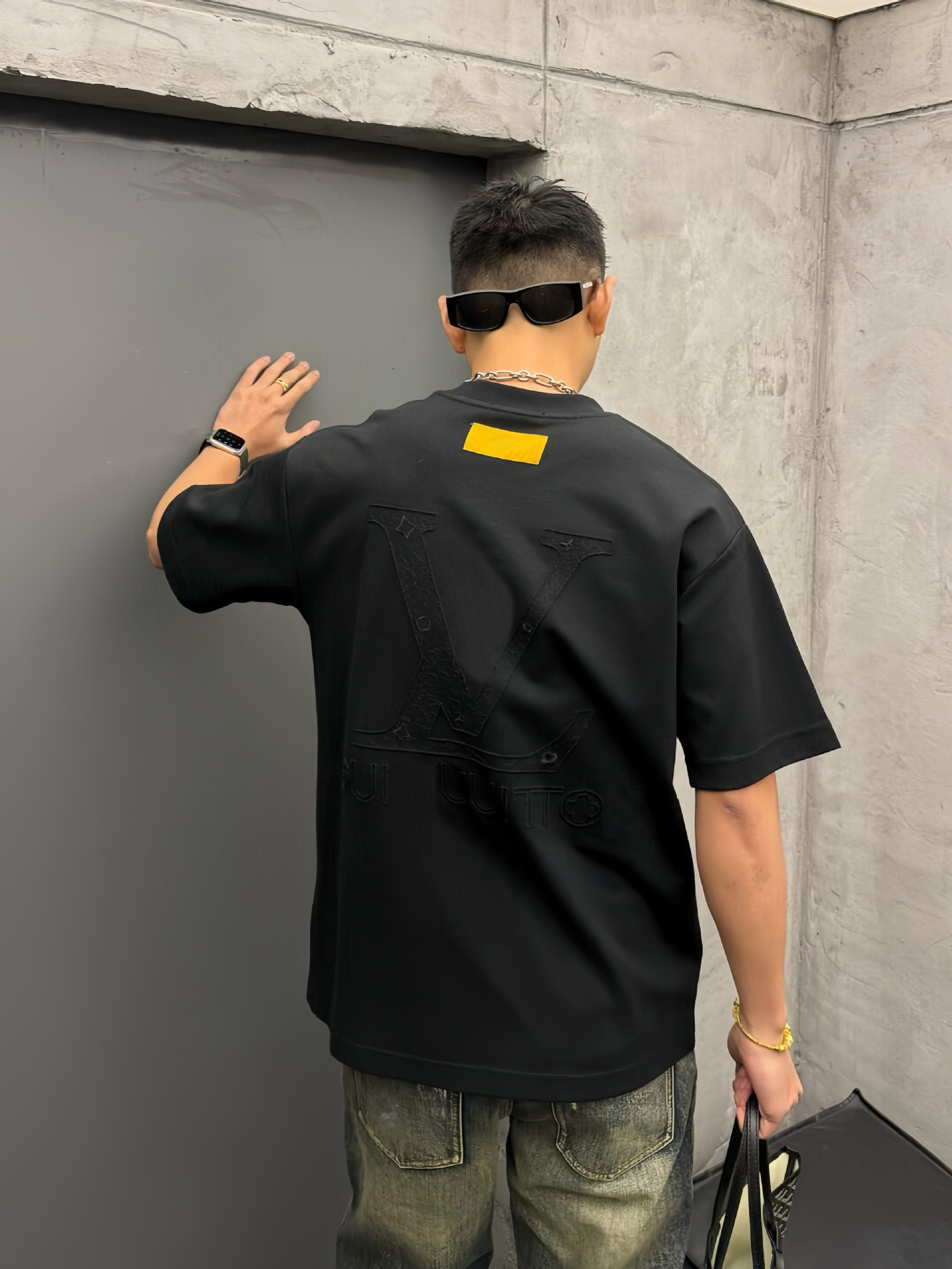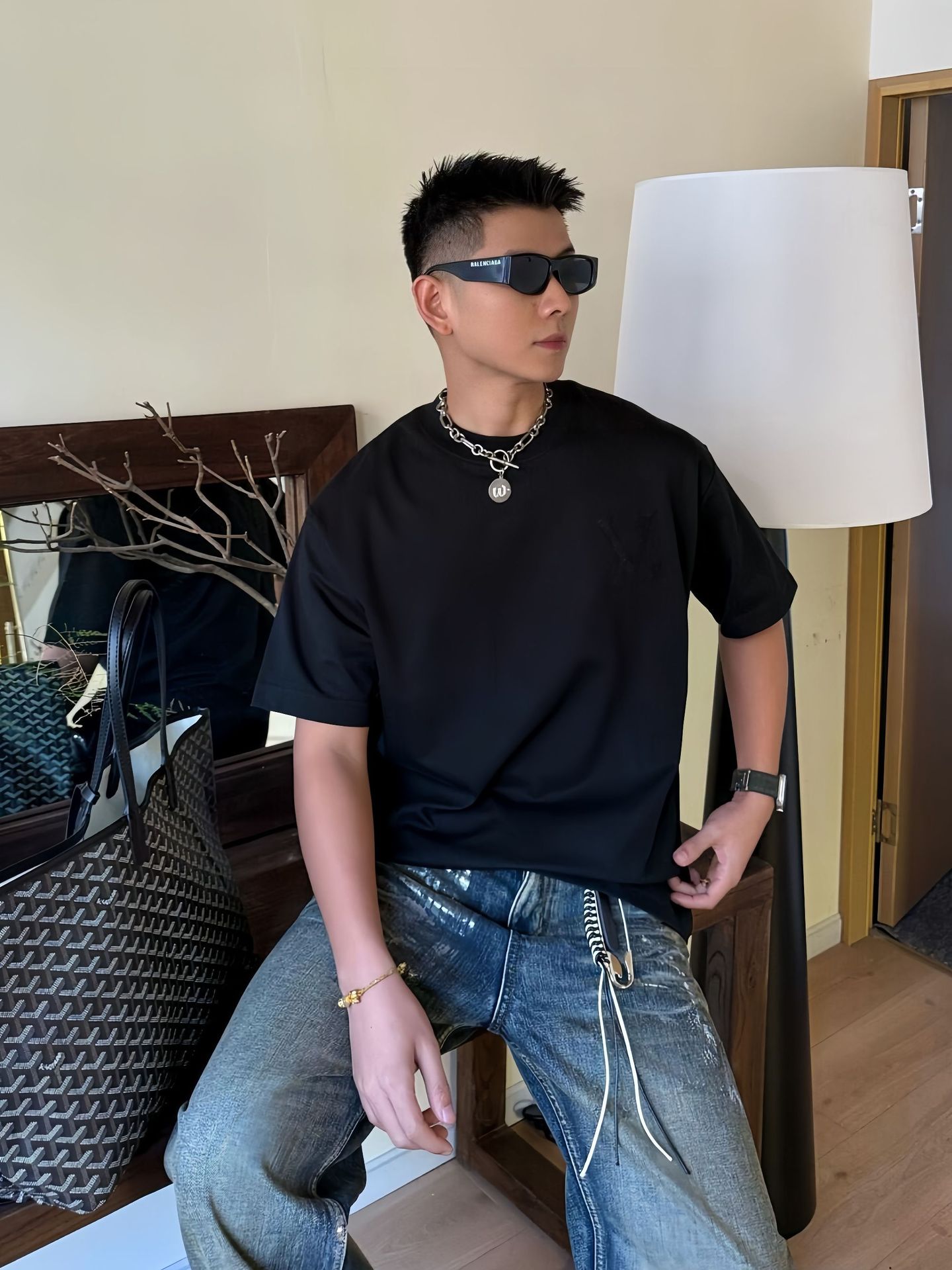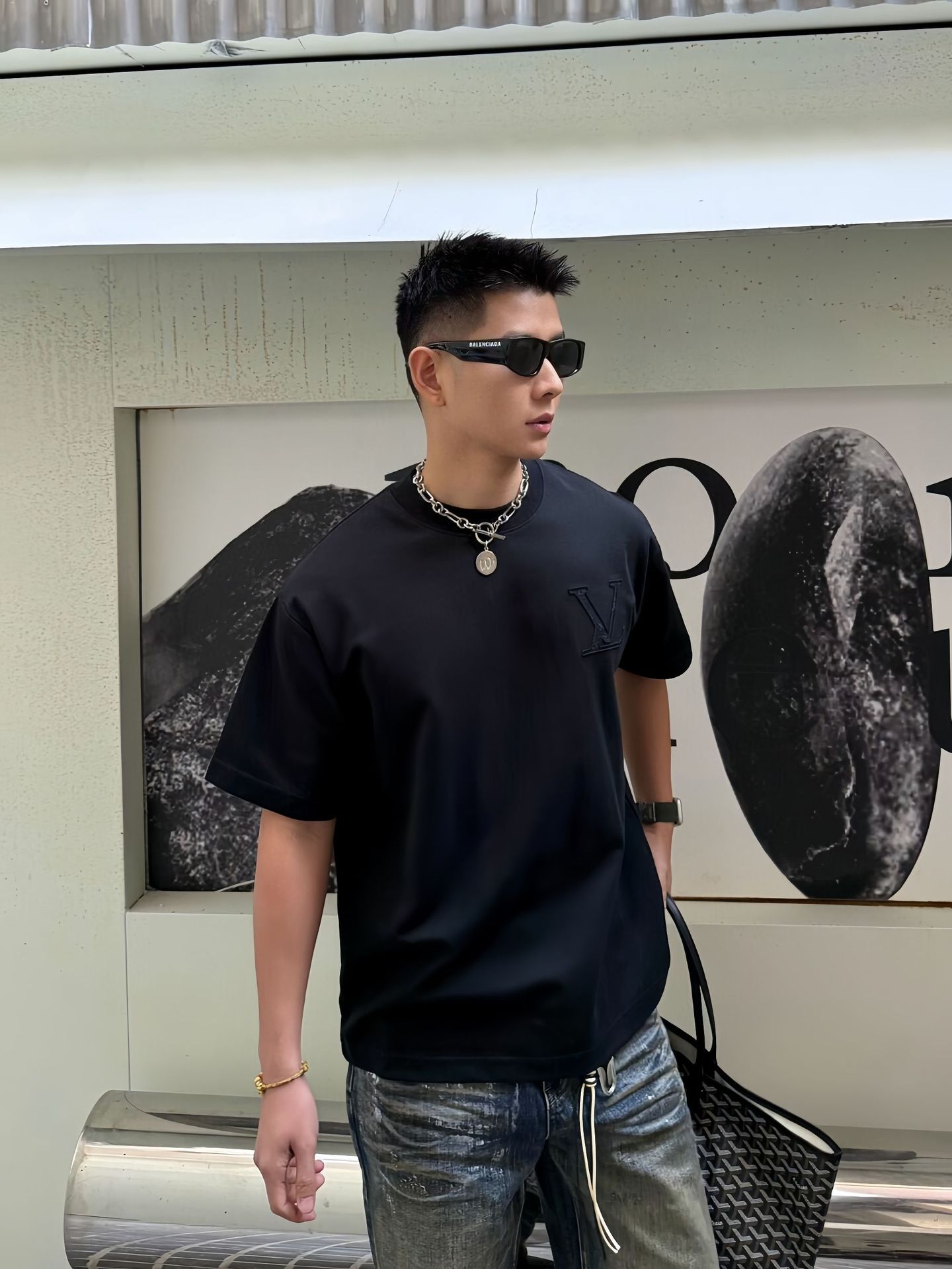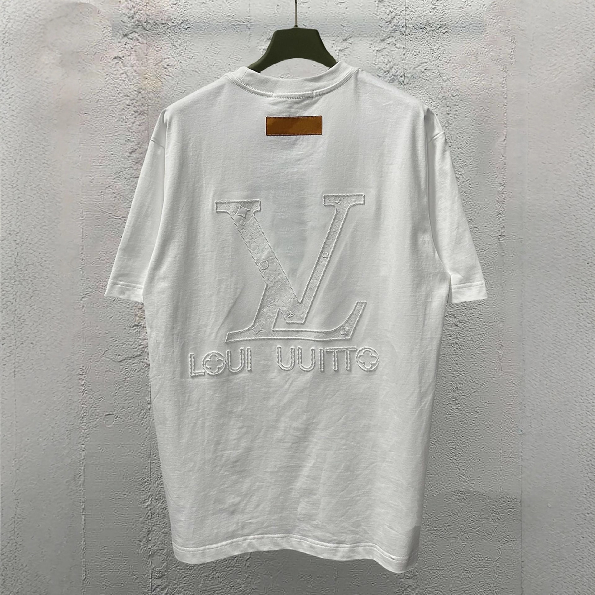 L 브랜드 남성용 반팔 티셔츠, 빈티지 자수 레터링 기본 티셔츠, 패션 브랜드 루즈핏 순면 남성 티셔츠