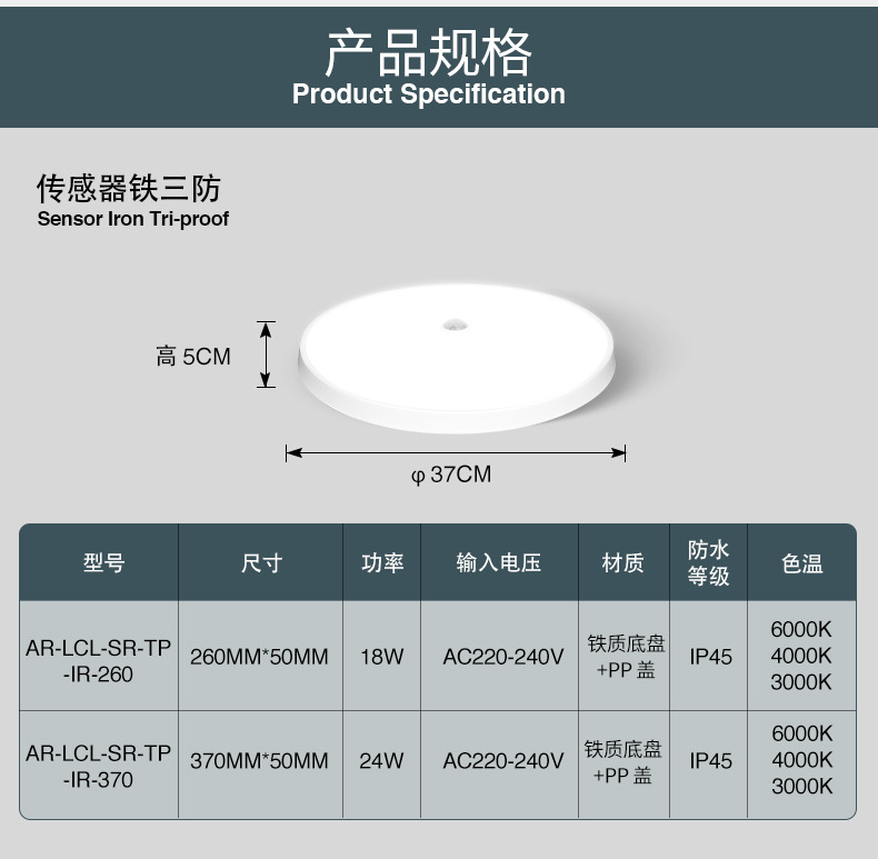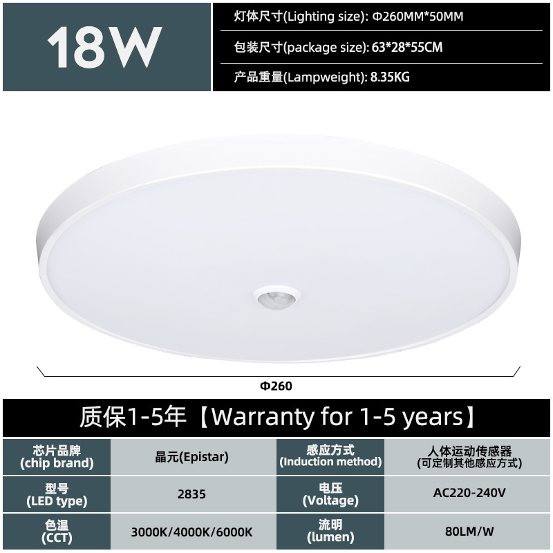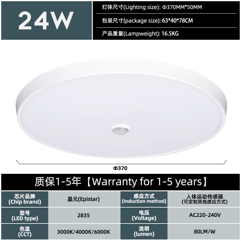 3중 센서 LED 천장등, 출입시 자동 점등, 레이더 인체센서등, 차고 천장등
