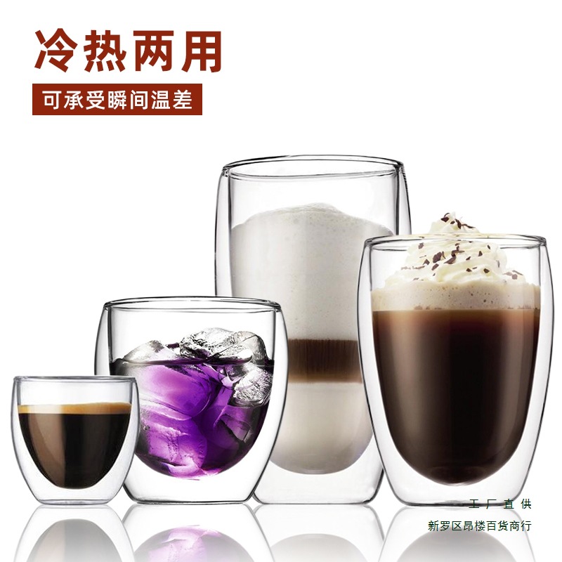 이중층 커피 컵 내열 유리 투명 라떼 교수형 귀 커피 모카 에스프레소 컵 가정용 화상 방지스토어 가기