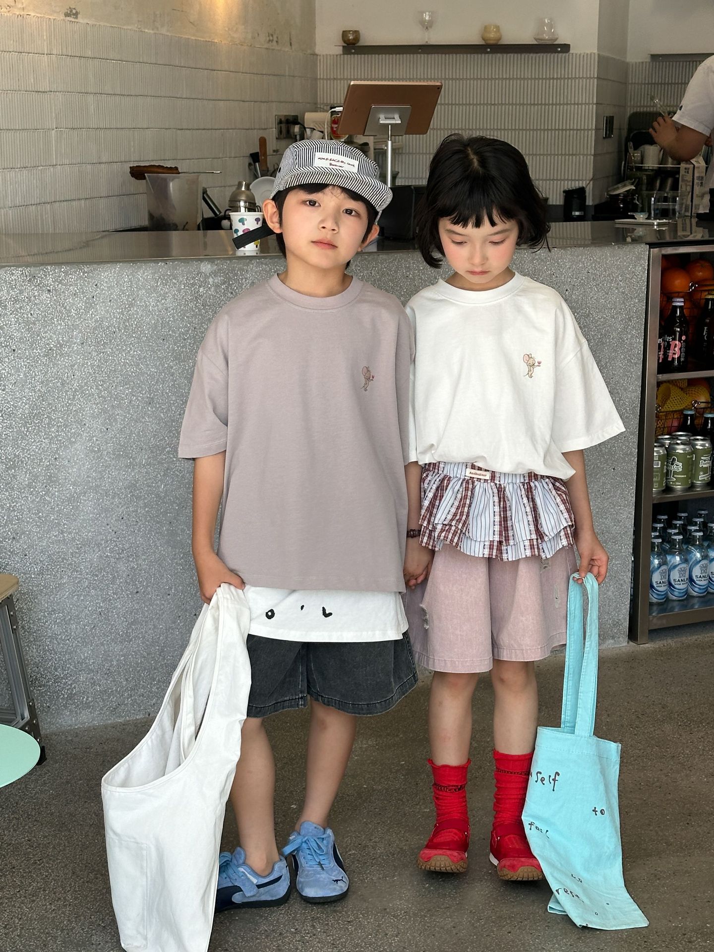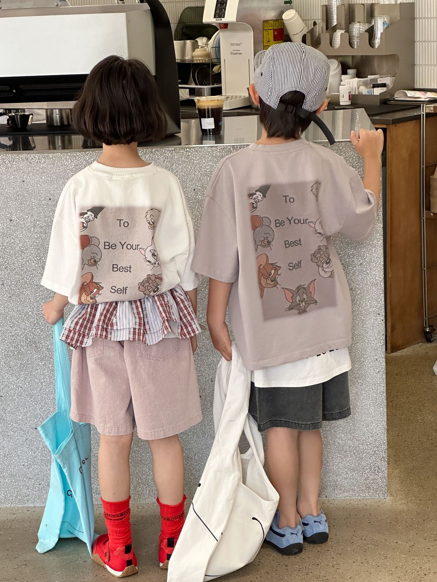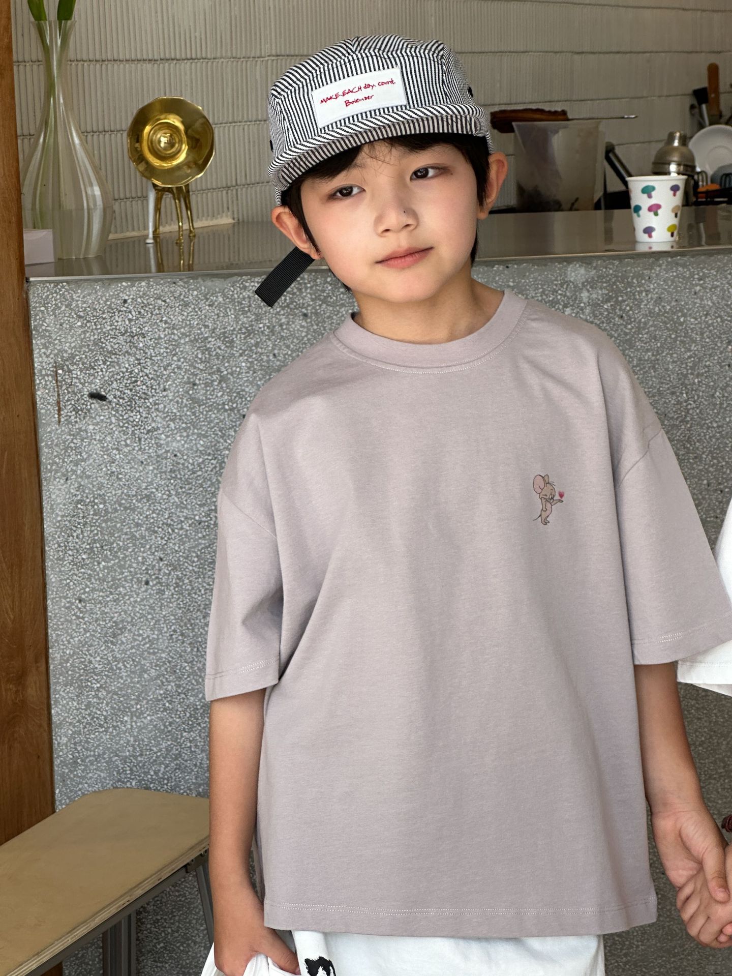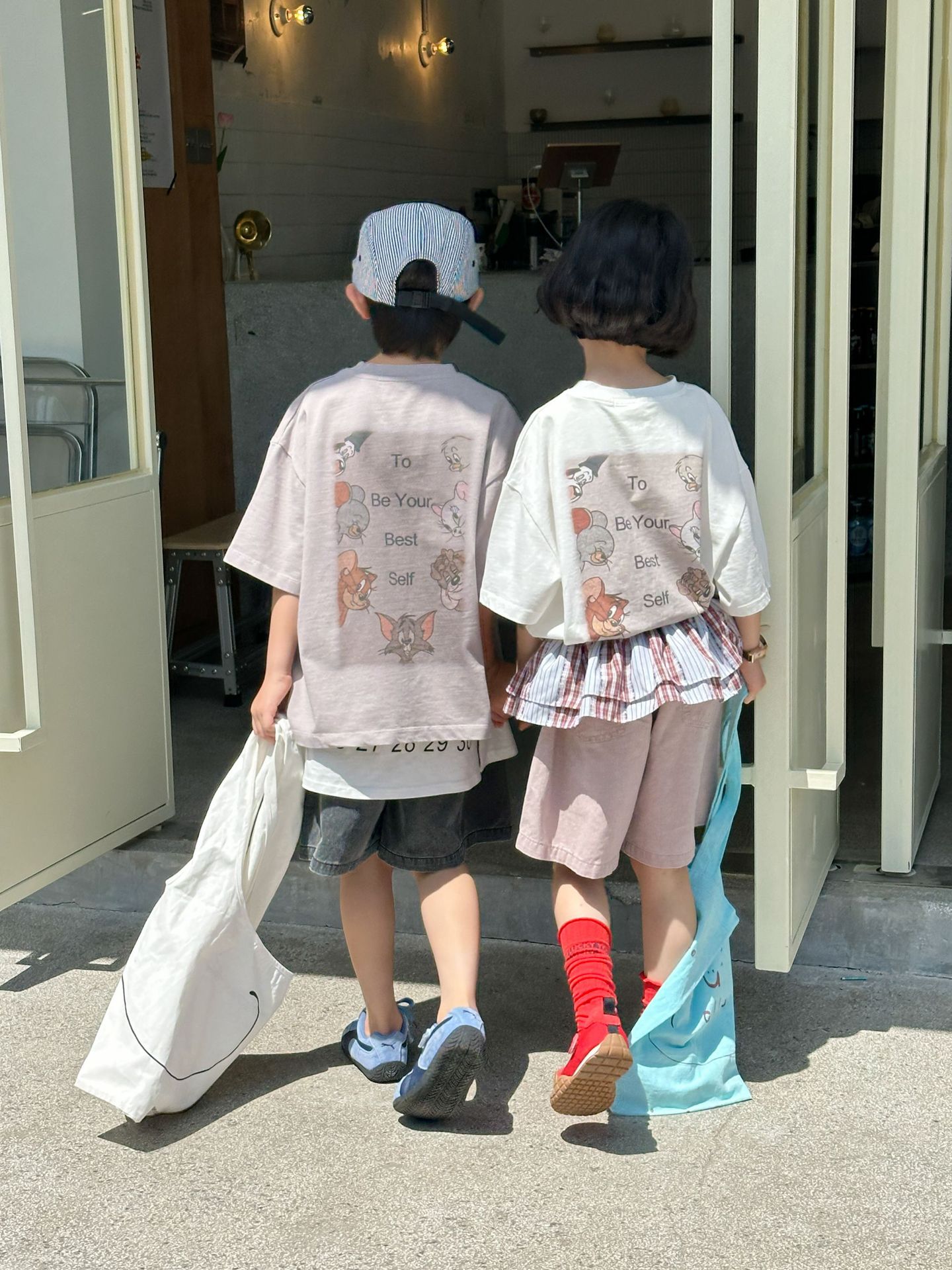 2025 새로운 여름 한국 스타일 어린이 순면 뒷면 프린트 반팔 소년과 소녀 캐주얼 루즈 다용도 티셔츠 유행스토어 가기