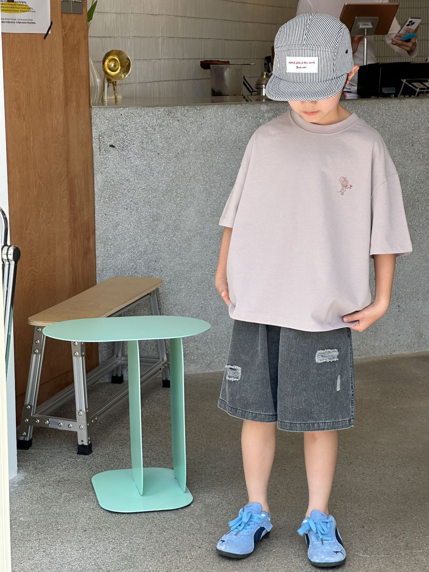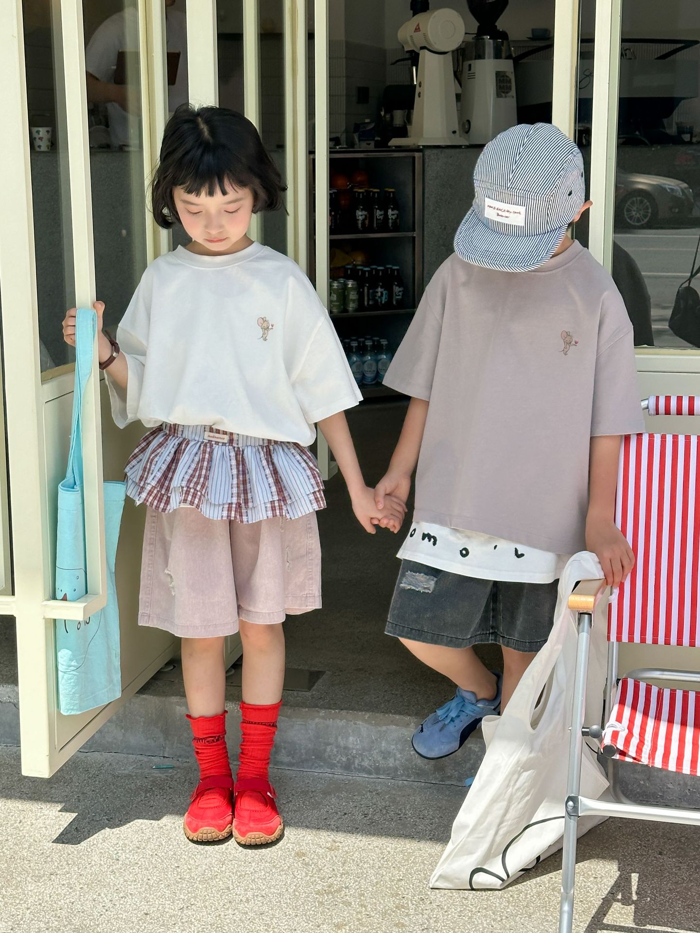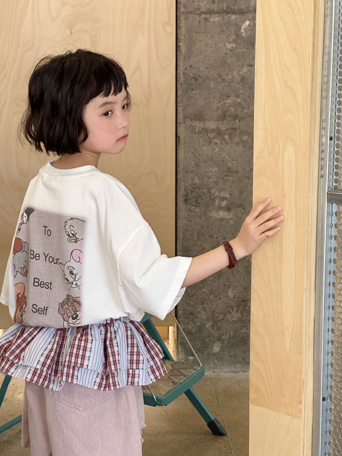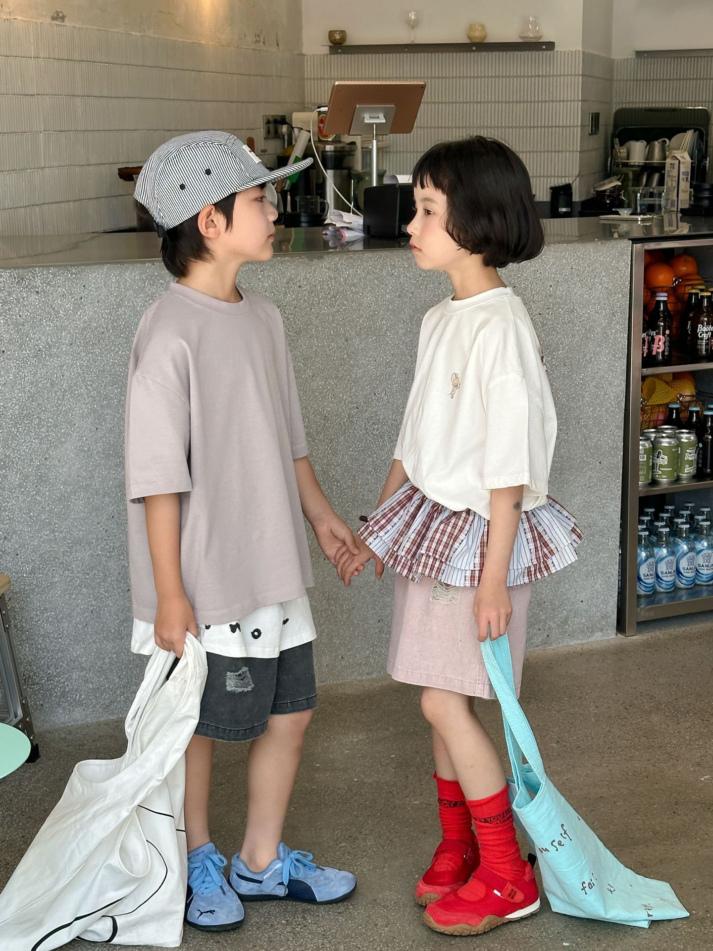 2025 새로운 여름 한국 스타일 어린이 순면 뒷면 프린트 반팔 소년과 소녀 캐주얼 루즈 다용도 티셔츠 유행스토어 가기