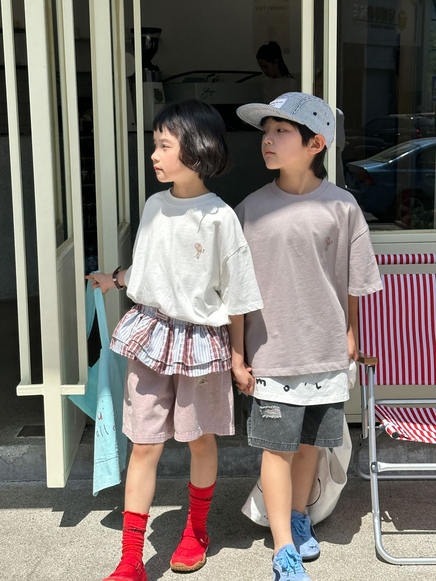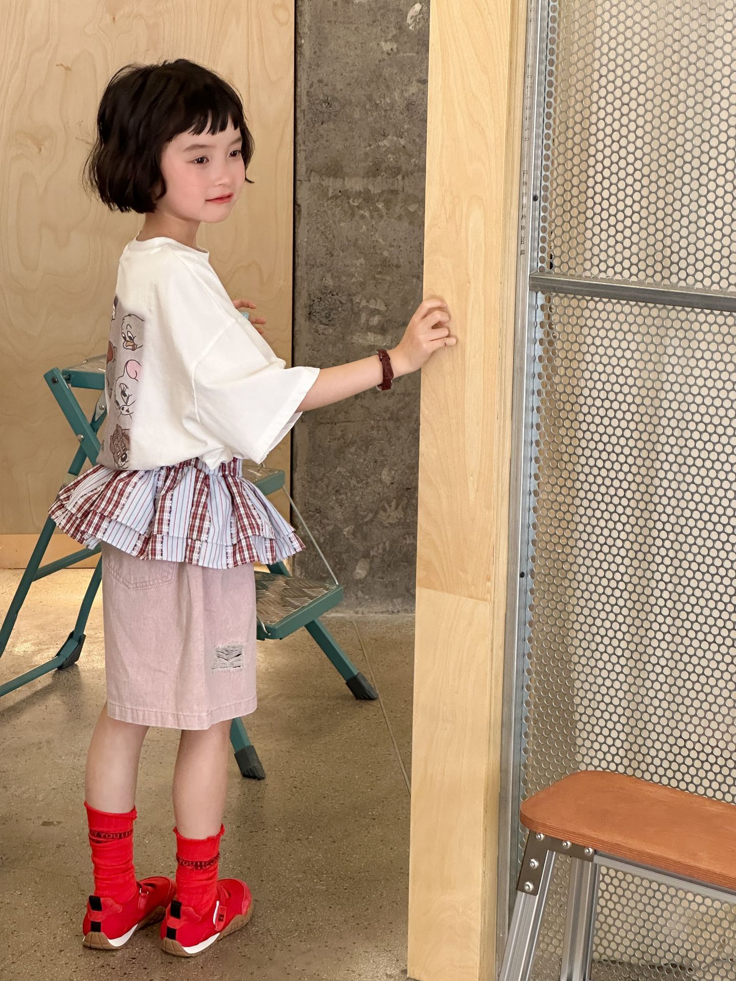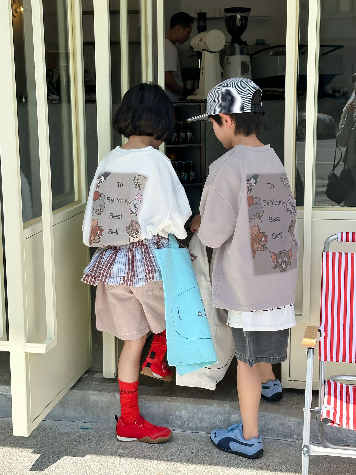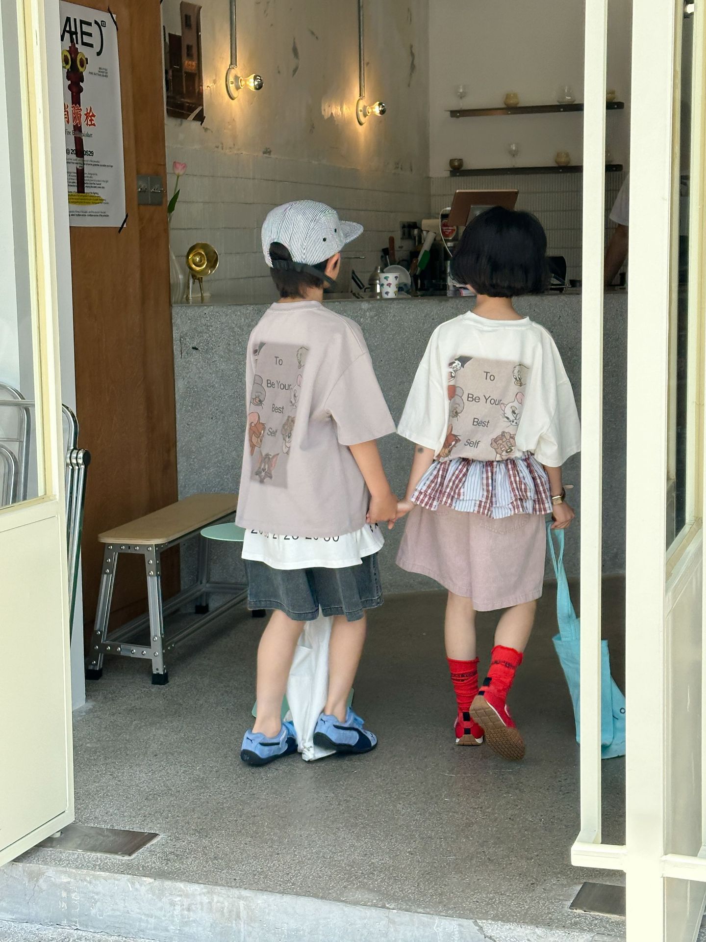 2025 새로운 여름 한국 스타일 어린이 순면 뒷면 프린트 반팔 소년과 소녀 캐주얼 루즈 다용도 티셔츠 유행스토어 가기