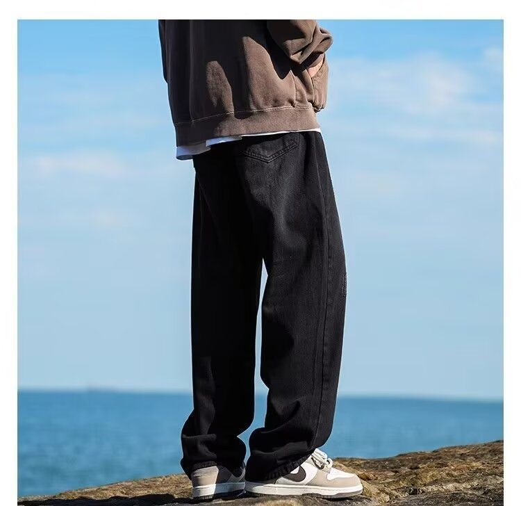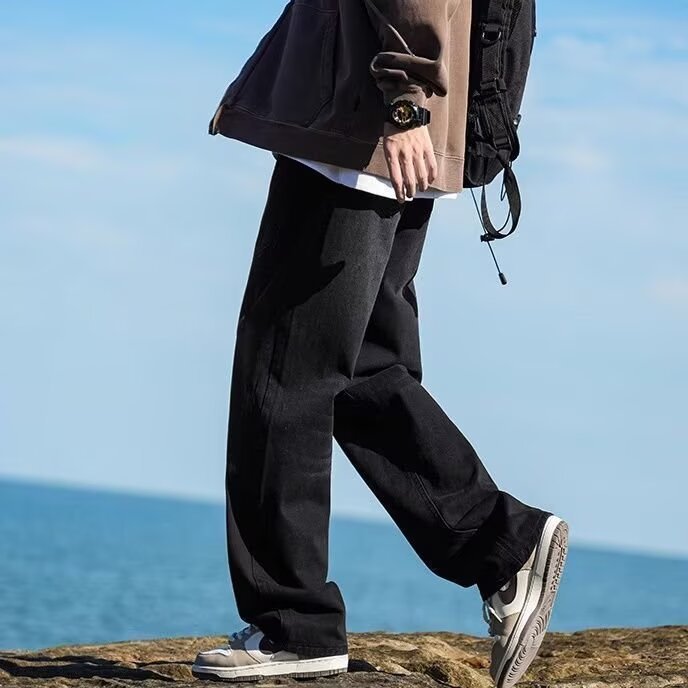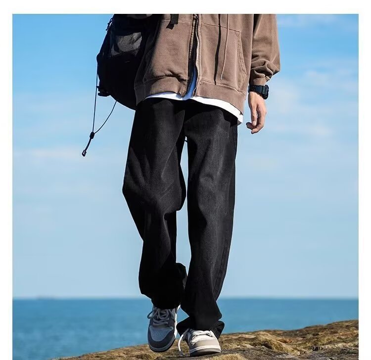 봄, 가을 남성용 워싱 블랙 그레이 부츠컷 청바지, 아메리칸 레트로 미드라인 스트레이트 팬츠, 멋스러운 느낌스토어 가기