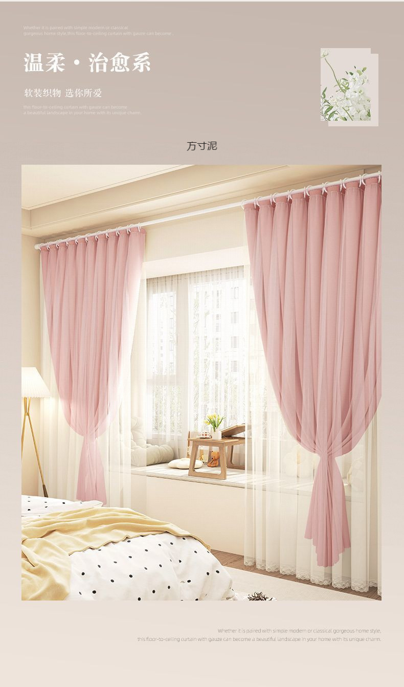 인터넷 연예인 커튼 완전 차광 2025 새로운 스타일 펀치 프리 설치 작은 신선한 침실 더블 레이어 거즈 포함스토어 가기