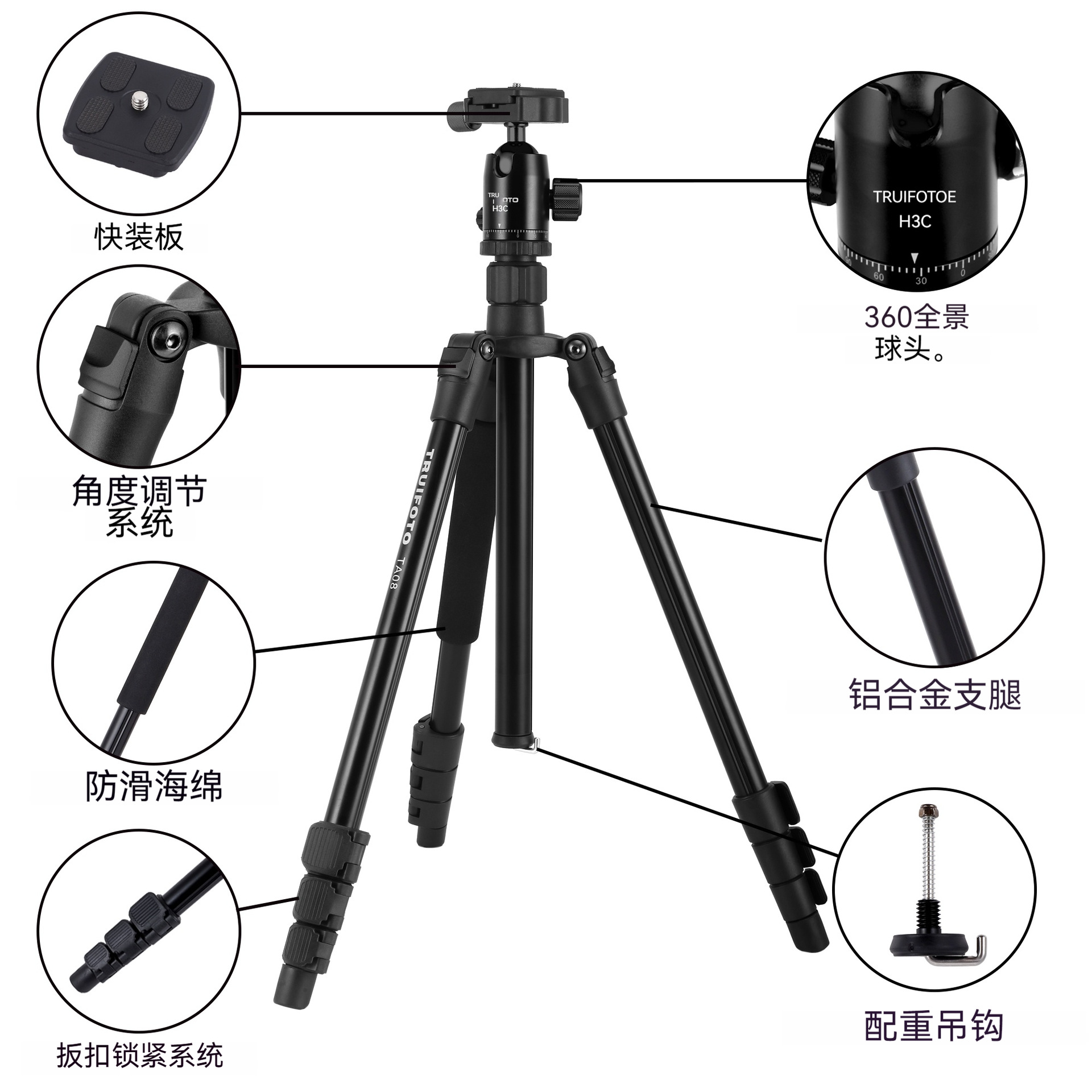 Truifoto 카메라 삼각대 SLR 전문 사진 휴대용 카메라 휴대 전화 사진 미러리스 라이브 방송 삼각대