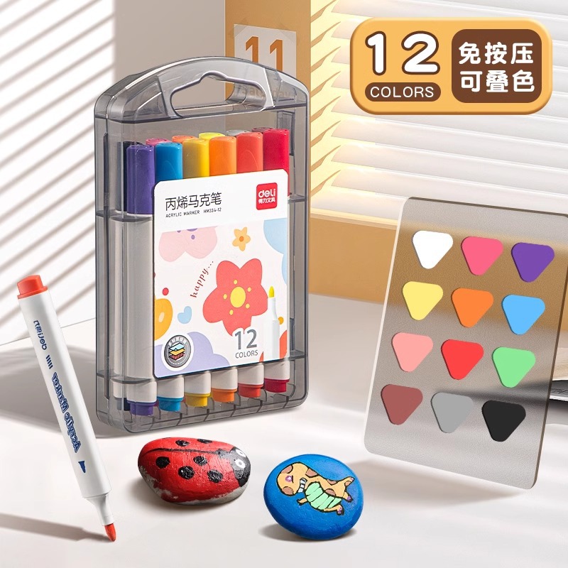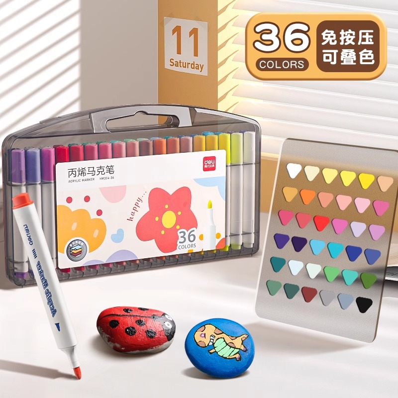 델리 HM334 아크릴 마커 펜은 쌓을 수 있고 대용량 유치원 48/60 색상 브러시 낙서 펜은 세척 가능합니다.스토어 가기